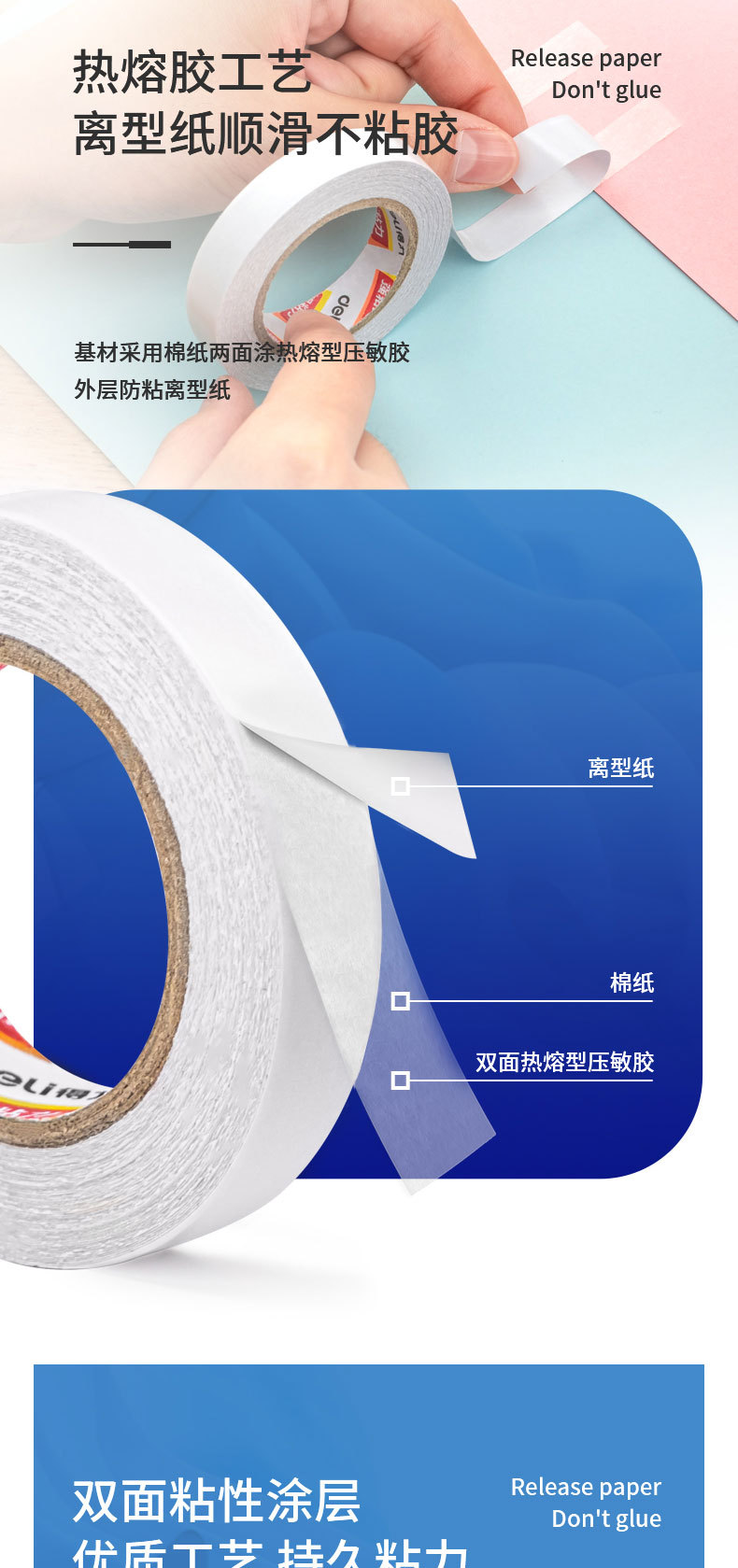 델리 30435 양면 접착 높은 점도 작은 롤 코어 학생 수제 투명 면 테이프 양면 접착 테이프
