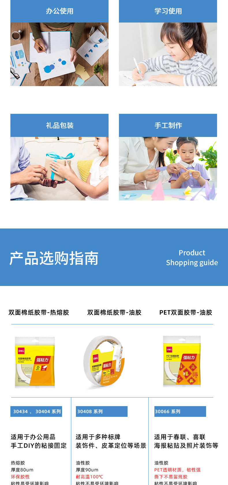 델리 30435 양면 접착 높은 점도 작은 롤 코어 학생 수제 투명 면 테이프 양면 접착 테이프스토어 가기