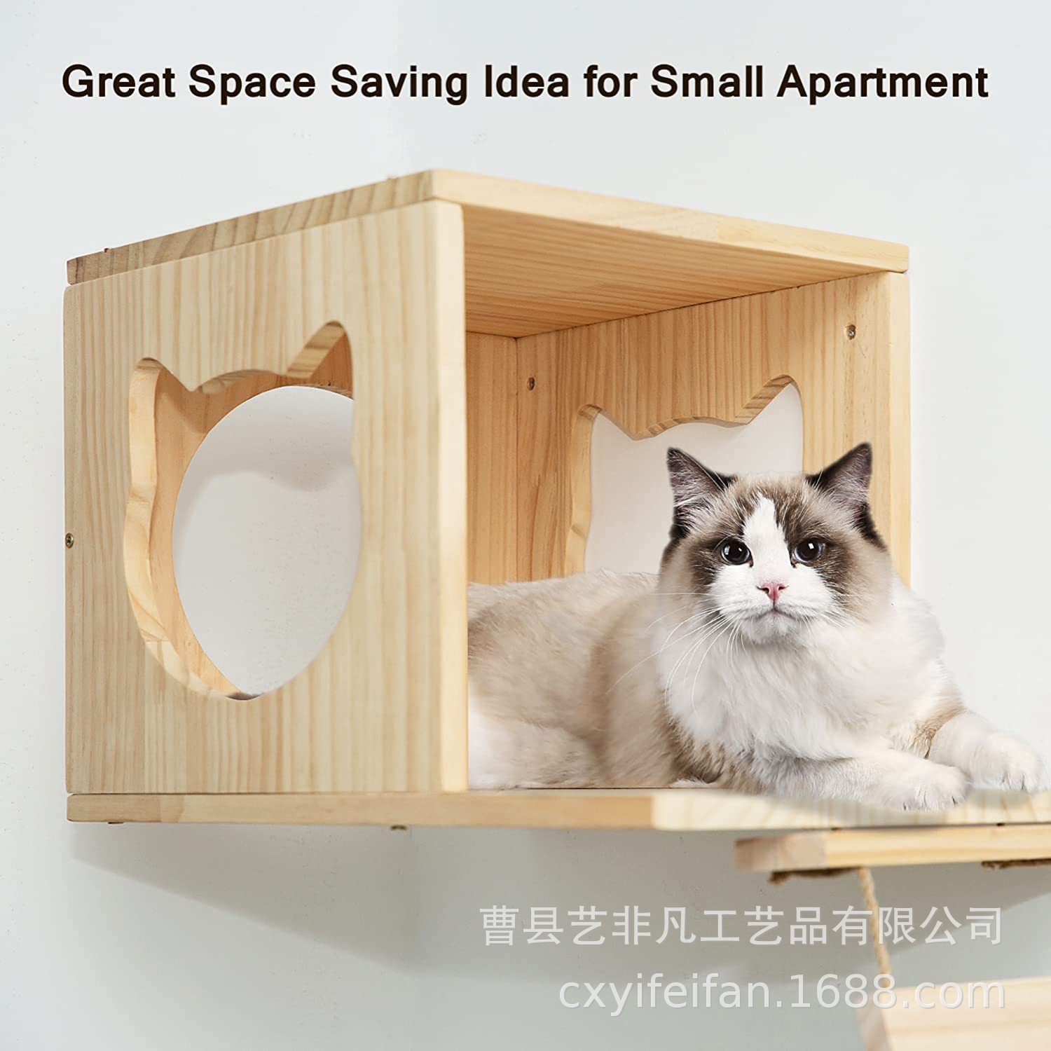 벽에 장착 된 단단한 나무 벽에 장착 된 고양이 등반 랙 고양이 둥지 고양이 나무는 통합 벽에 장착 된 고양이 점프 플랫폼 제조업체를 차지하지 않습니다.스토어 가기