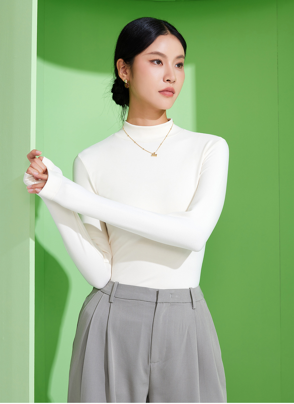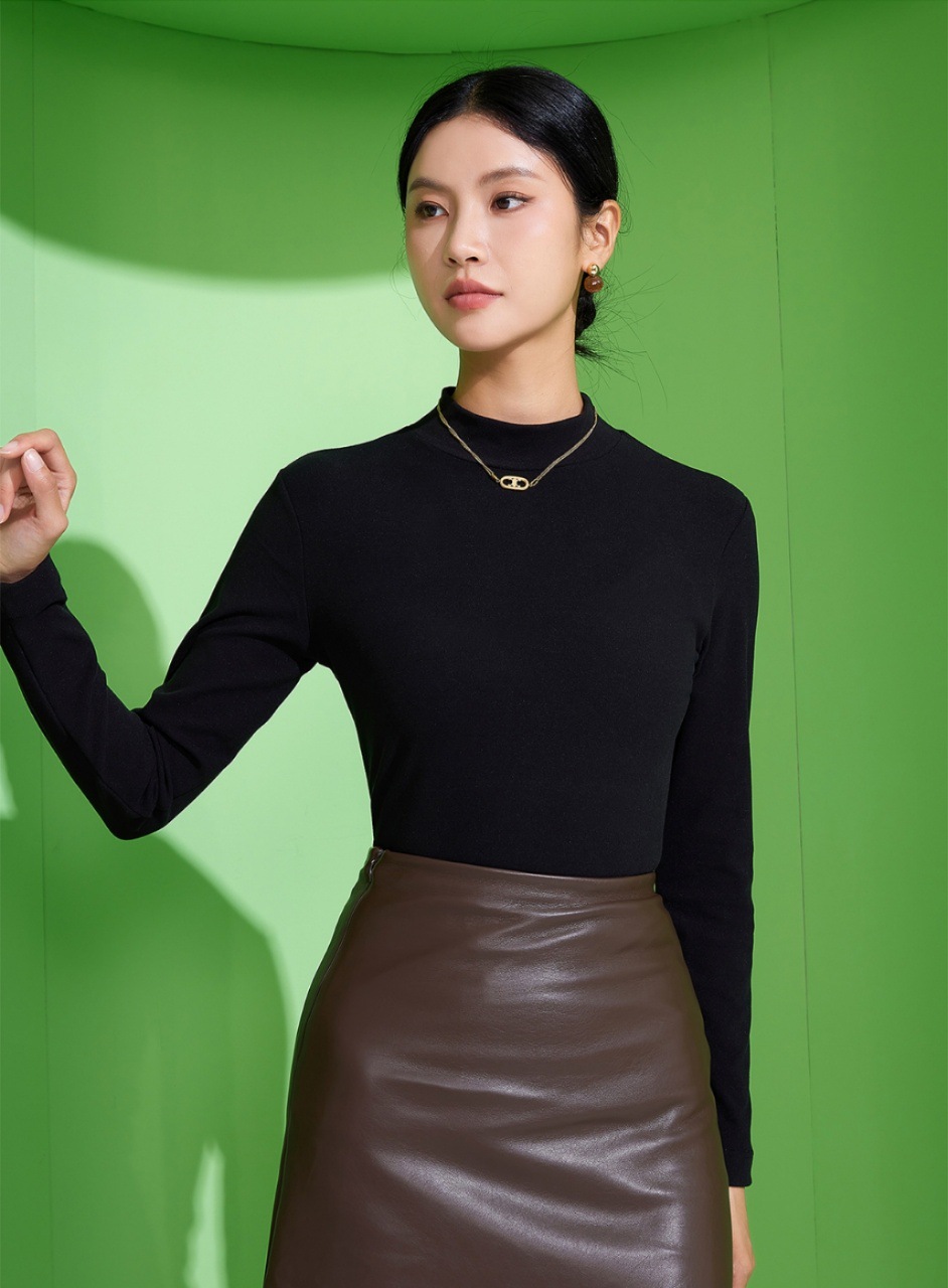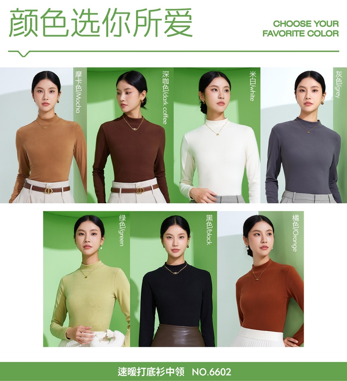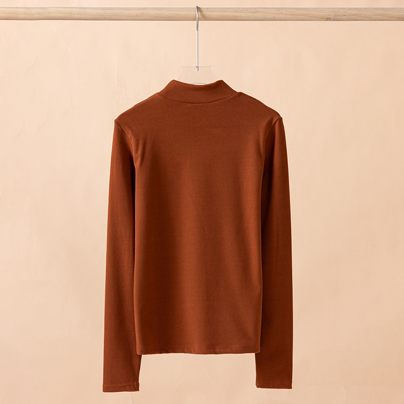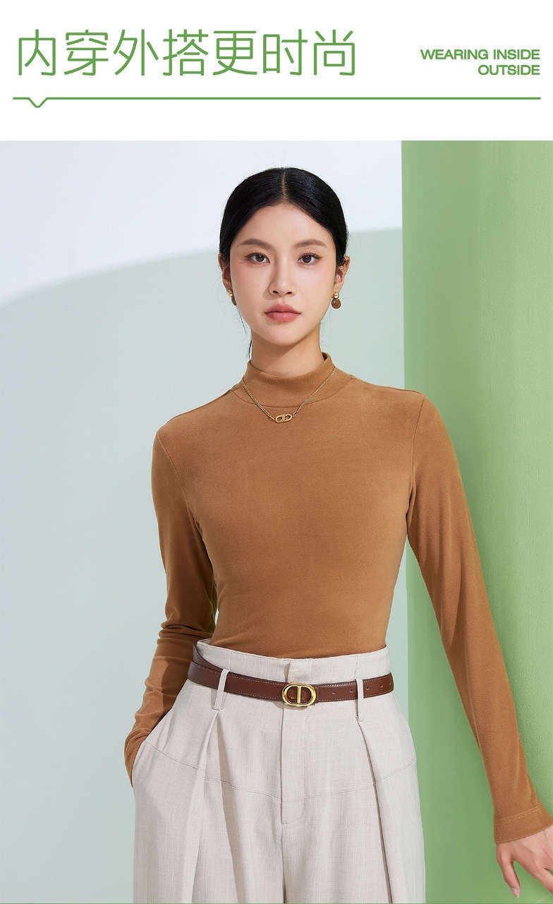 가을 겨울 캐시미어 하프 터틀넥 이너웨어 슬림핏 여성용 단색 두꺼운 긴팔 탑