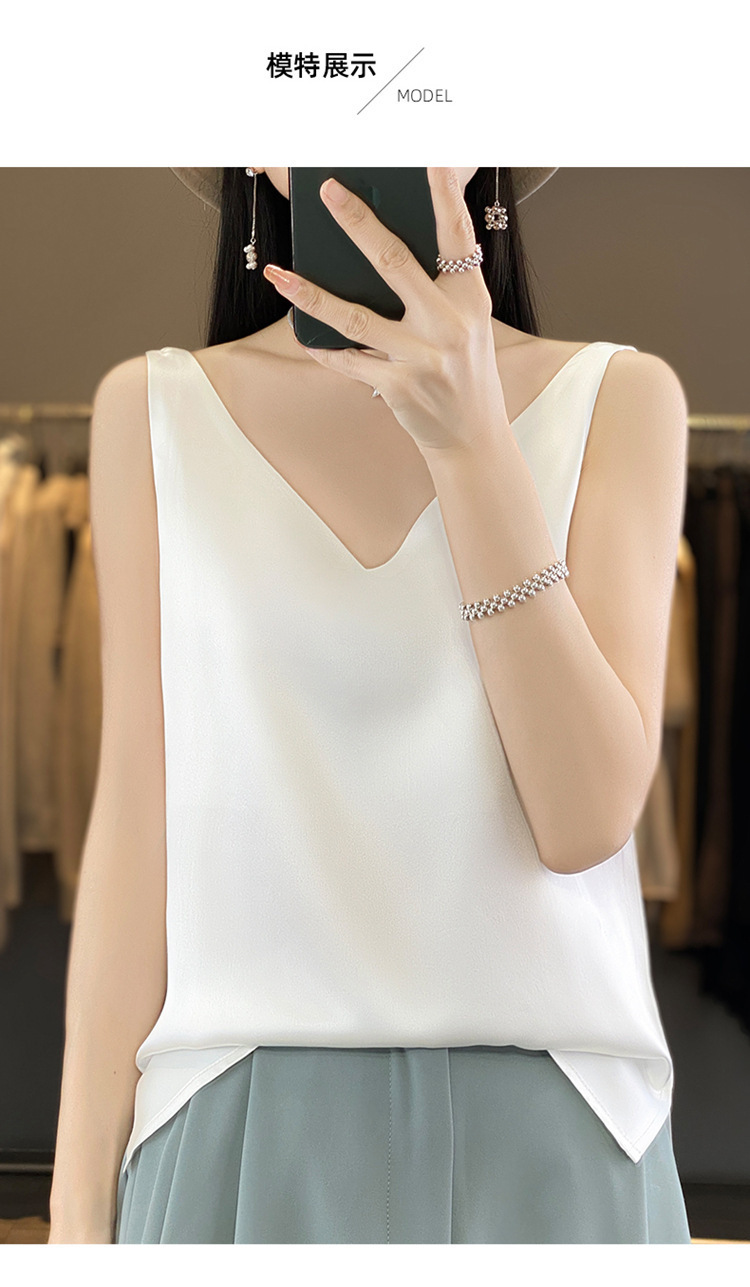 丝绸真丝双肩吊带女背心2024夏季新款修身v领短款气质内搭上衣T恤