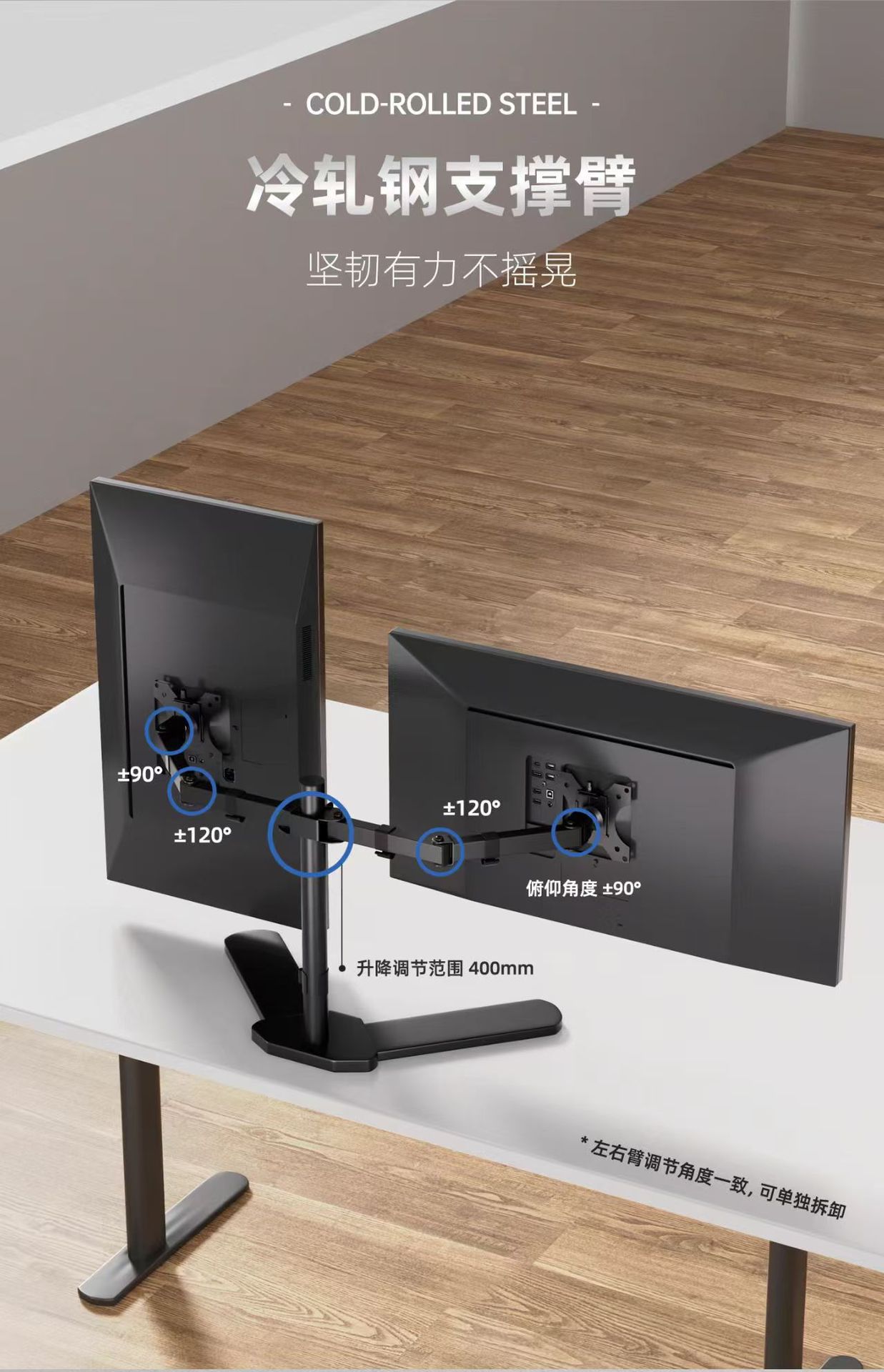 • 블랙 베이스 듀얼 스크린 조절 가능 모니터 스탠드
