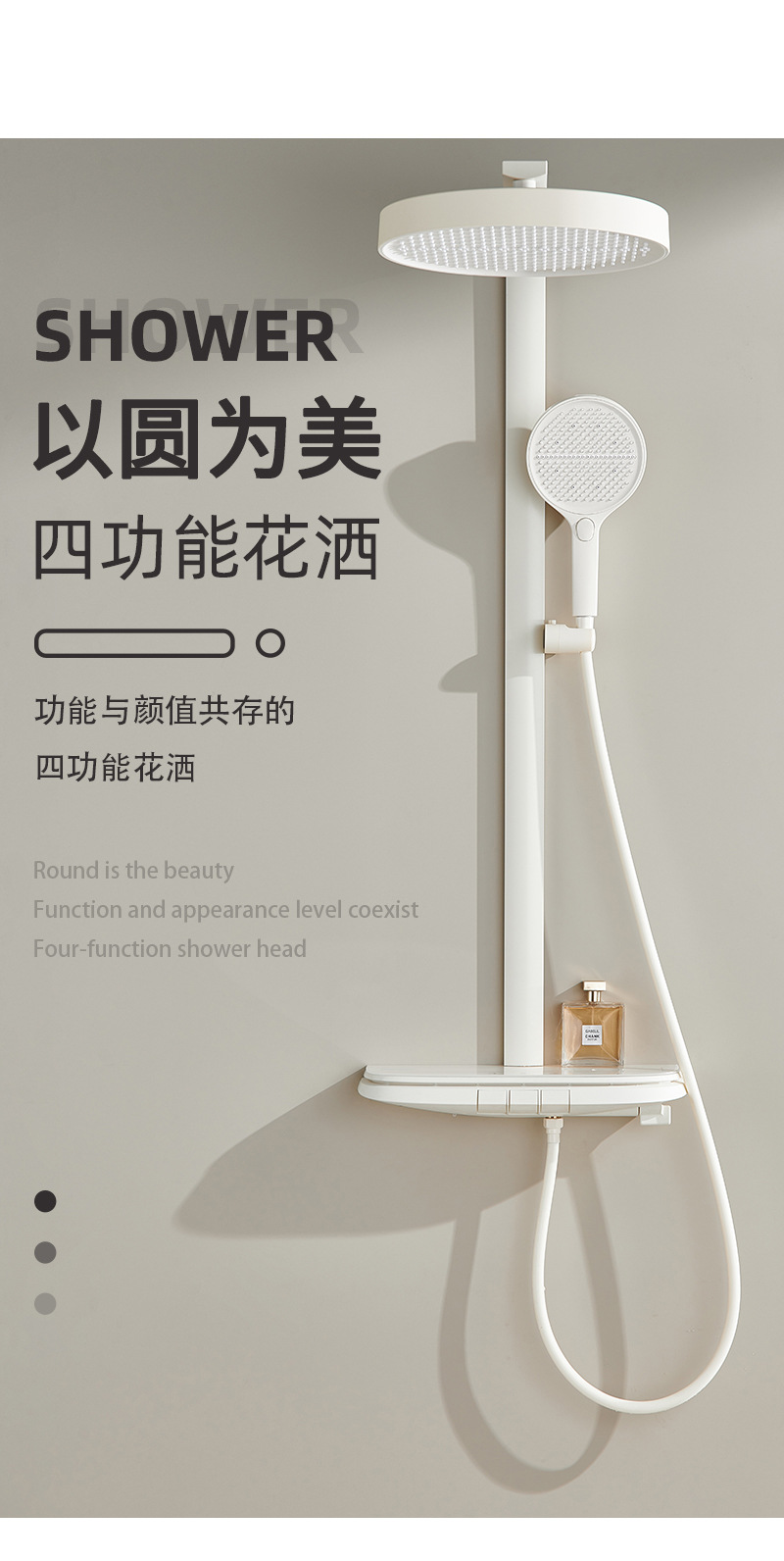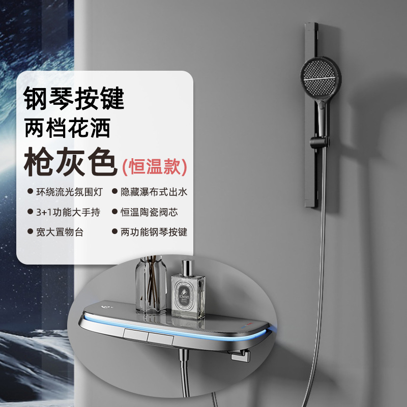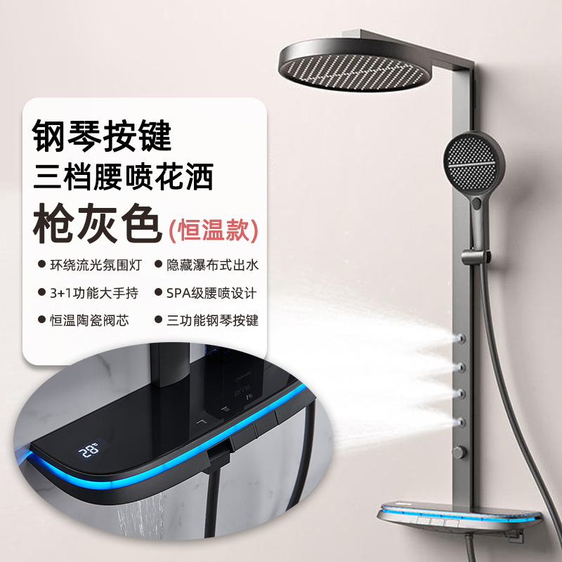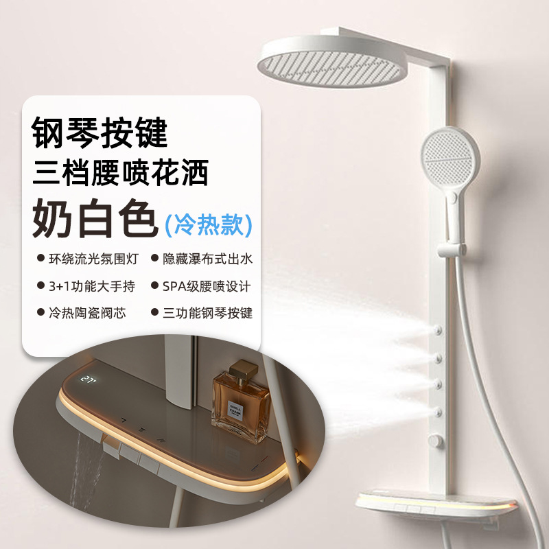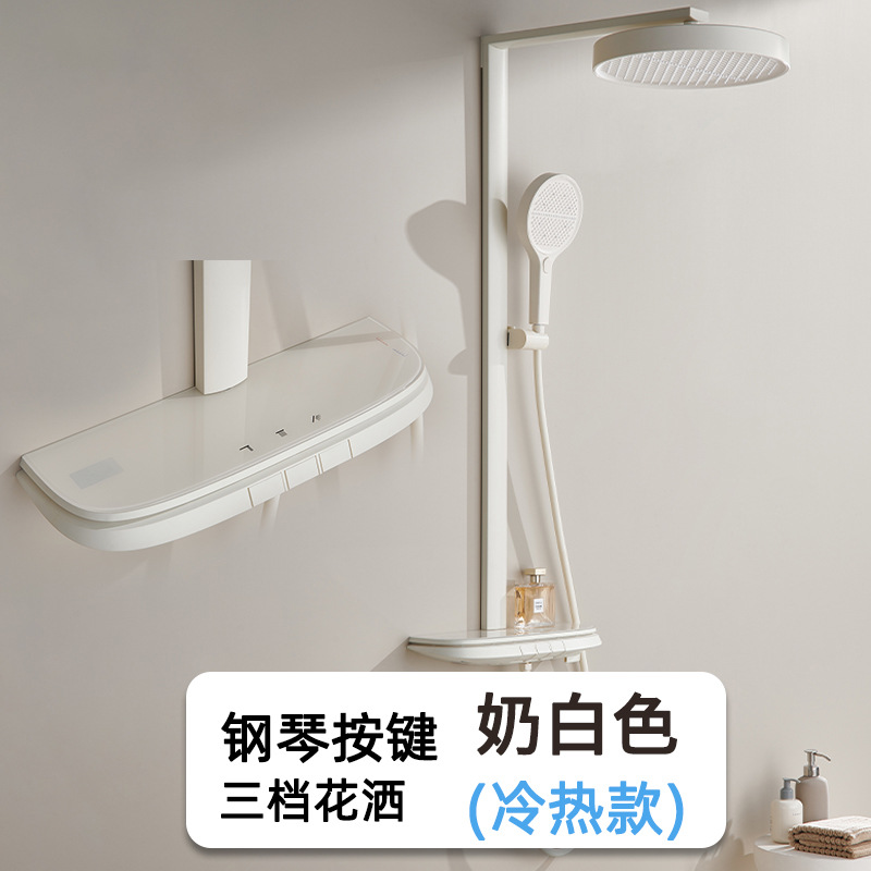 크림 스타일 밀크 화이트 샤워 샤워 세트 일정한 온도 비 목욕 가정용 욕실 디지털 디스플레이 샤워 헤드