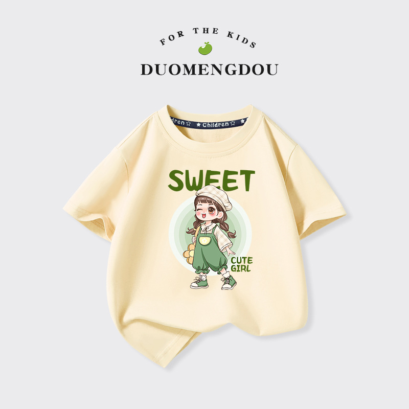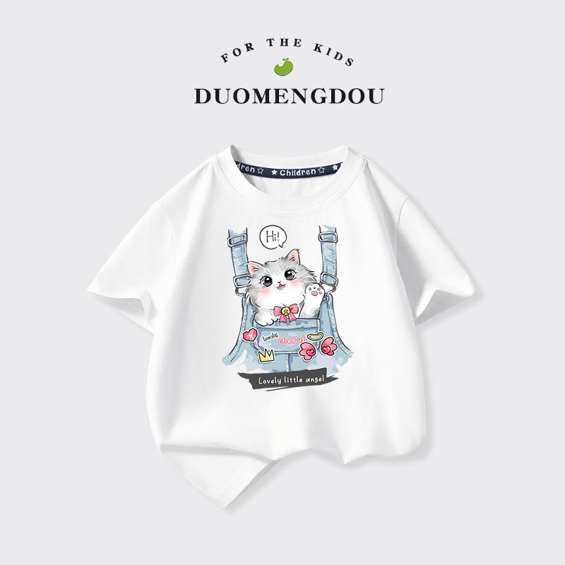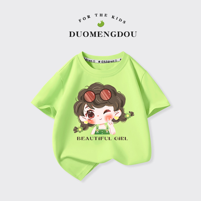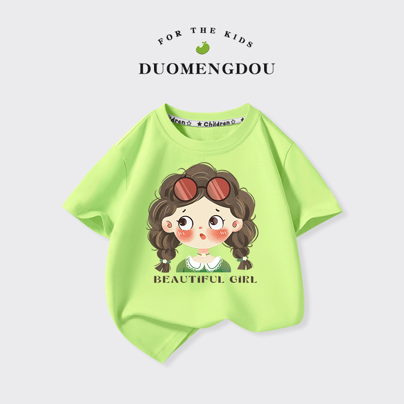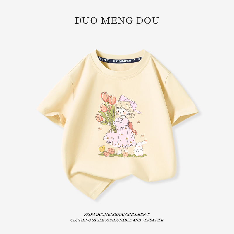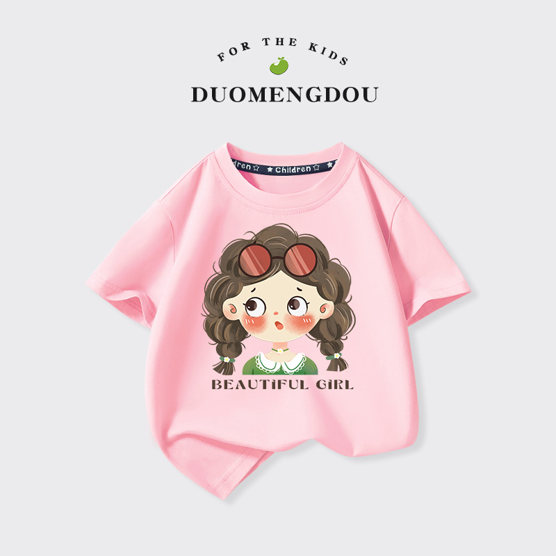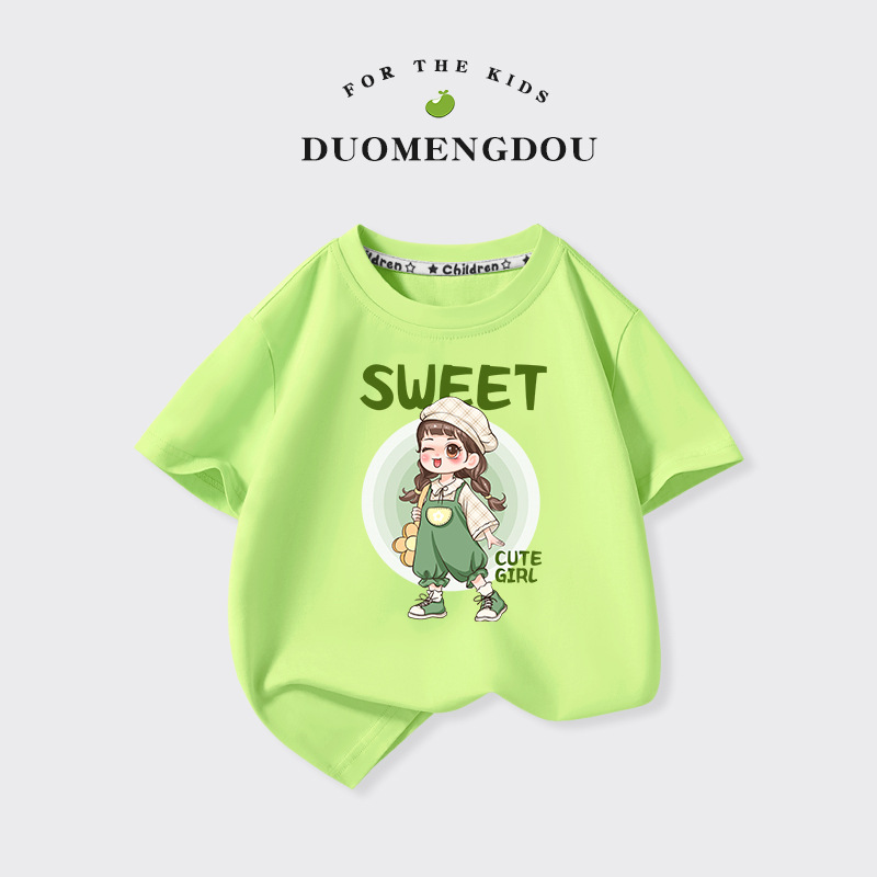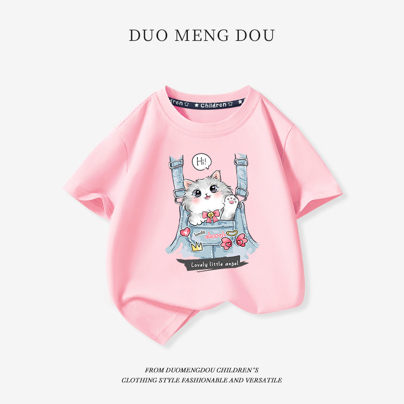 소녀 반팔 티셔츠 여름 새로운 어린이 사랑 스타일 인쇄 둥근 목 얇은 탑 큰 어린이 유행 여름 원피스스토어 가기