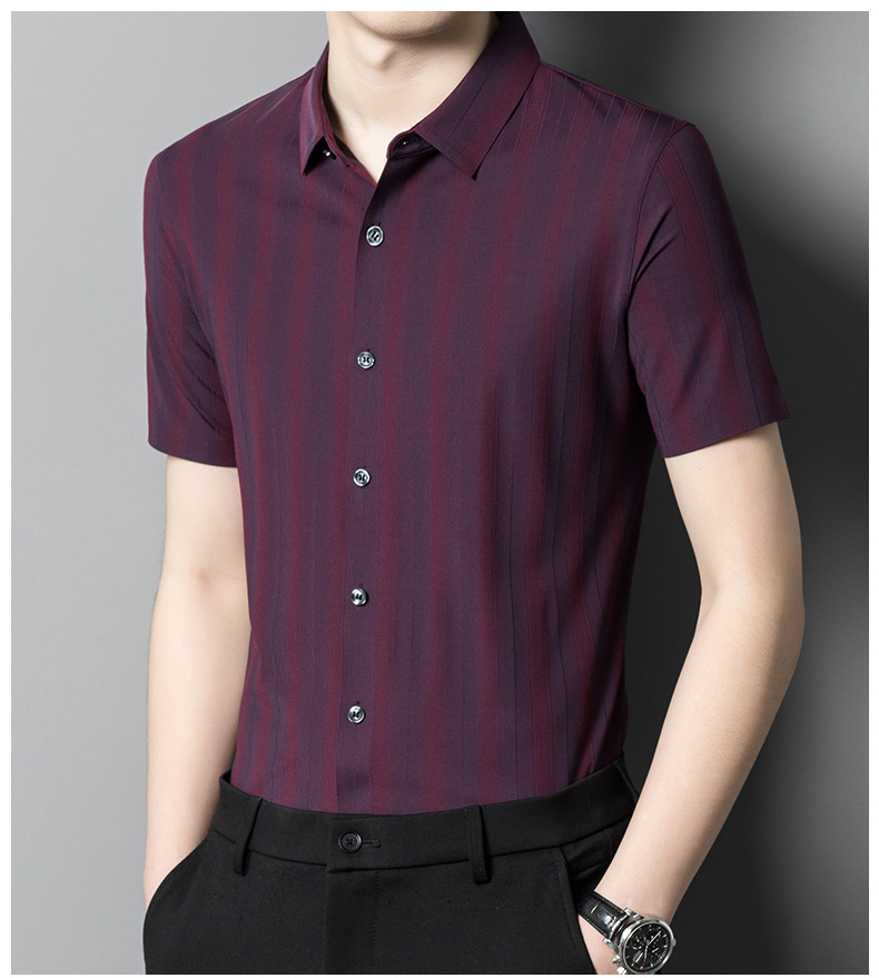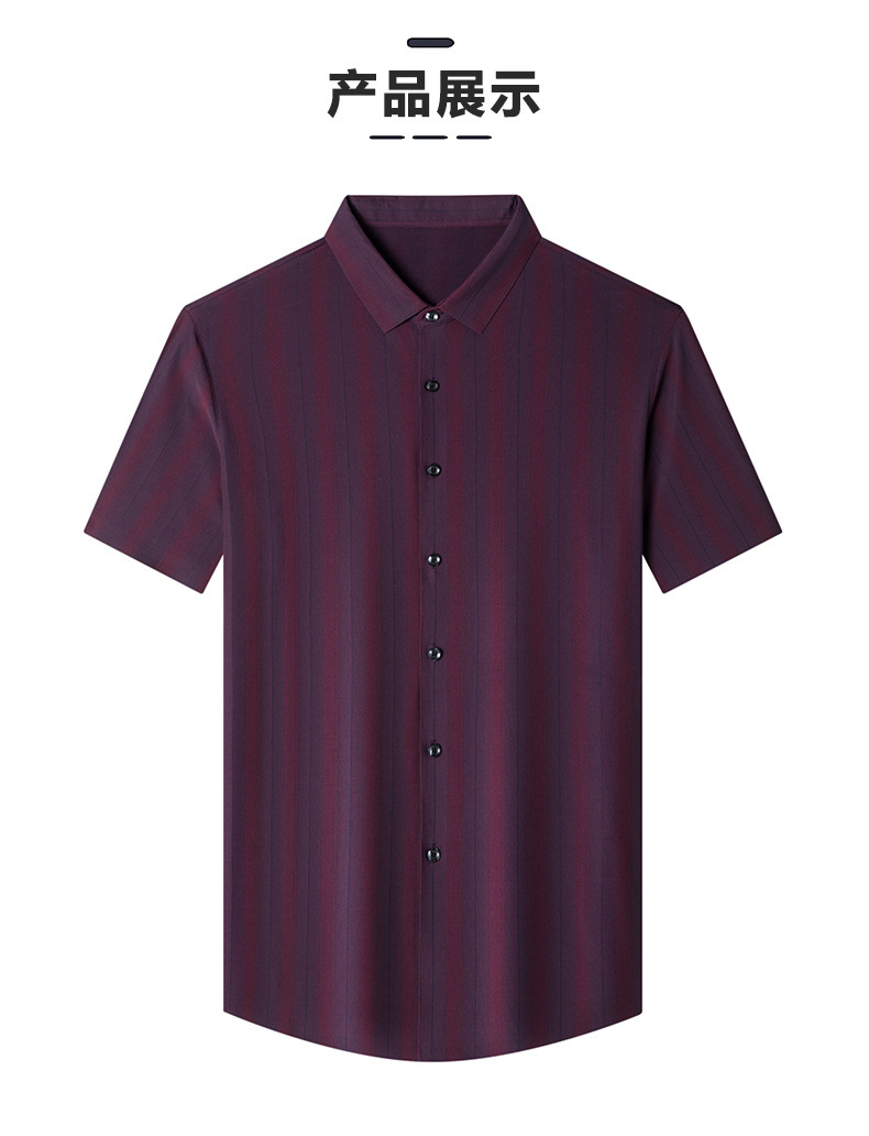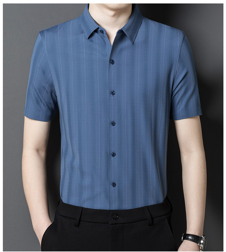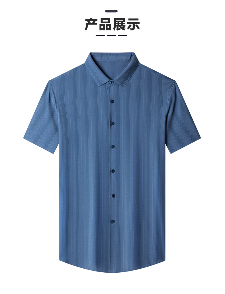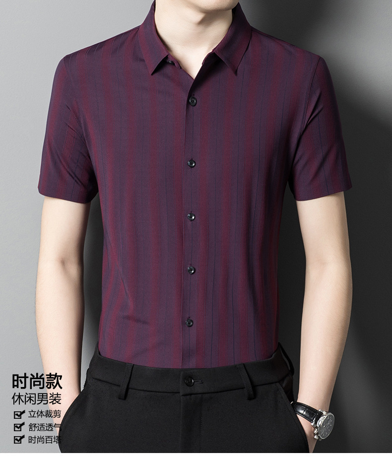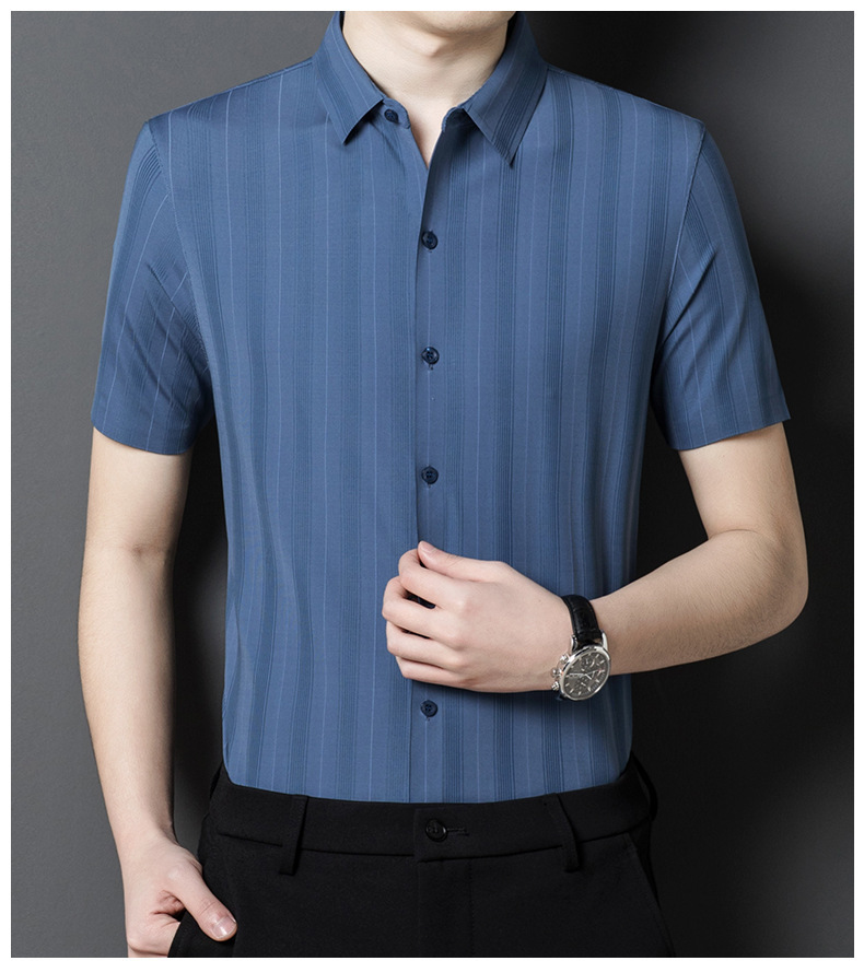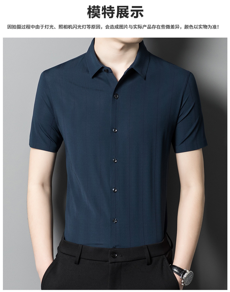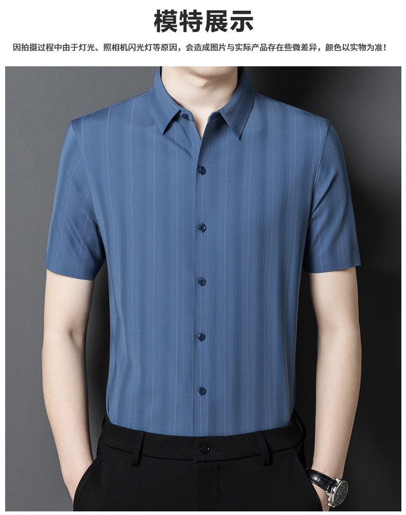 【含桑蚕丝】男士短袖衬衫夏季新款商务休闲条纹衬衣高档免烫薄款