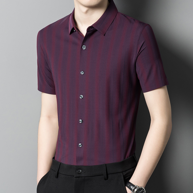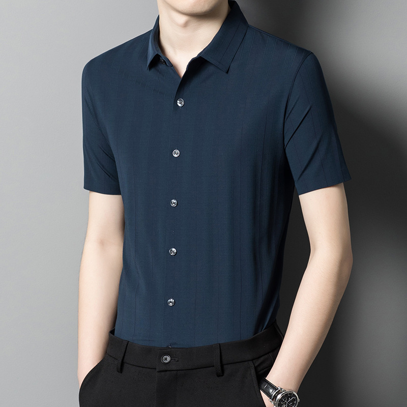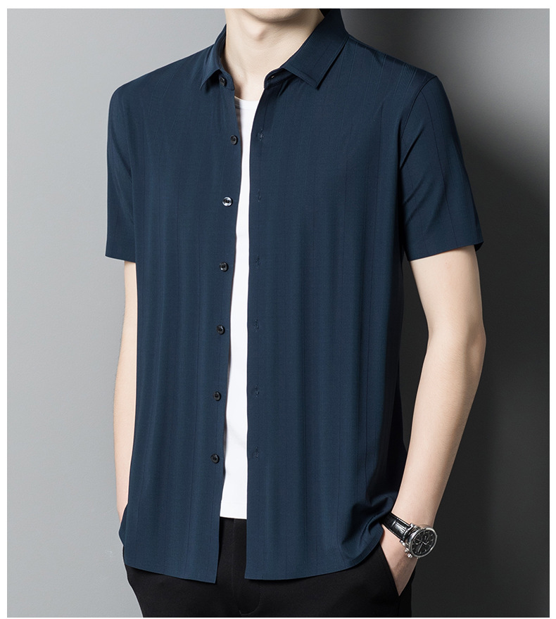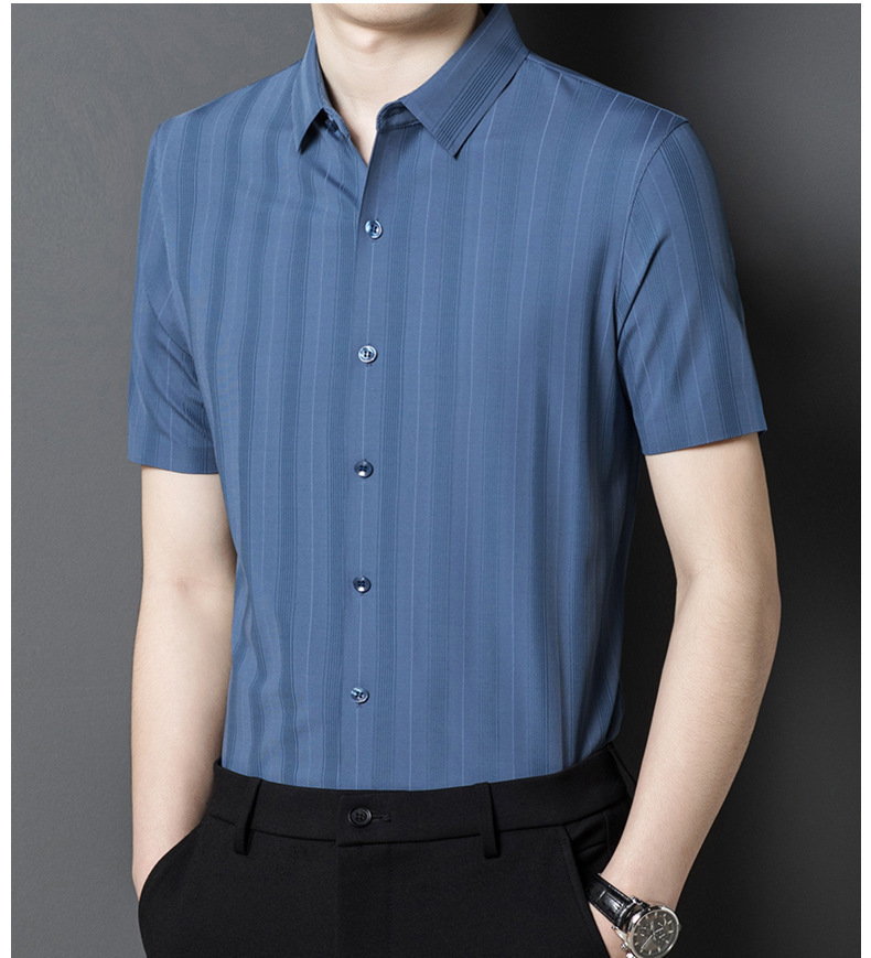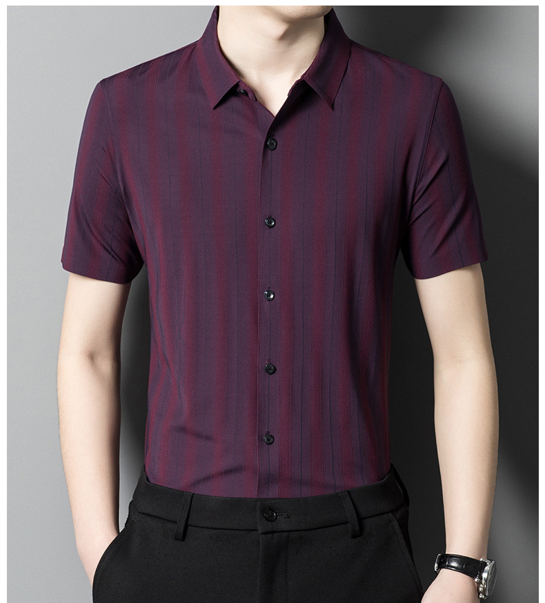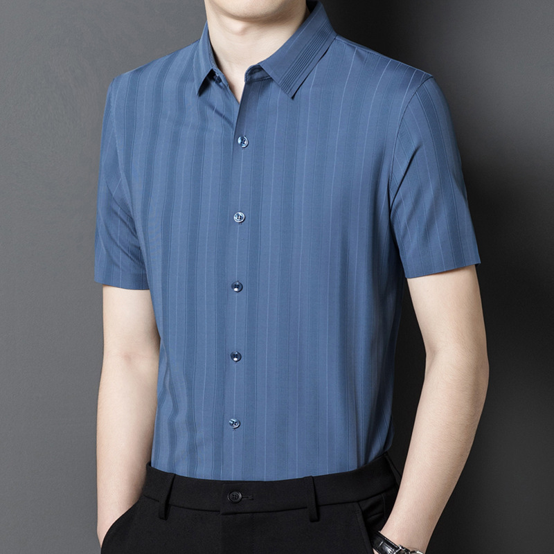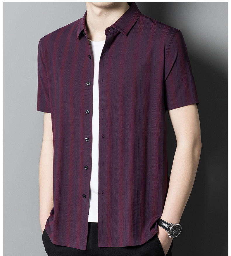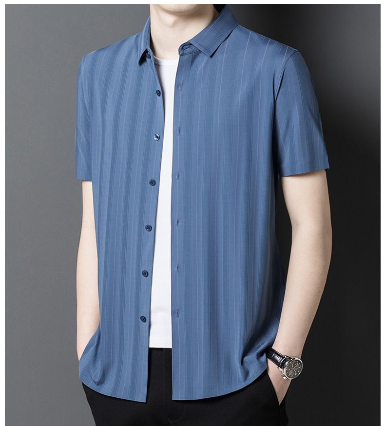 【含桑蚕丝】男士短袖衬衫夏季新款商务休闲条纹衬衣高档免烫薄款