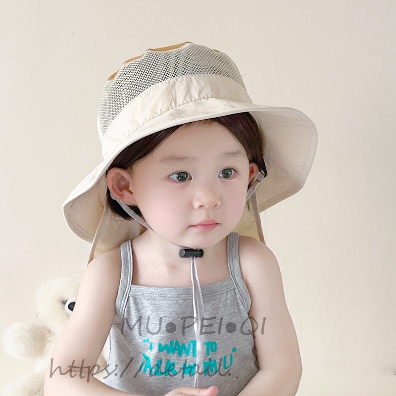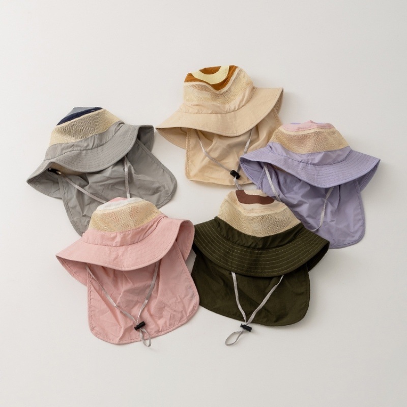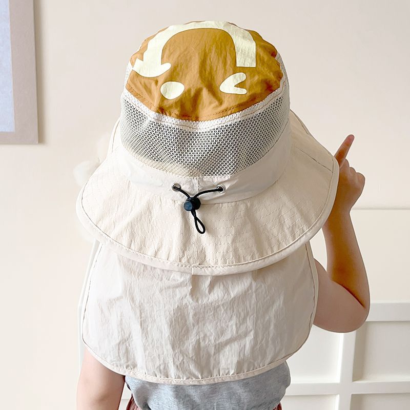 어린이 모자 여름 한국식 태양 모자 통기성 태양 보호 어부 모자 UV 보호 태양 모자 서양식 목도리 모자