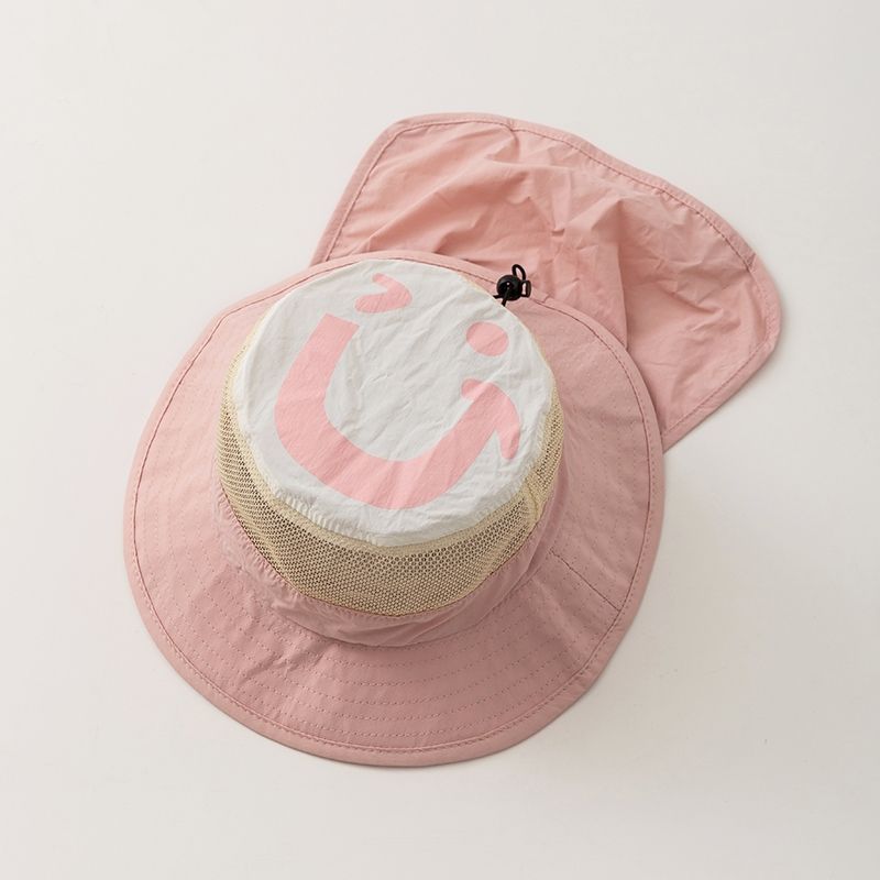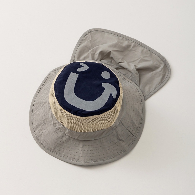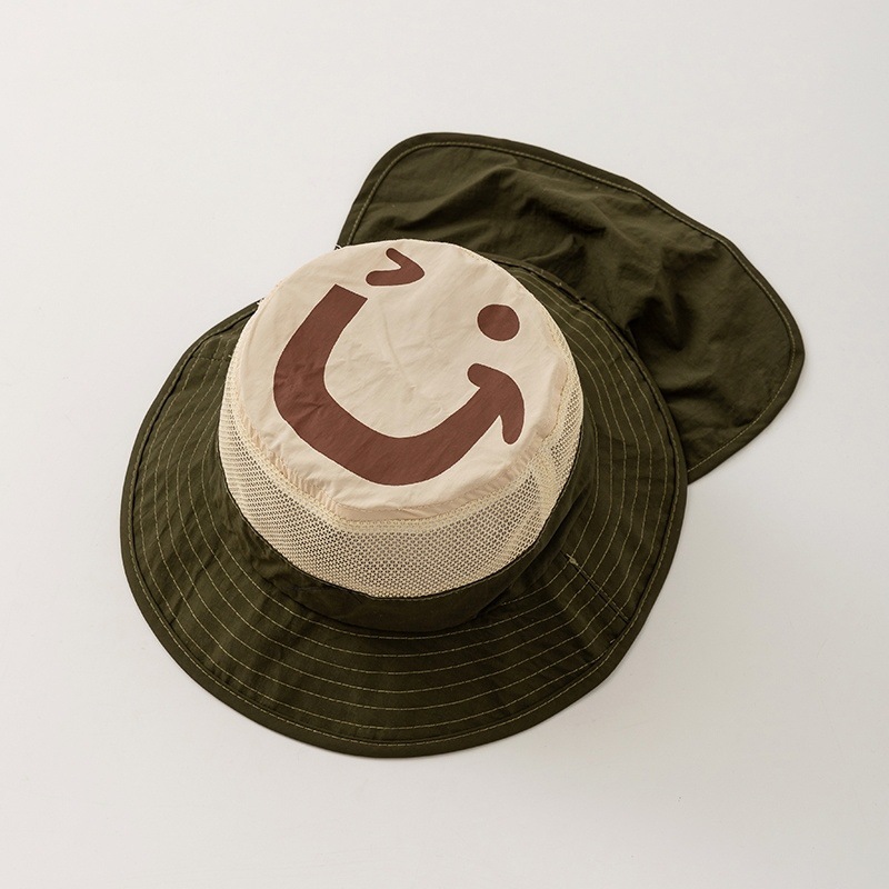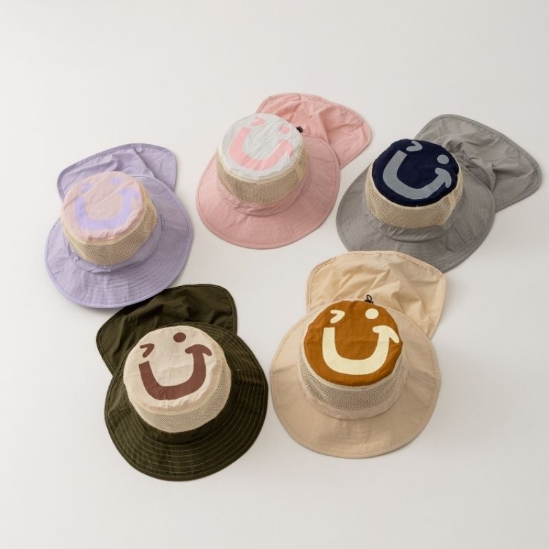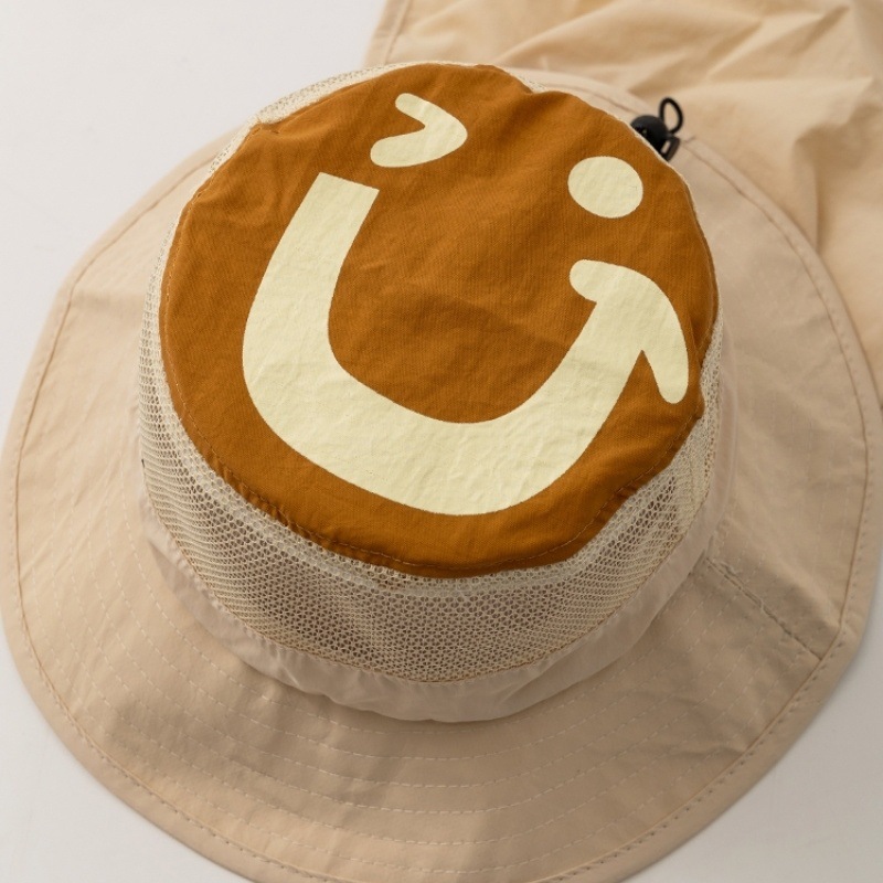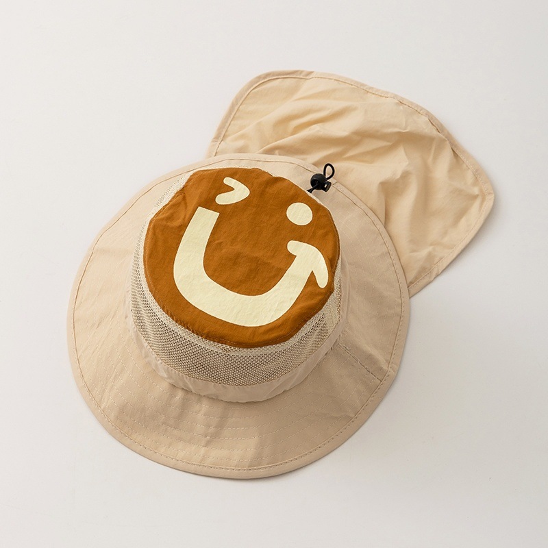 • 베이지 - 큰 웃는 얼굴이 있는 모자의 속건성 숄 버킷햇