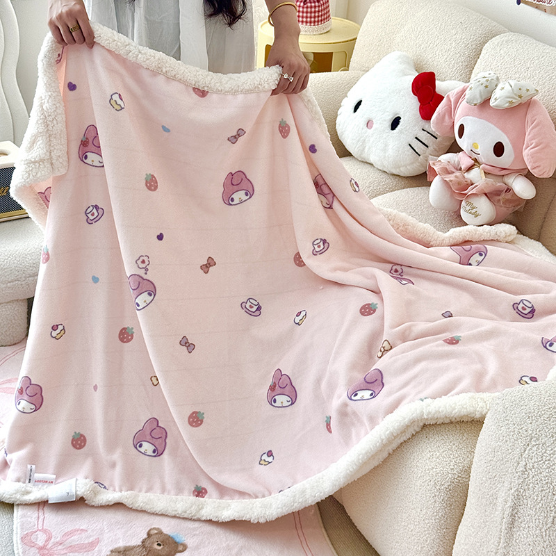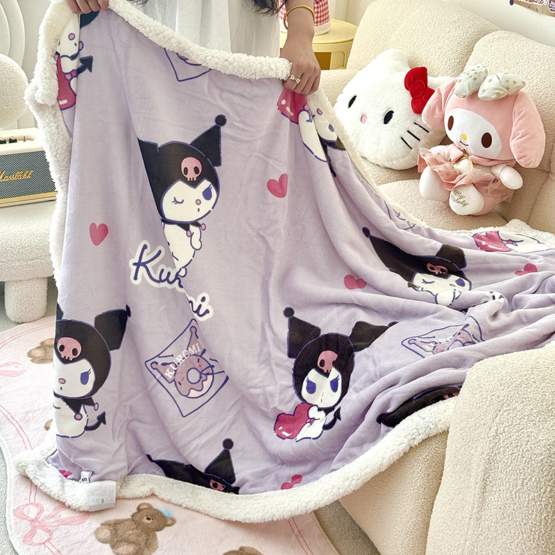 가을과 겨울 만화 더블 레이어 따뜻한 유지 두꺼운 우유 벨벳 램 벨벳 담요 산리오 쿨로 미 낮잠 담요 커버