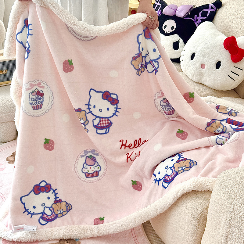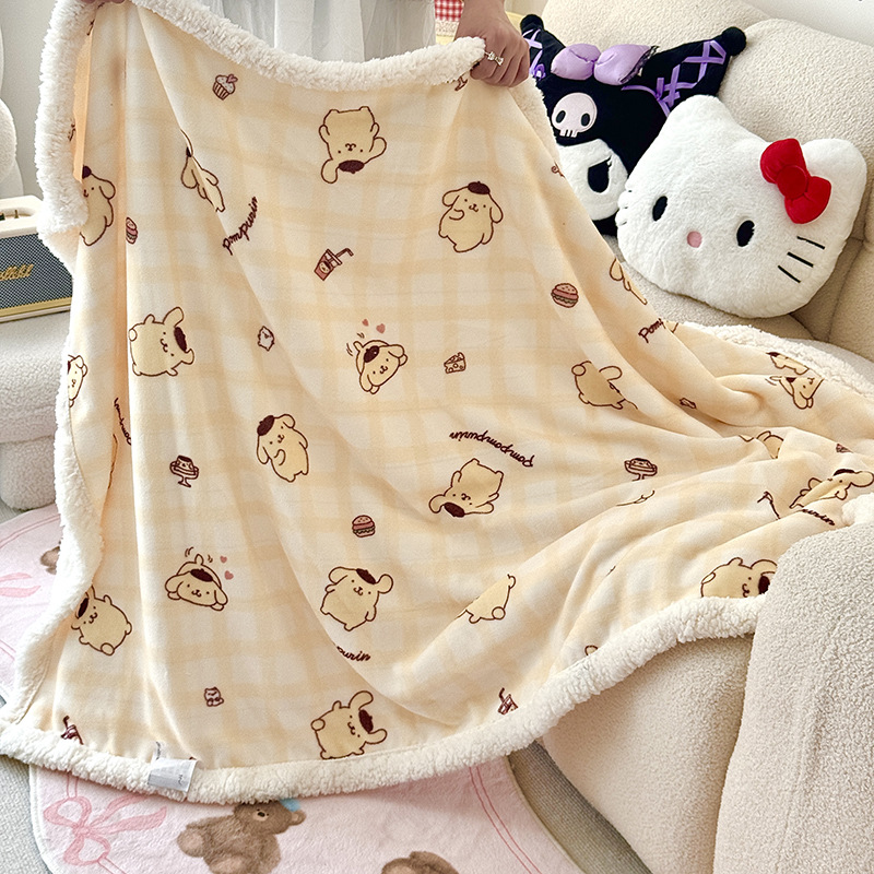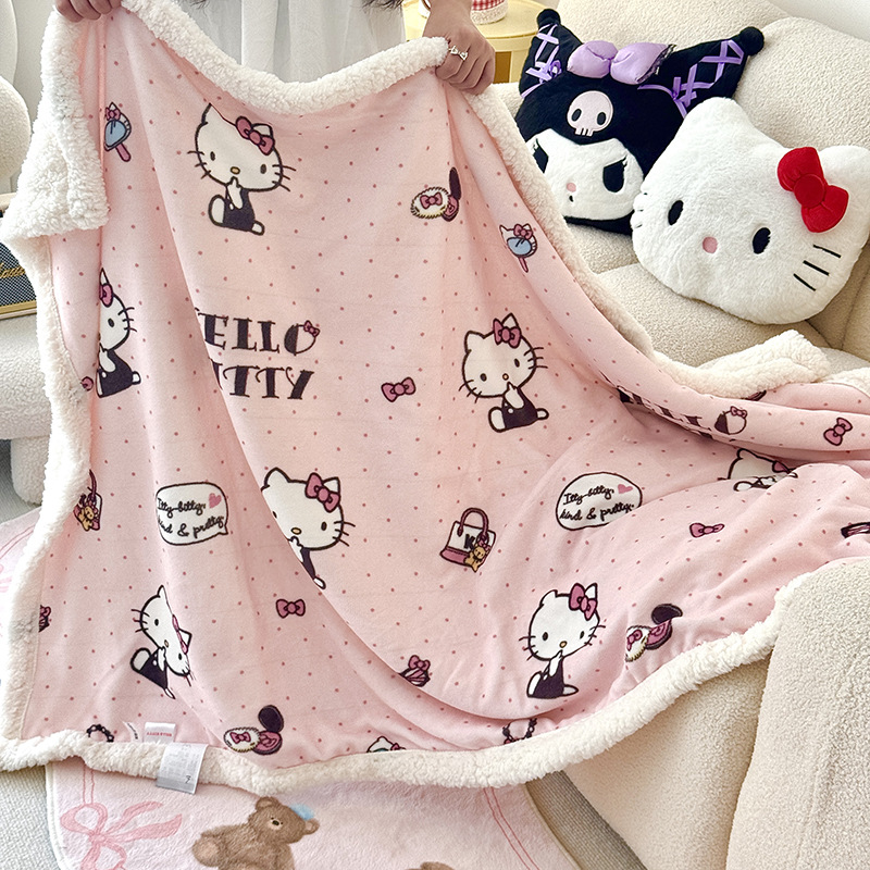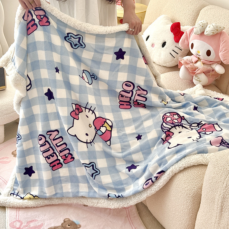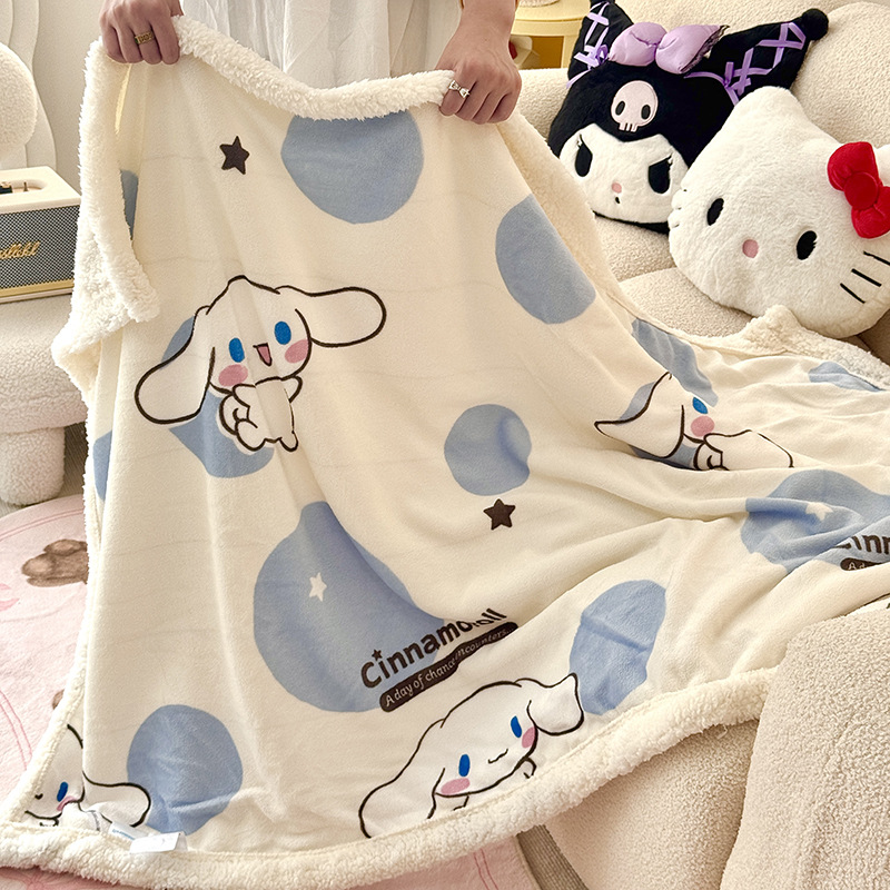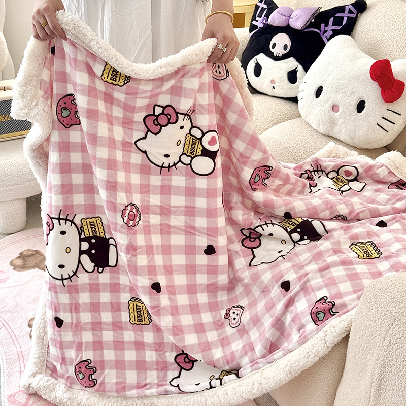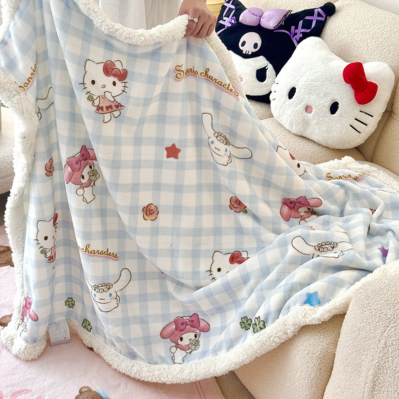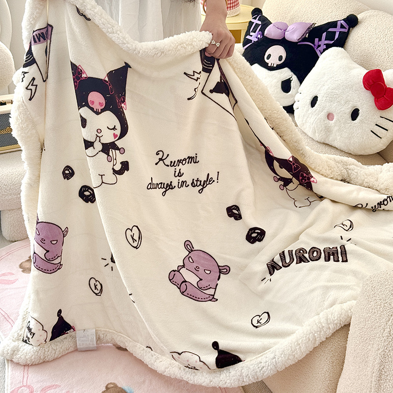 가을과 겨울 만화 더블 레이어 따뜻한 유지 두꺼운 우유 벨벳 램 벨벳 담요 산리오 쿨로 미 낮잠 담요 커버스토어 가기
