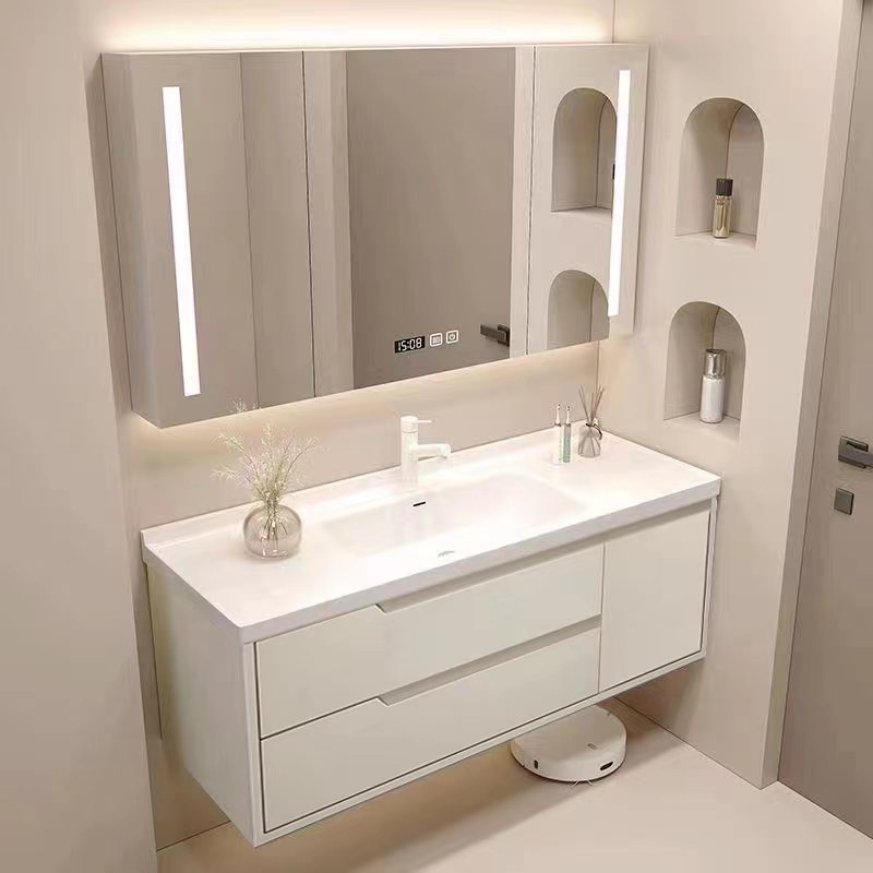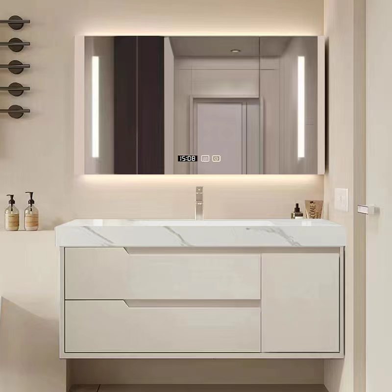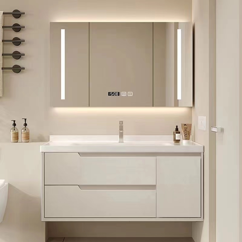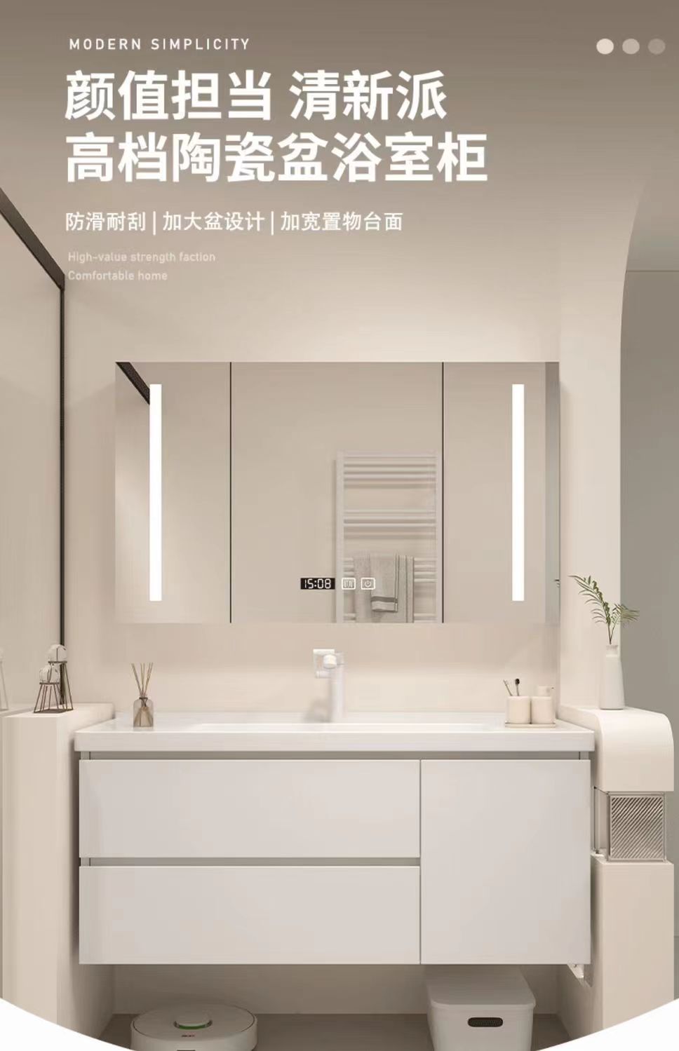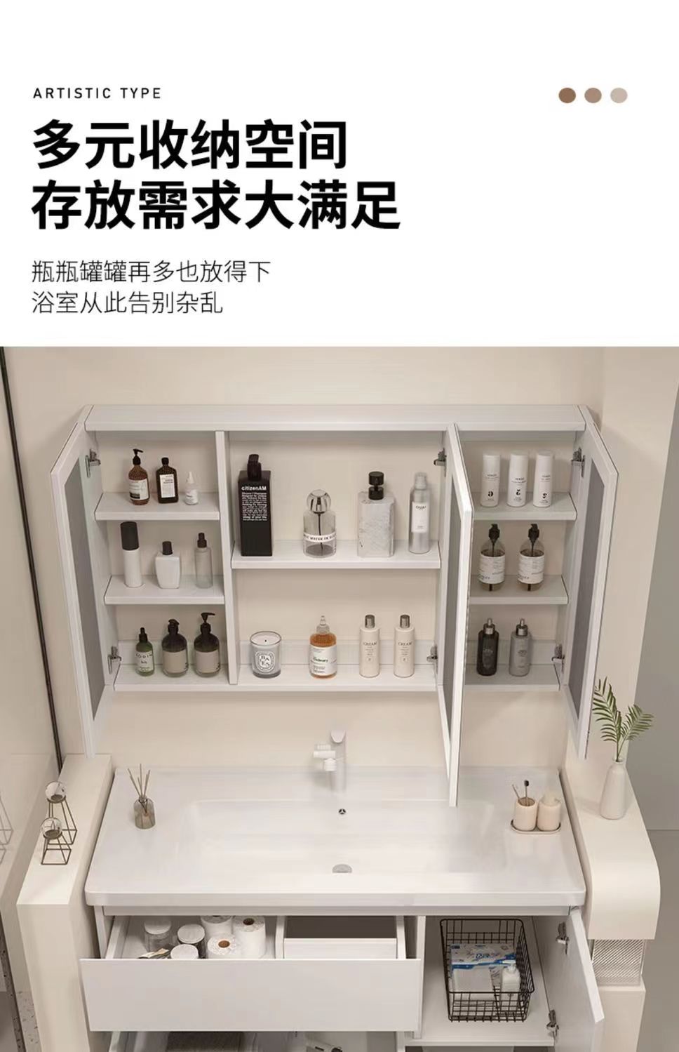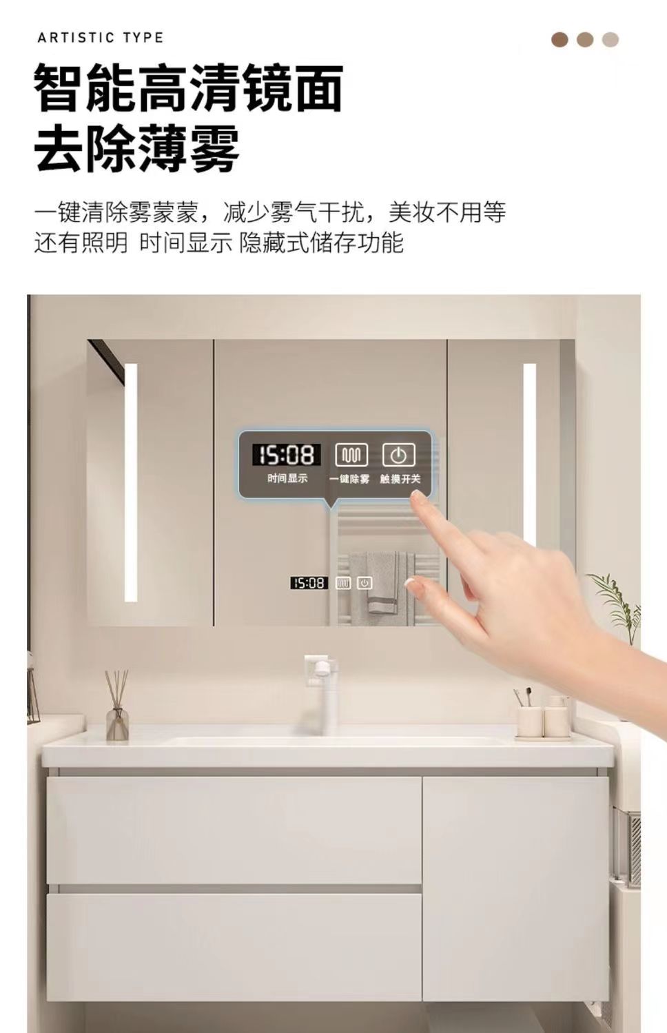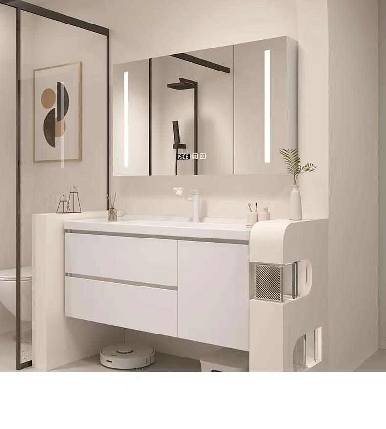 9C 새로운 크림 바람 바위 플레이트 세라믹 통합 분지 지능형 욕실 캐비닛 조합 세척 테이블 화장실 세트 손 씻기