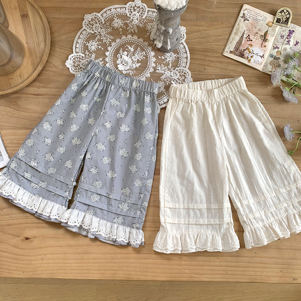 Cutemily Children's Wear 여름 소녀와 아기 면화 꽃 방지 모기 바지 여성용 레이스 대비 통기성 와이드 레그 바지