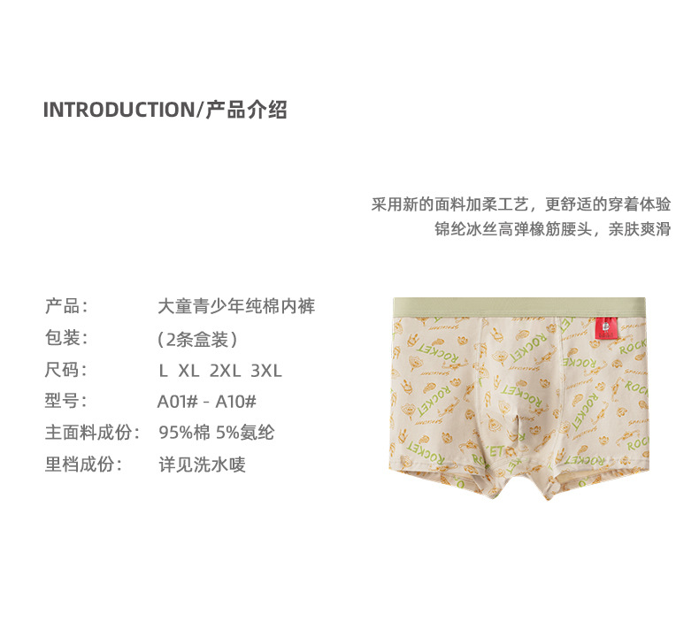 십대 면화 속옷 남학생 발달 복서 중간 허리 큰 어린이 복서 학생 중학교 반바지스토어 가기