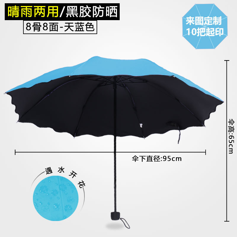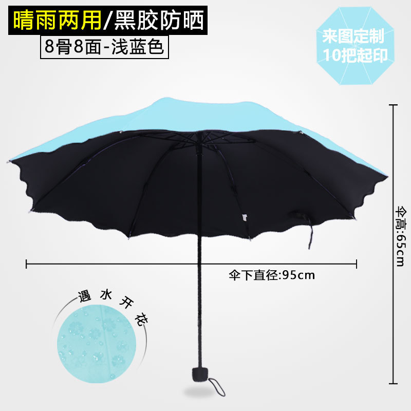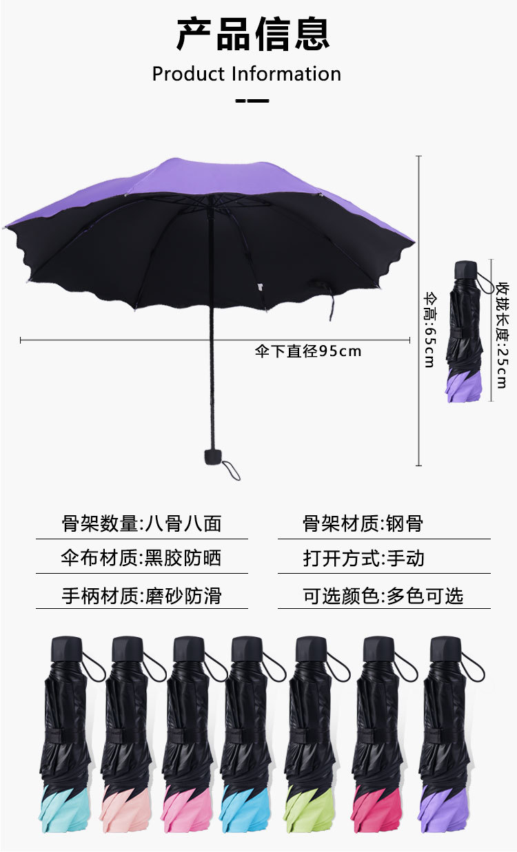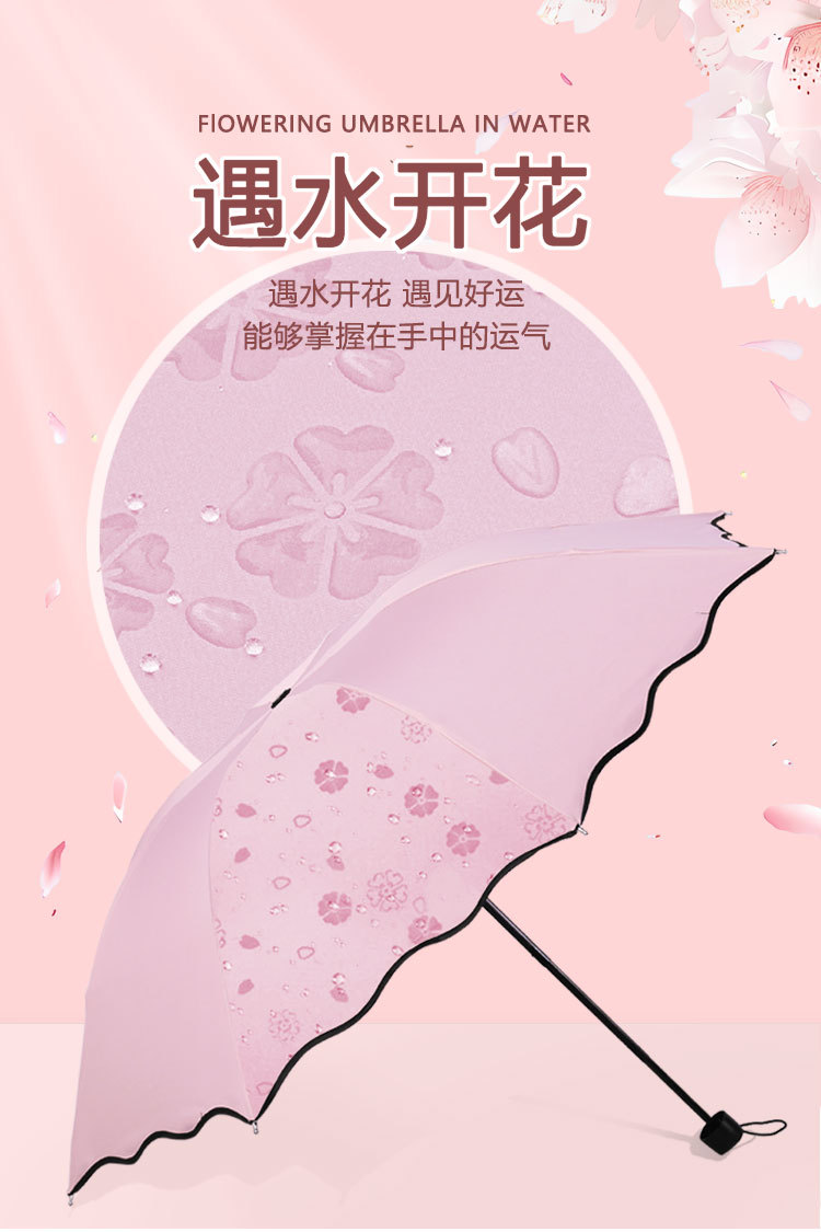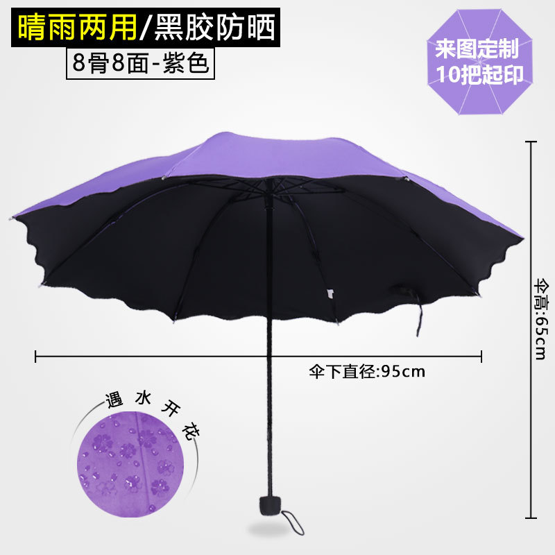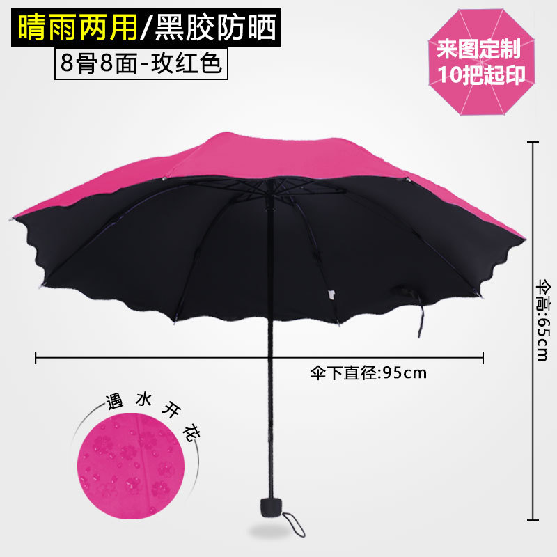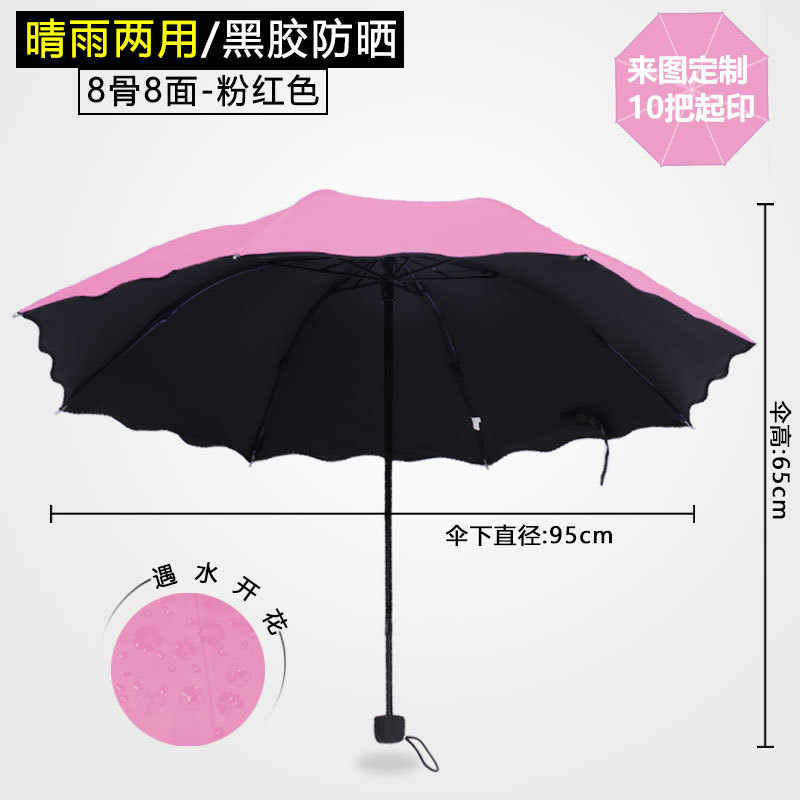 공장 도매 두꺼운 검은 접착제 물 꽃 우산 선 스크린 우산 접이식 우산 태양 우산은 로고를 인쇄 할 수 있습니다