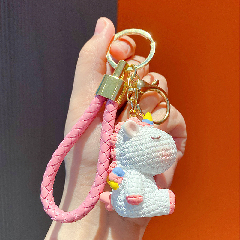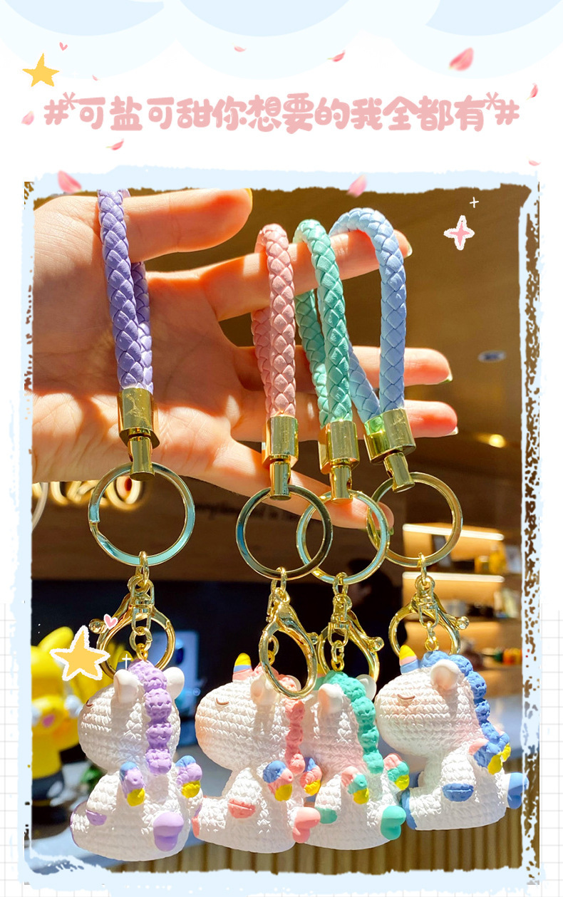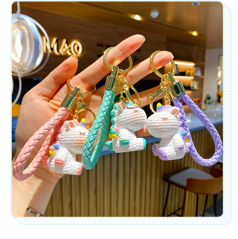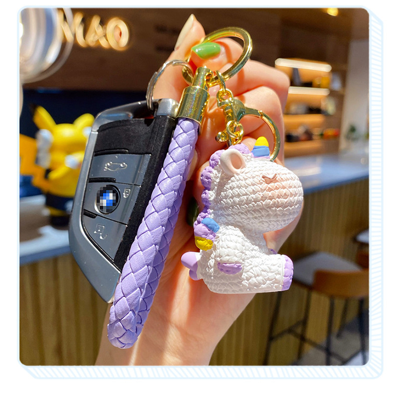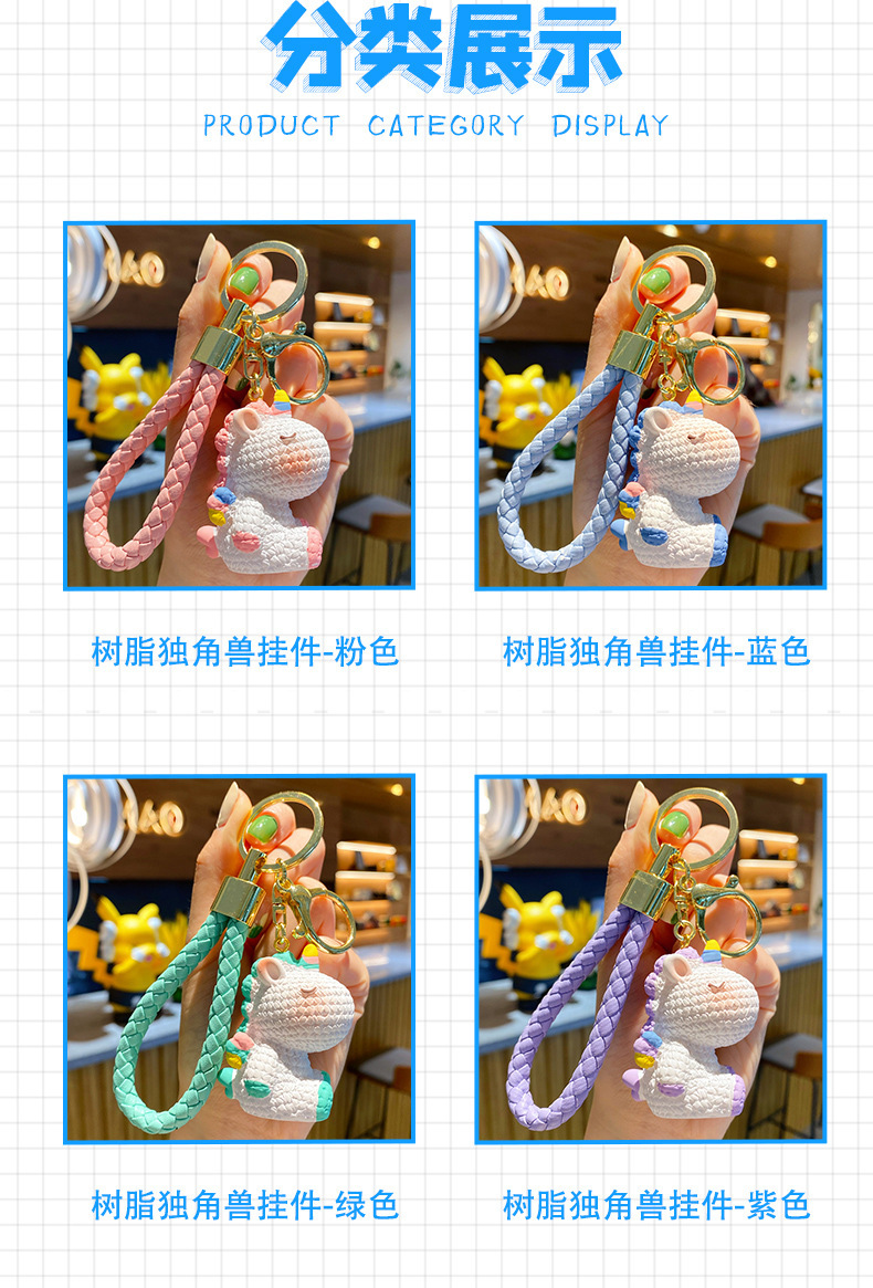 만화 수지 유니콘 키 체인 귀여운 마카롱 컬러 인형 펜던트 자동차 가방 키 체인 작은 선물