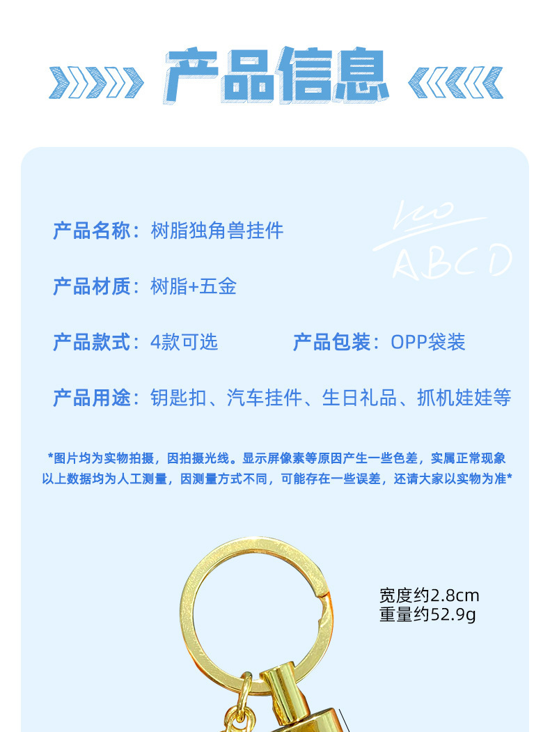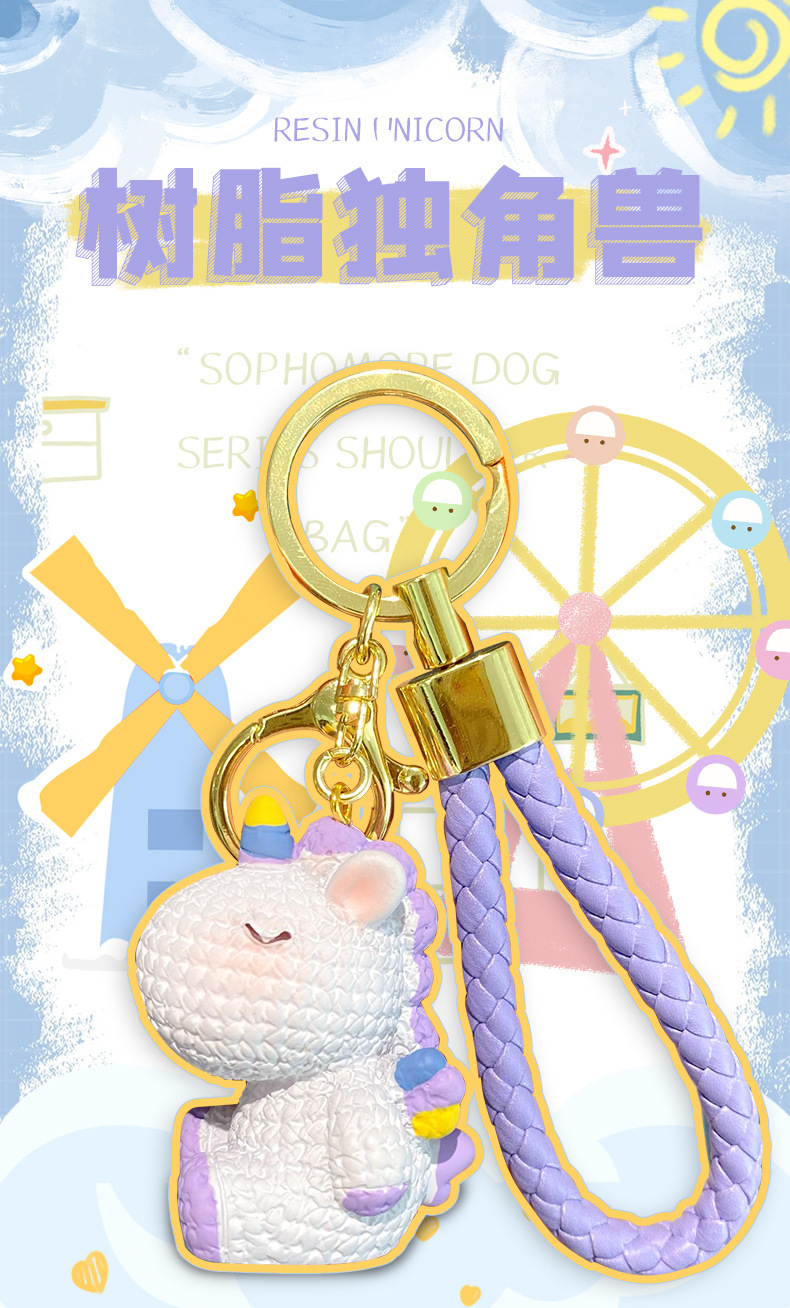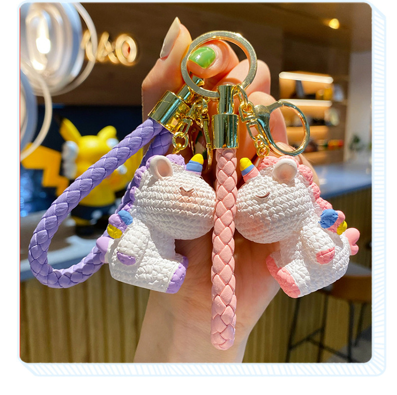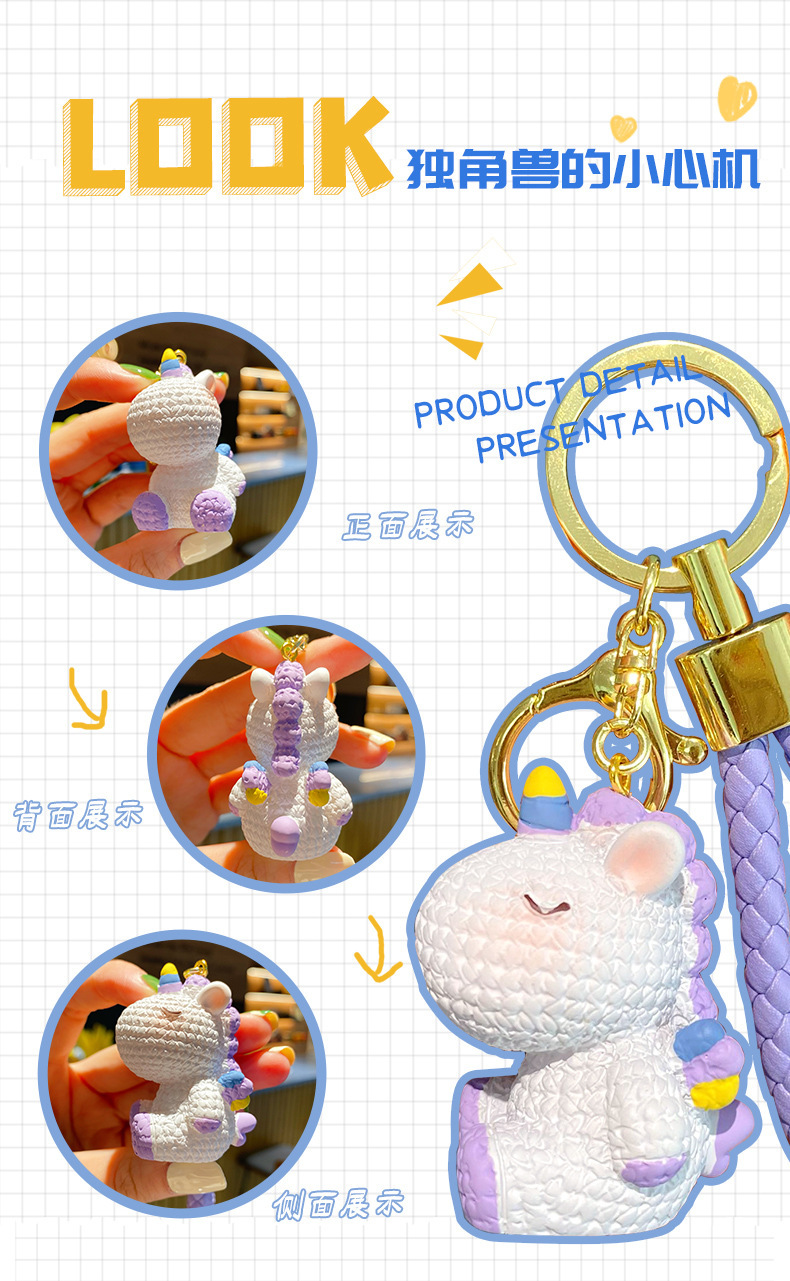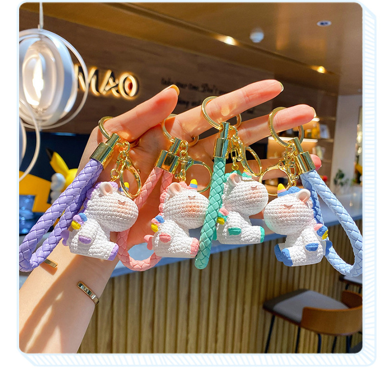 만화 수지 유니콘 키 체인 귀여운 마카롱 컬러 인형 펜던트 자동차 가방 키 체인 작은 선물