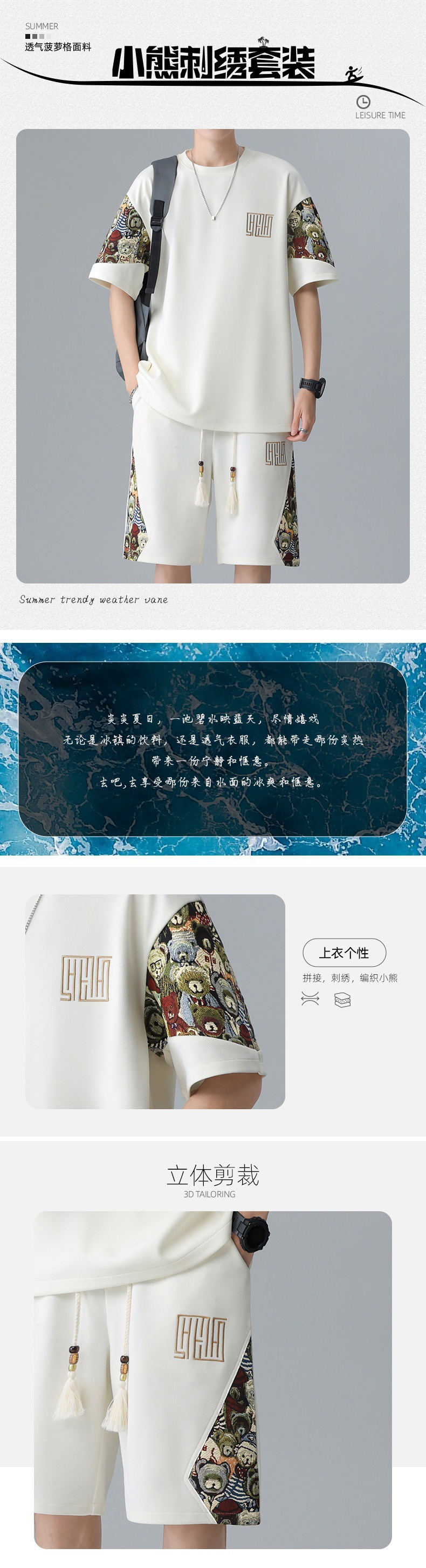 2024 여름 새로운 반팔 티셔츠 반바지 세트 남성 자수 바느질 투피스 세트 플러스 사이즈 청소년 인기 세트스토어 가기