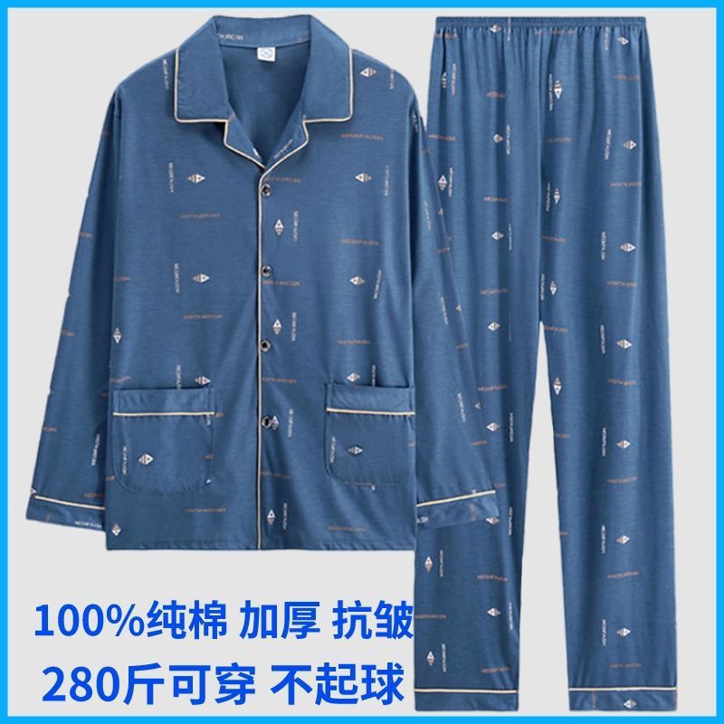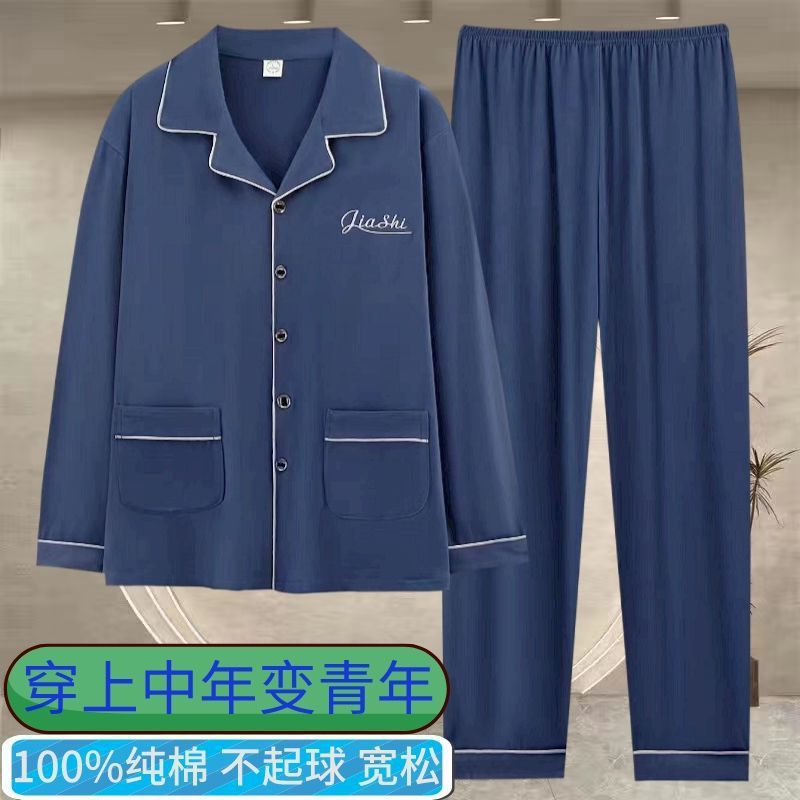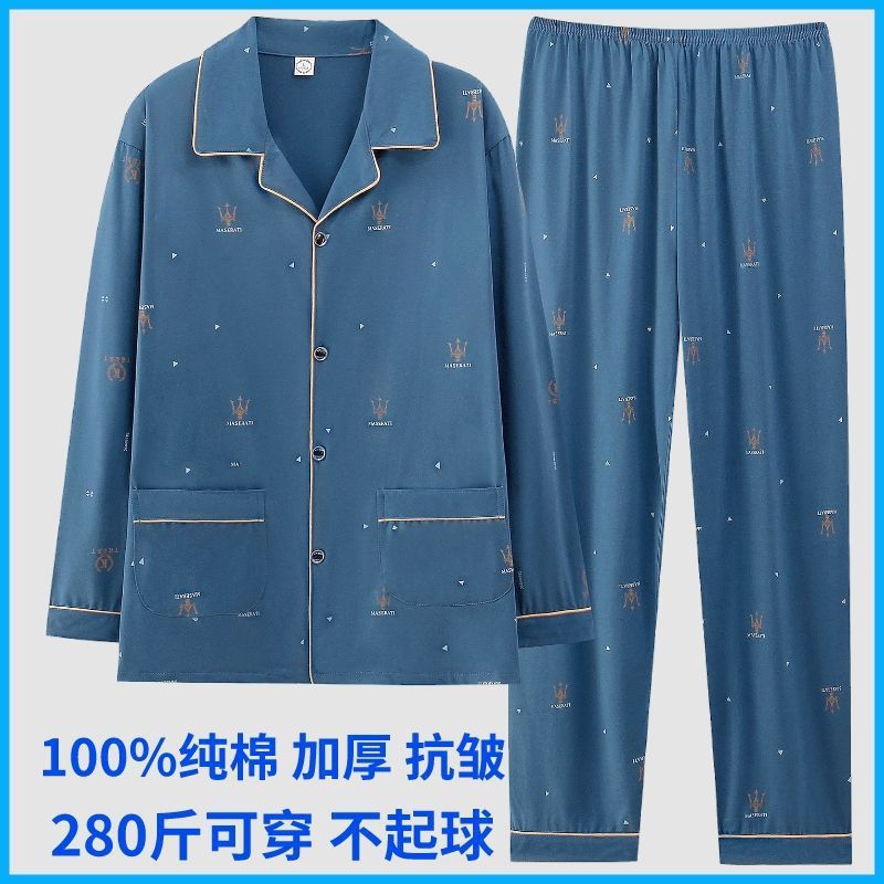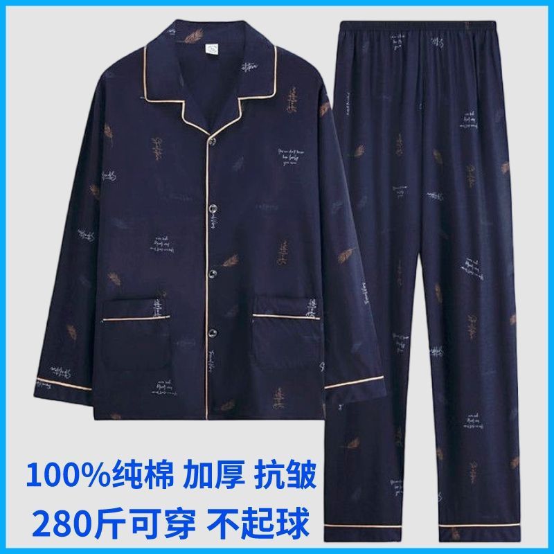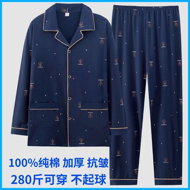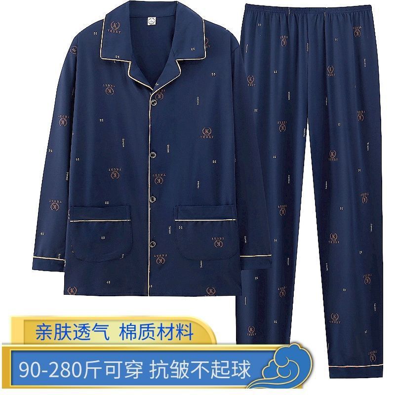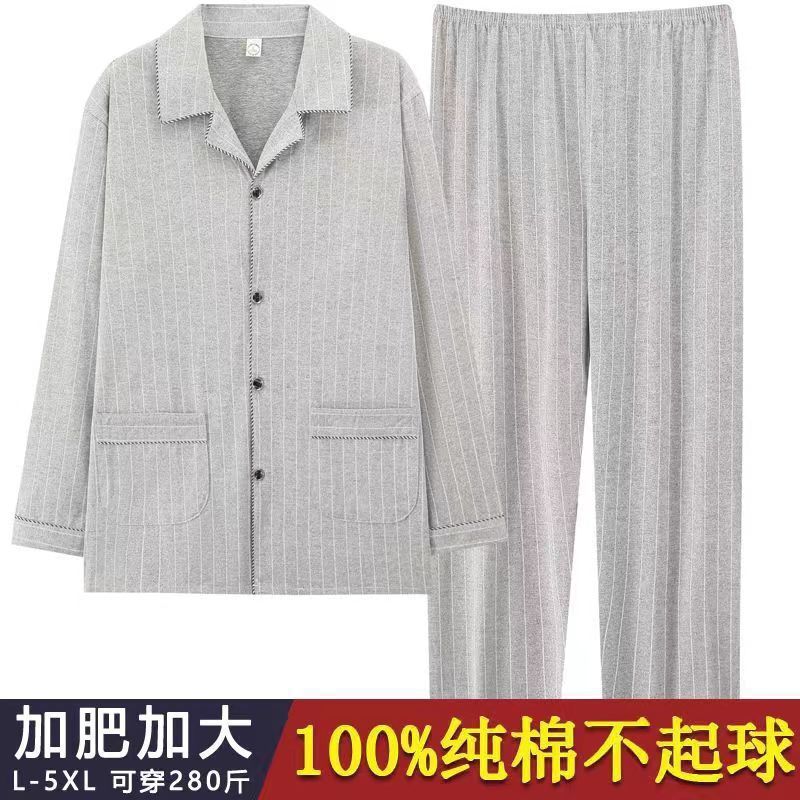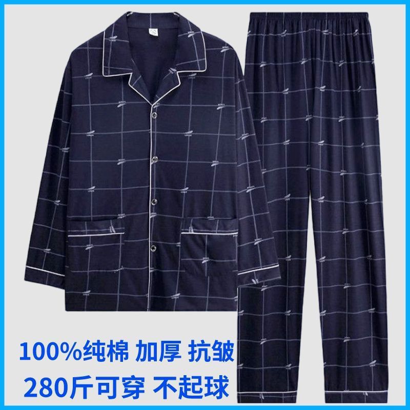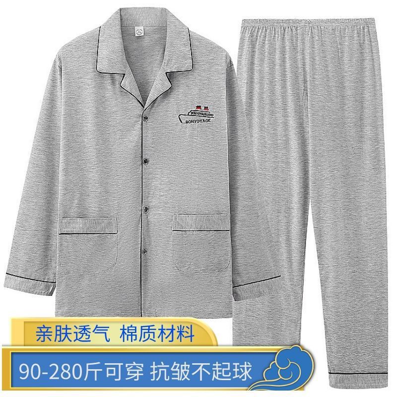 순면 잠옷 남자의 봄과 가을 긴 소매 격자 무늬 느슨한 플러스 사이즈 집을 위해 착용 할 수 있습니다스토어 가기