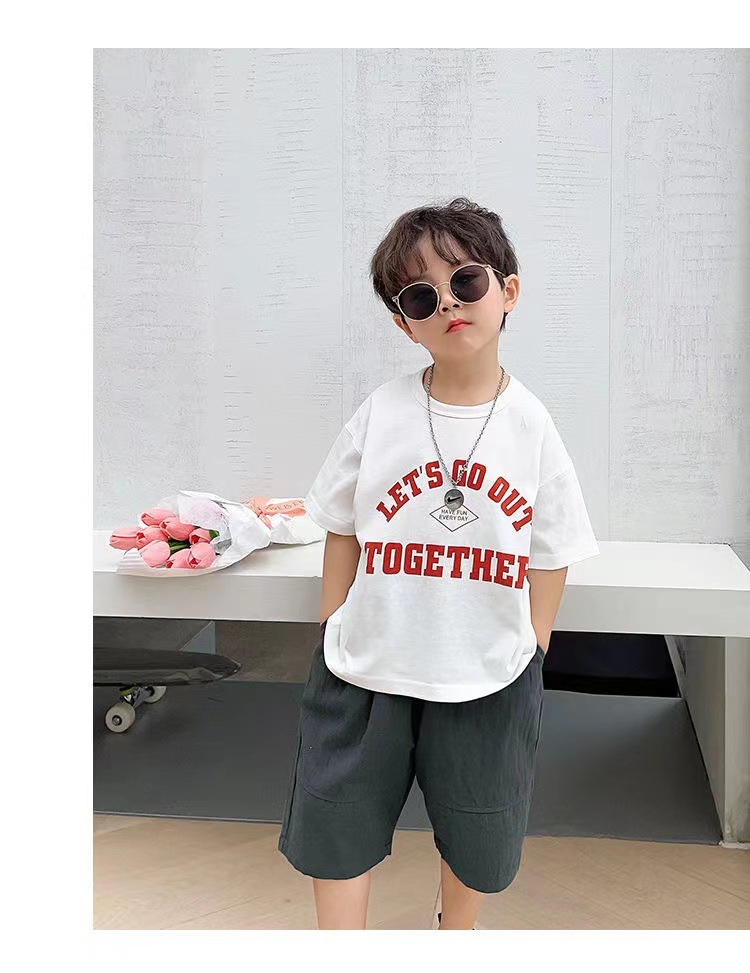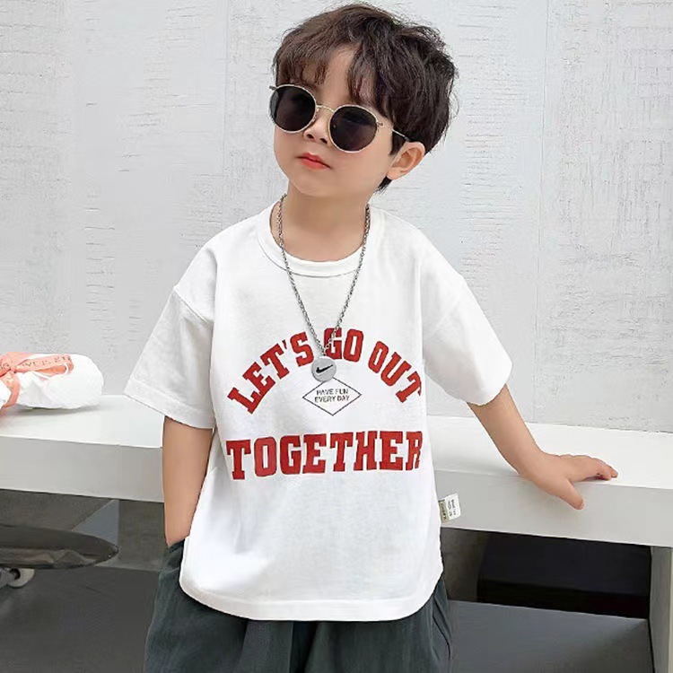 소년 티셔츠 반소매 면 2024 새 여름 어린이 탑 하프 소매 아동복 여름 소년 아동복스토어 가기