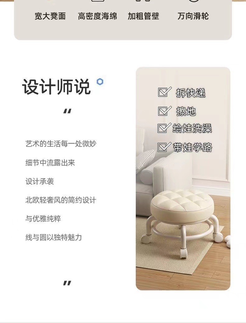 가정용 유니버설 휠 의자 바퀴 달린 로터리 로비 네일 아트 발 수리 스툴 풀리