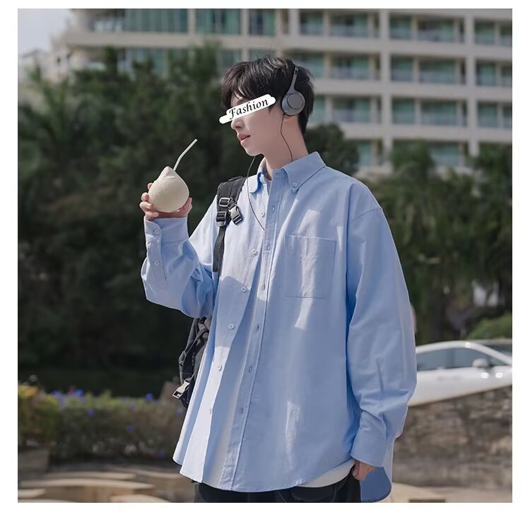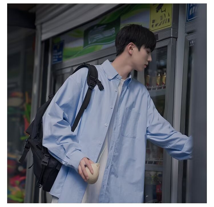 아메리칸 스타일 긴 소매 셔츠 남성용 여름 일본 스타일 느슨한 하이 엔드 느낌 강아지 핸섬 옷깃 셔츠 홍콩 스타일 캐주얼 루즈 재킷스토어 가기