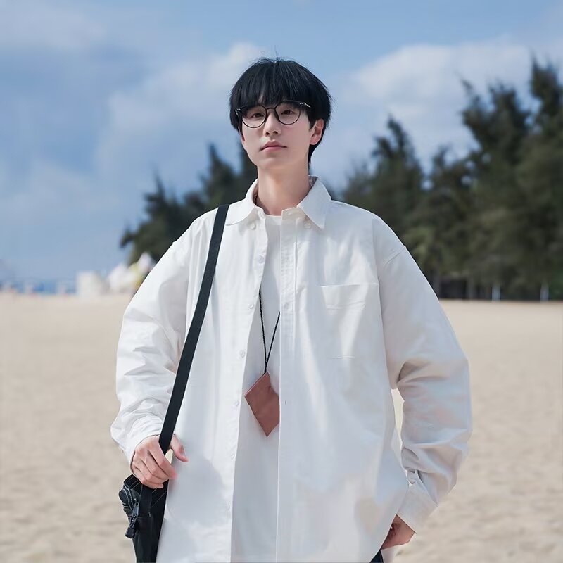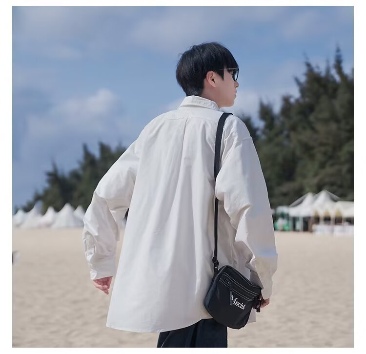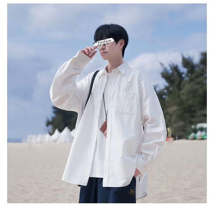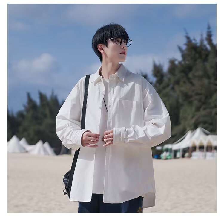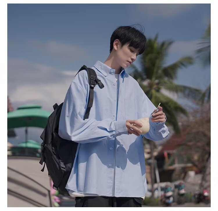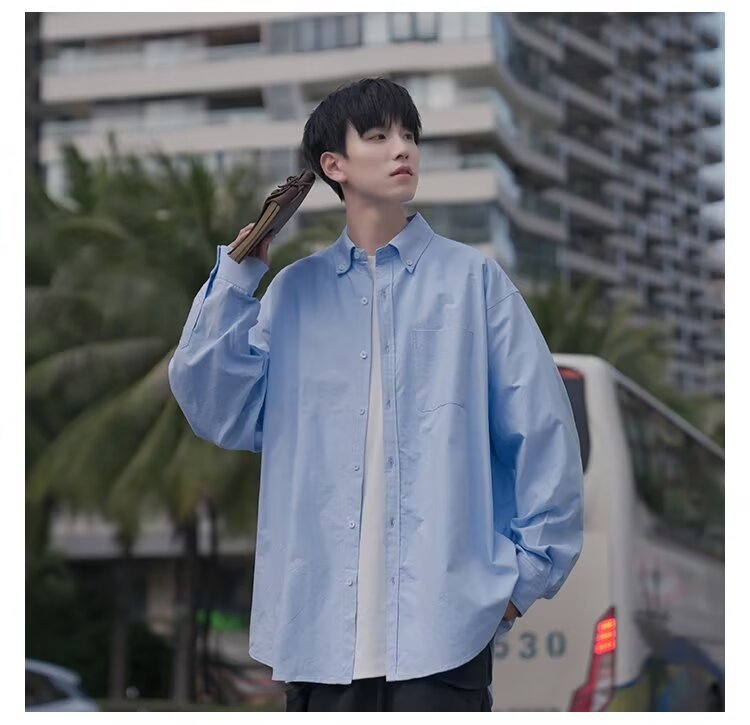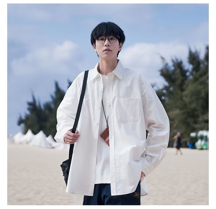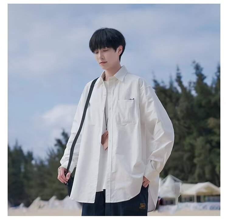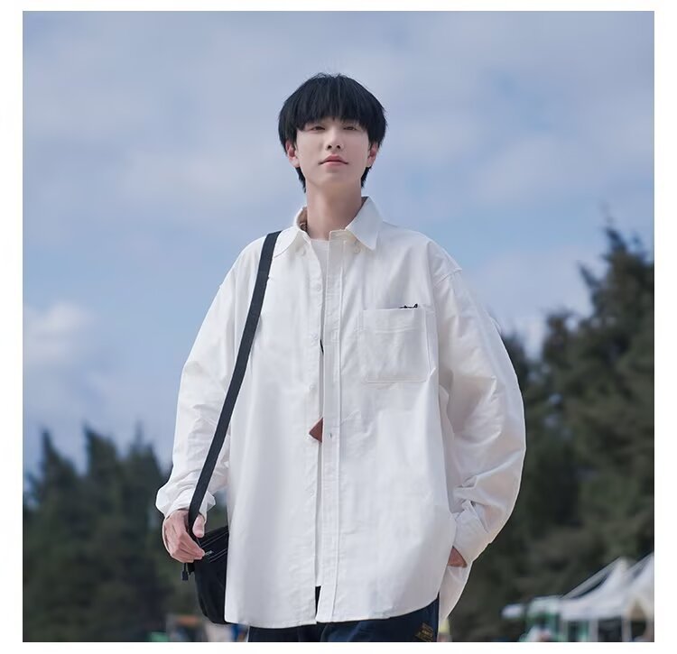 아메리칸 스타일 긴 소매 셔츠 남성용 여름 일본 스타일 느슨한 하이 엔드 느낌 강아지 핸섬 옷깃 셔츠 홍콩 스타일 캐주얼 루즈 재킷