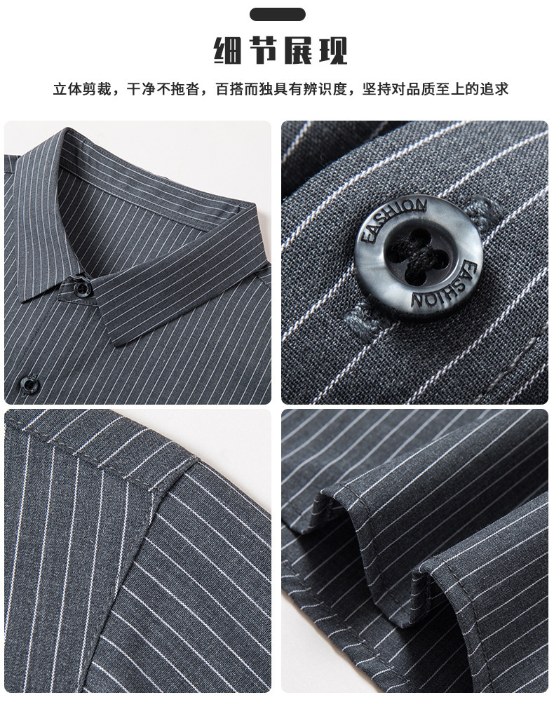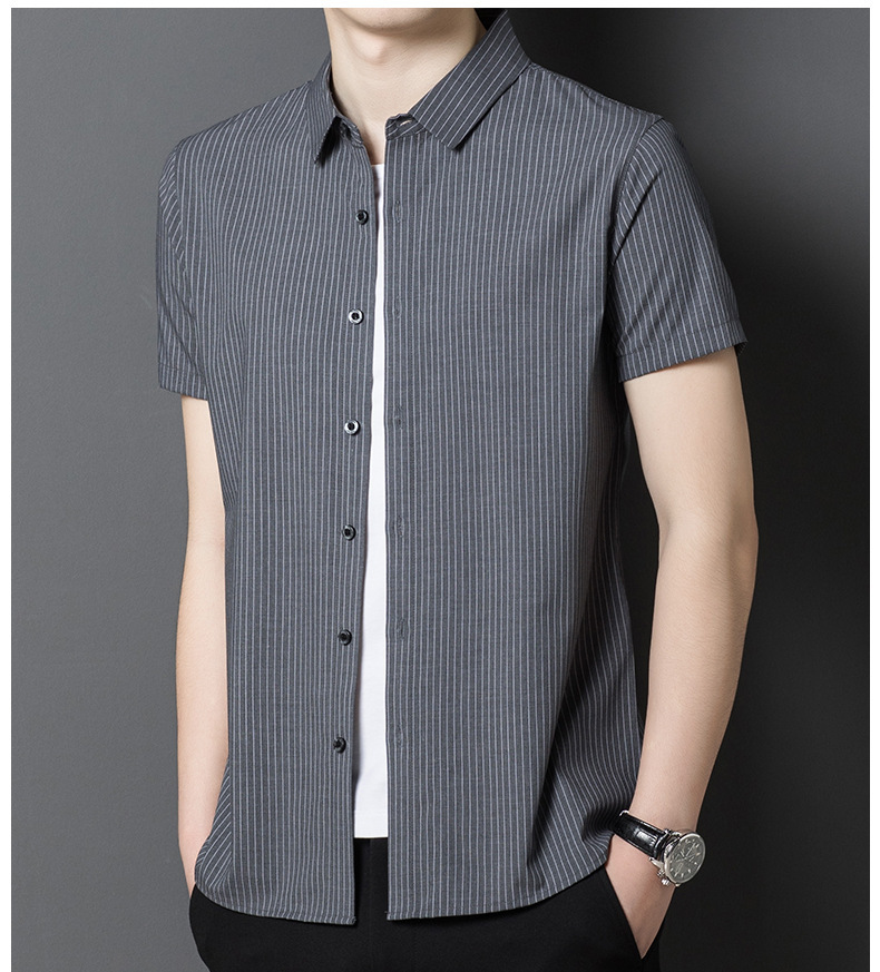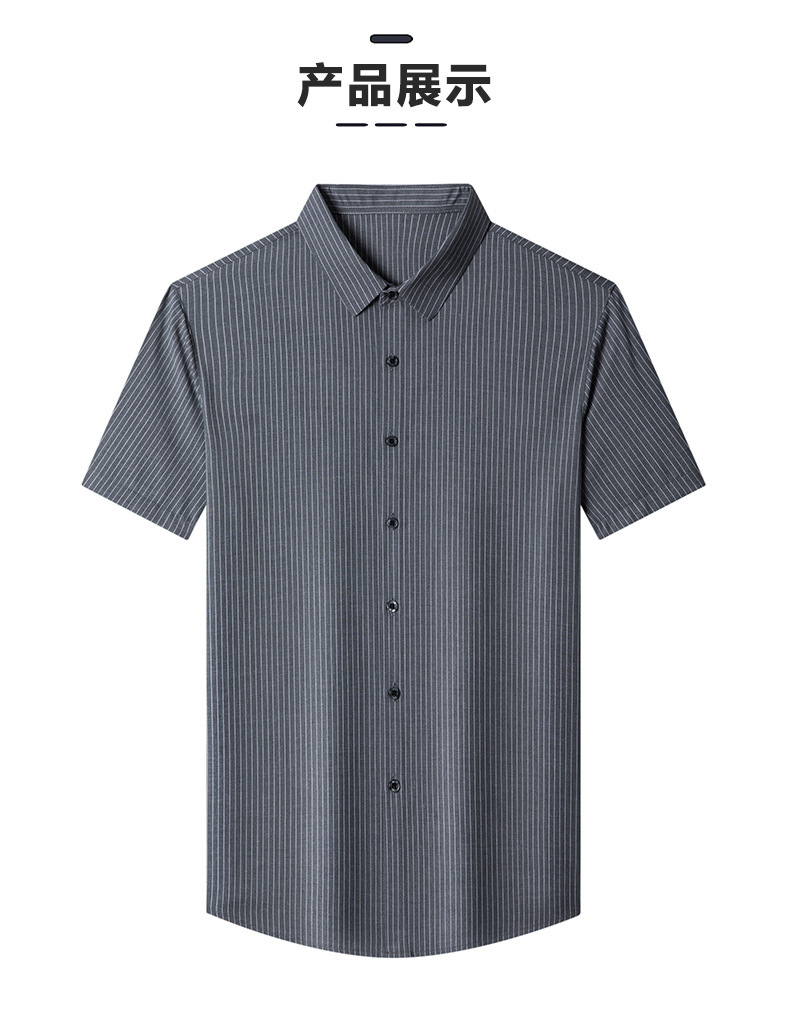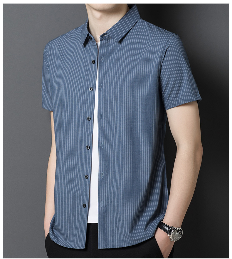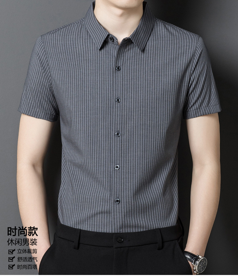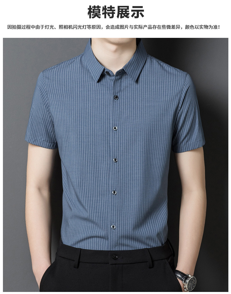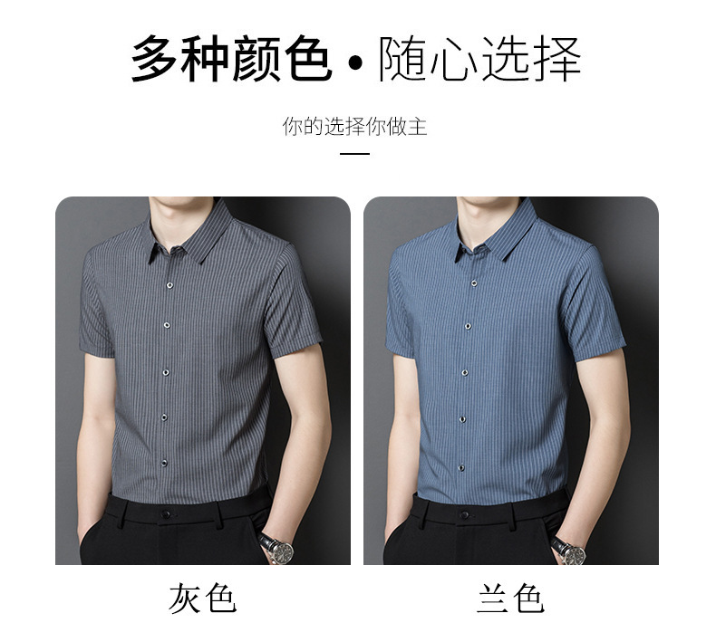夏季冰丝短袖衬衫男式无痕免烫透气速干翻领条纹中年男士半袖衬衣