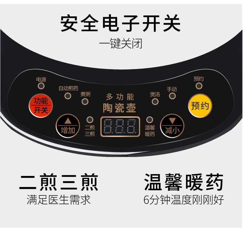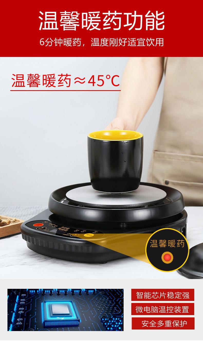 专业煎药壶可定时预约自动熬成一碗保温全程免看管。全自动煎药+微电脑智能控制药量可调节省心,古法煎制,现推出汤煲搭配可随心煲制靓汤营养香粥为您的家人健康从美食守护