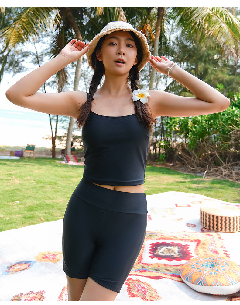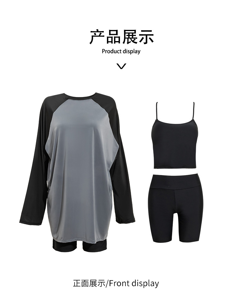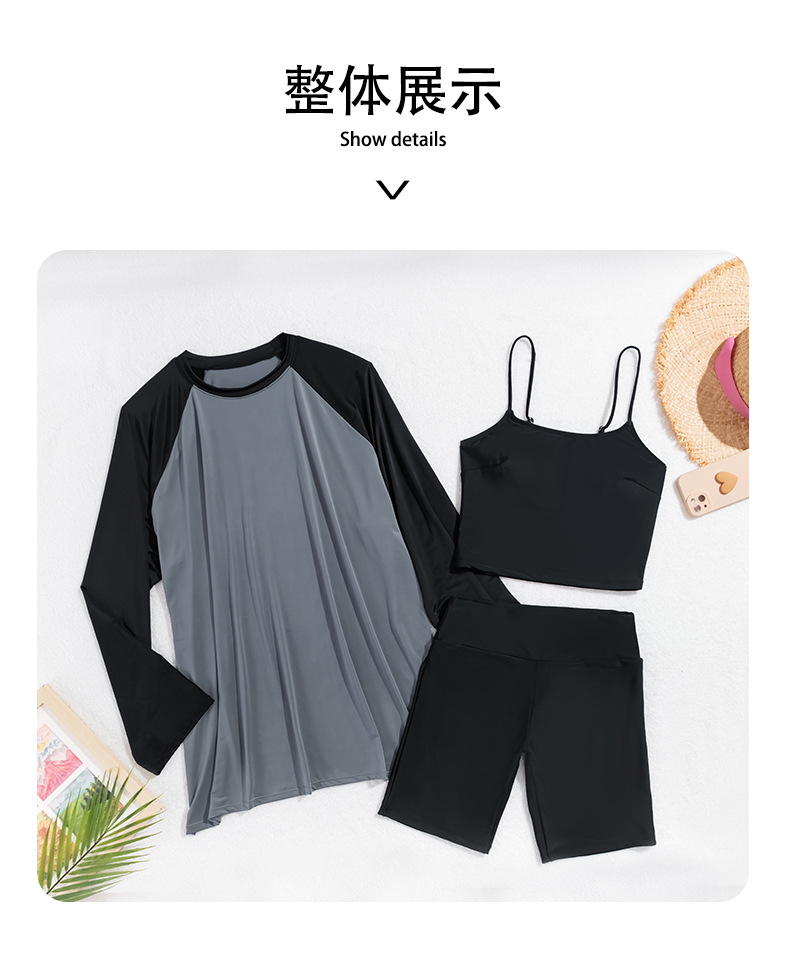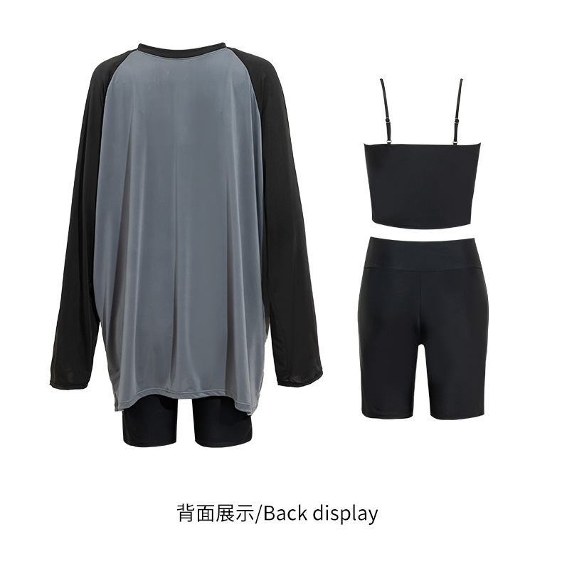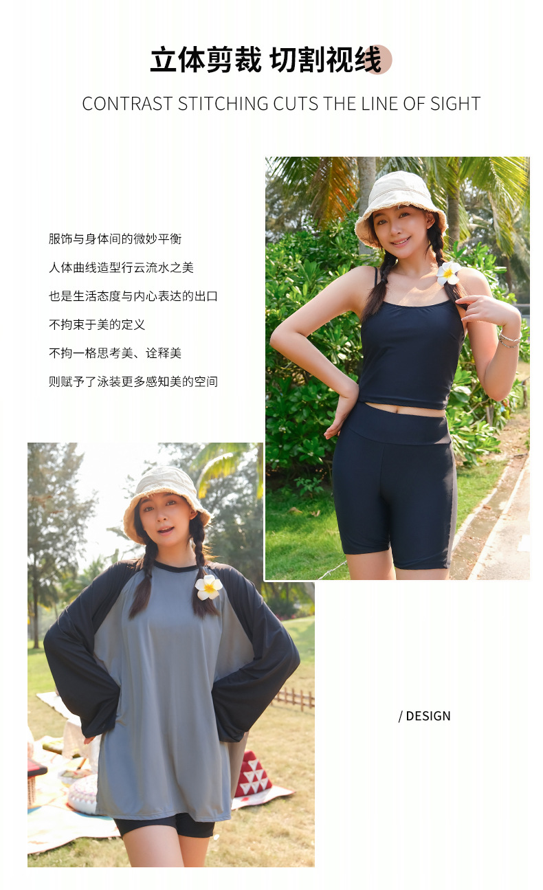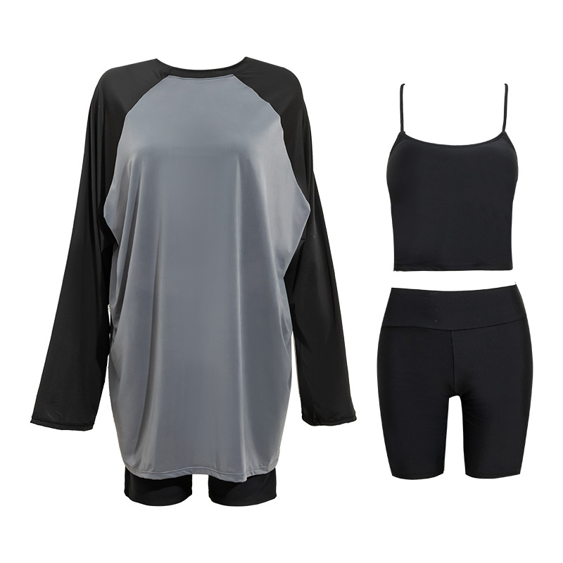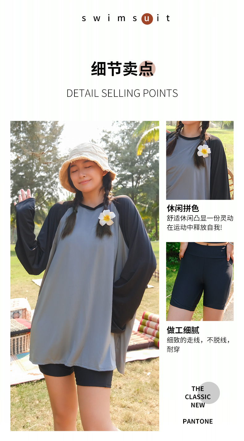 뚱뚱한 소녀의 3피스 보수적인 해변 온천 스플릿 수영복 대형 배를 덮고 슬리밍 컬러 매칭 스포츠 스타일 수영복