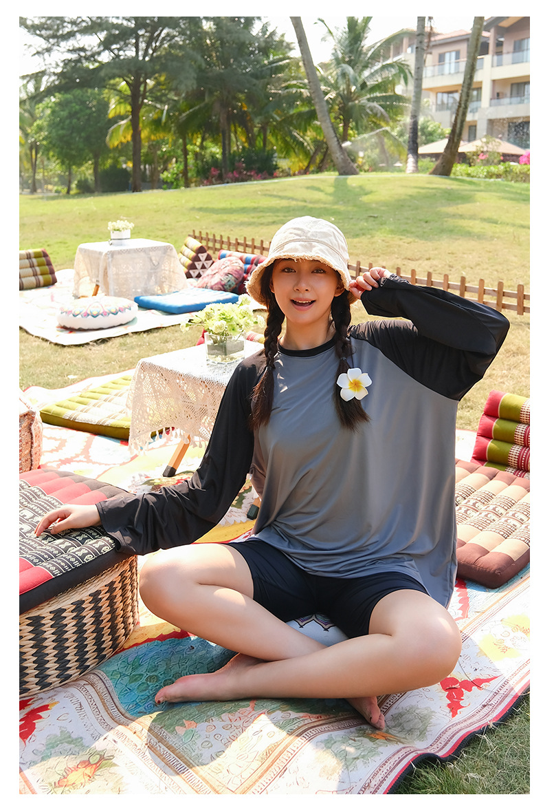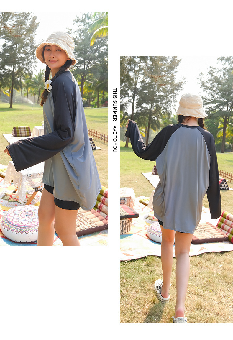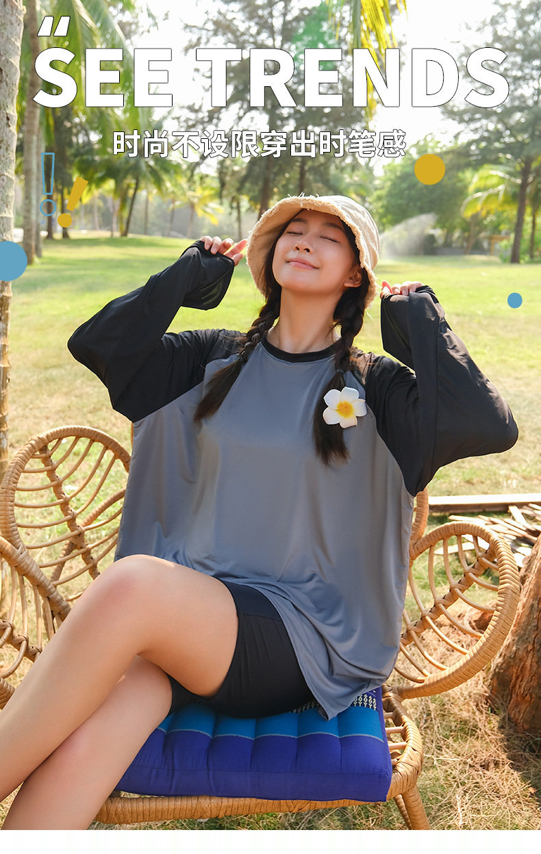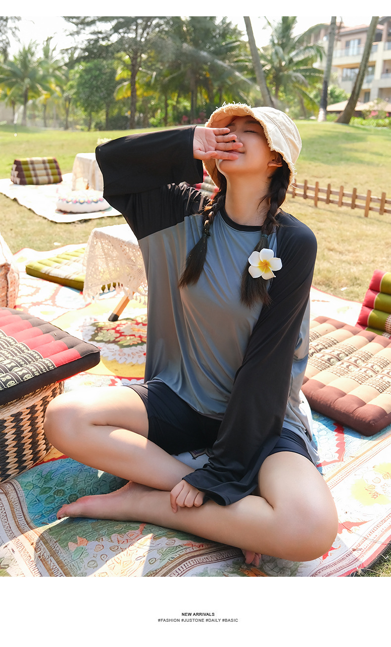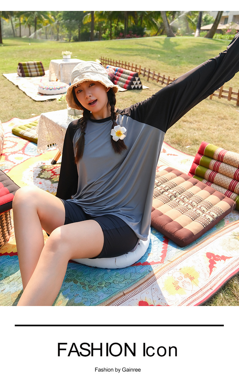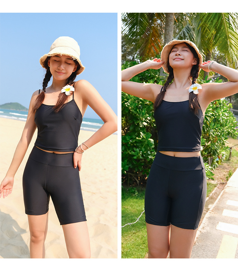 뚱뚱한 소녀의 3피스 보수적인 해변 온천 스플릿 수영복 대형 배를 덮고 슬리밍 컬러 매칭 스포츠 스타일 수영복