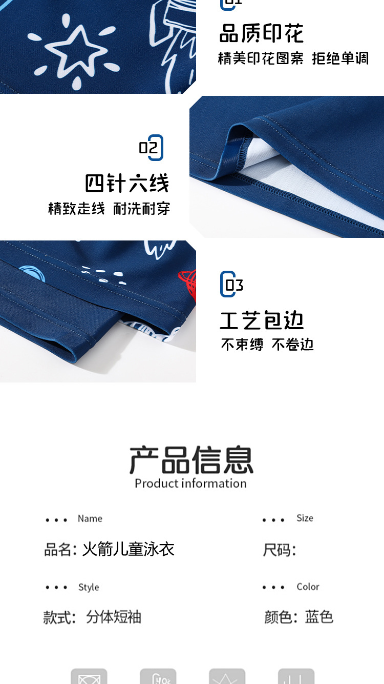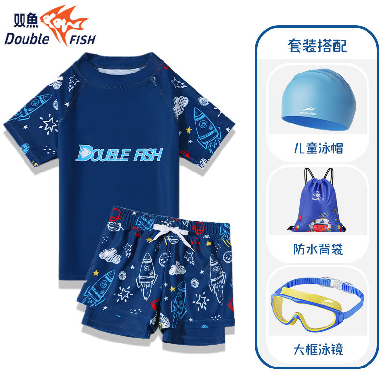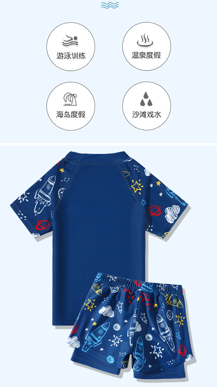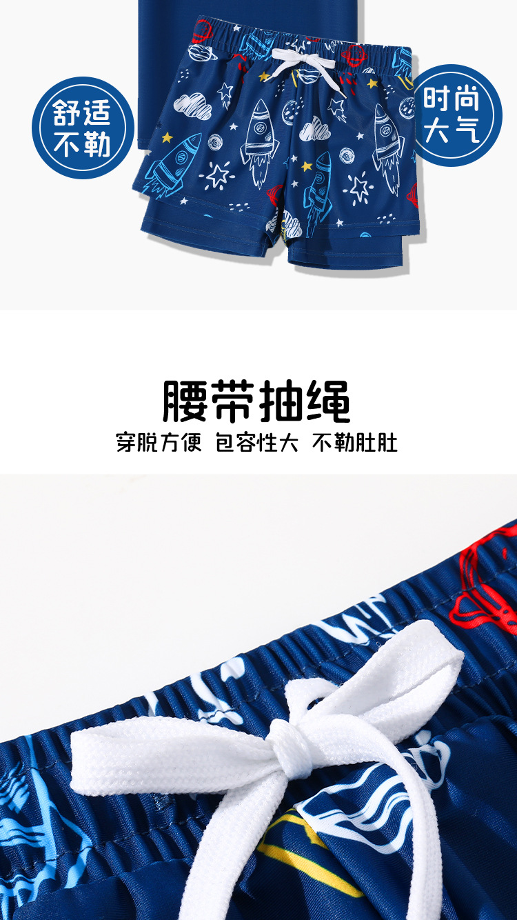 • 어린이 로켓 수영복 [이중층 수영 트렁크]-수영 모자