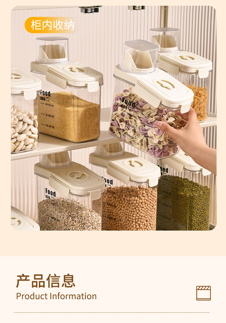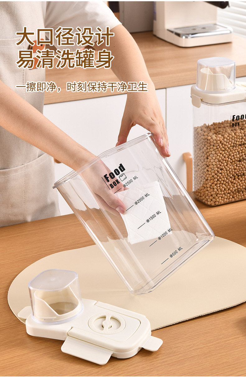 투명 밀봉 된 캔 곡물 저장 상자 주방 캐비닛 콩 코릭스 쌀 방진 및 방습 쌀 저장 상자