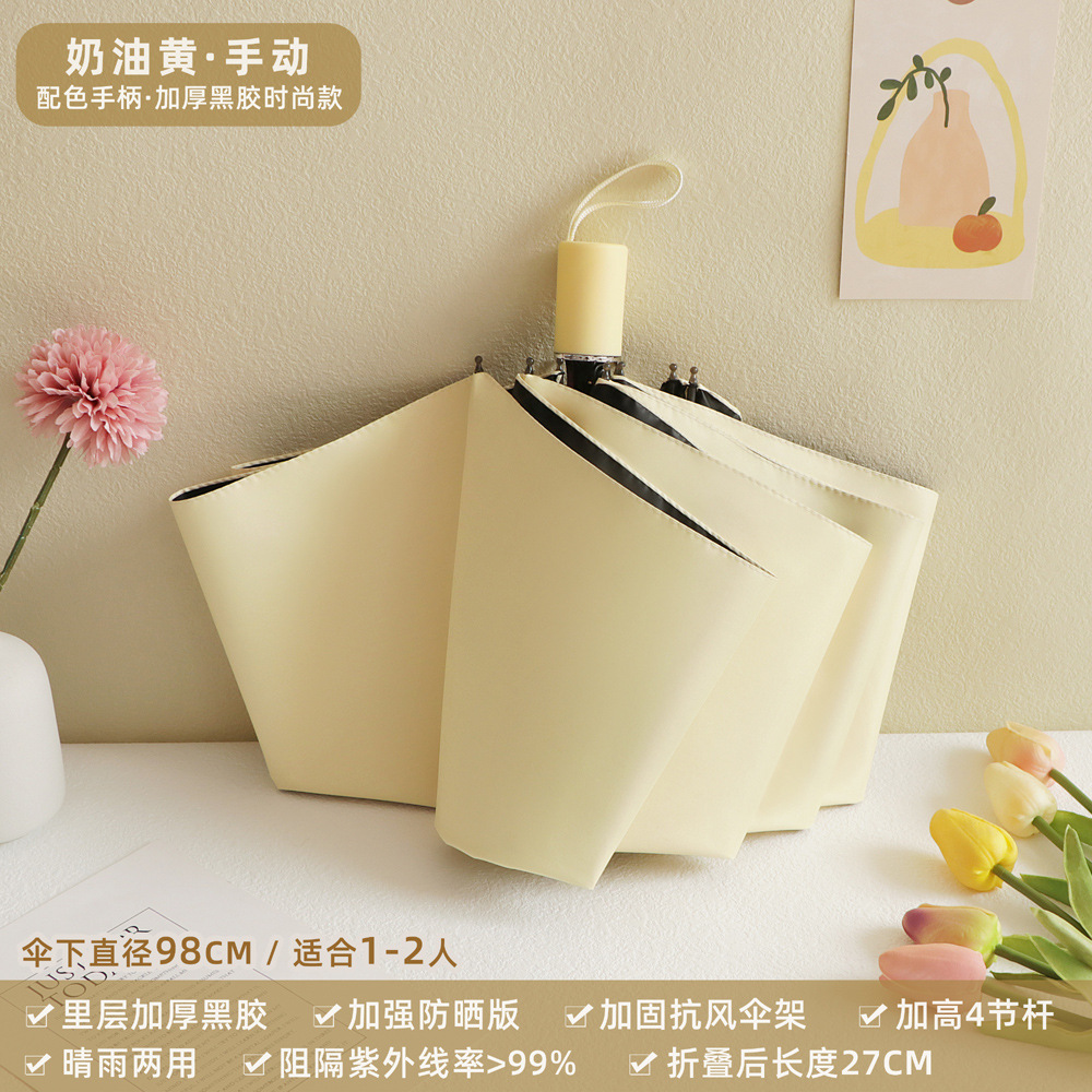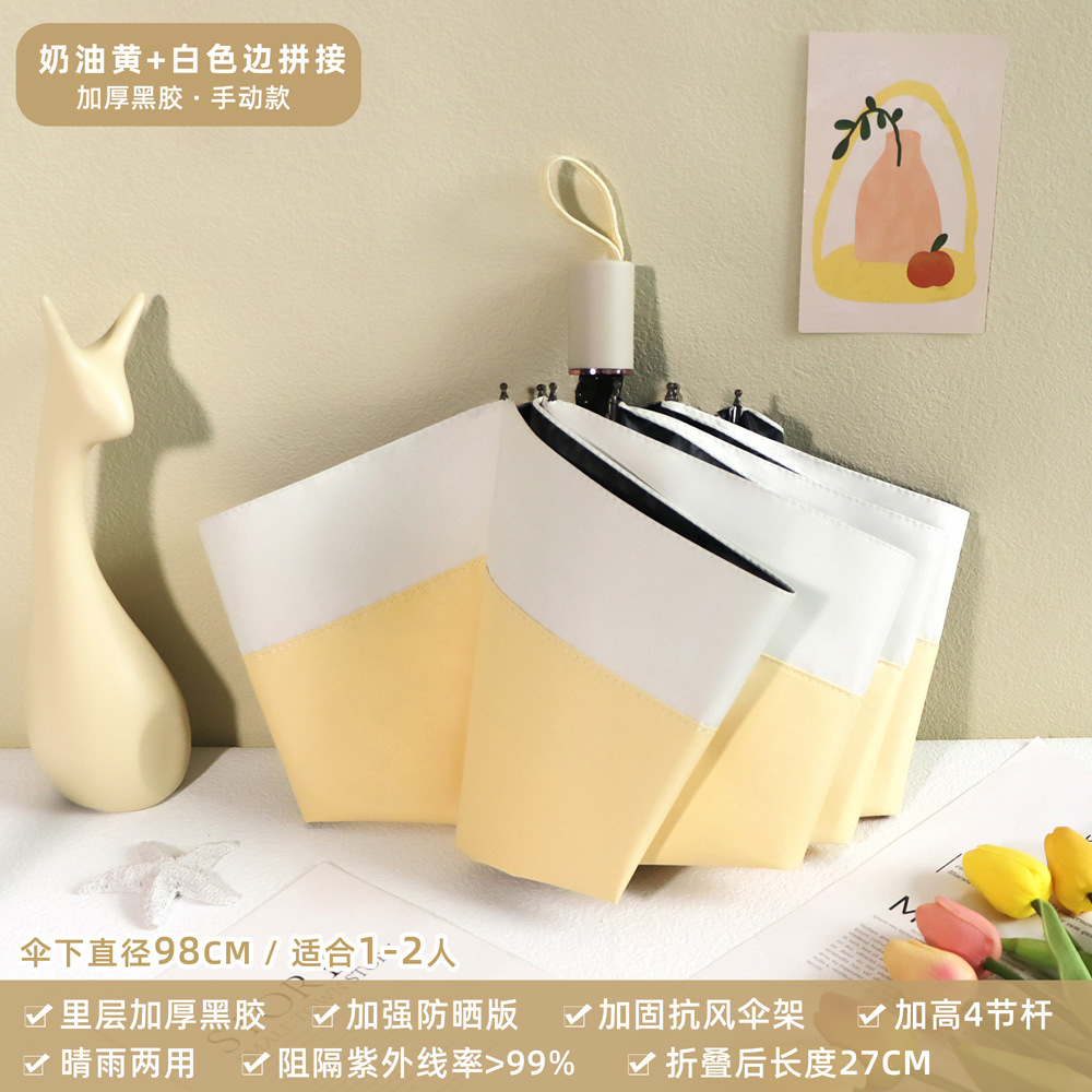 • 크림 노란색 두꺼운 검은 접착제 패션 강화 수동 강화 태양 보호-햇빛과 비를위한 이중 사용