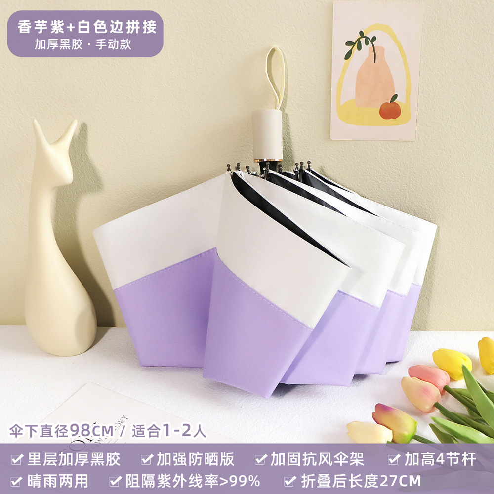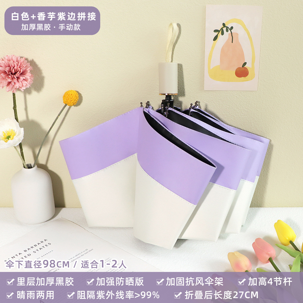 • 라이트 퍼플 화이트 에지 스플 라이스 두꺼운 블랙 접착제 강화 수동 강화 태양 보호-햇빛과 비를위한 이중 사용
