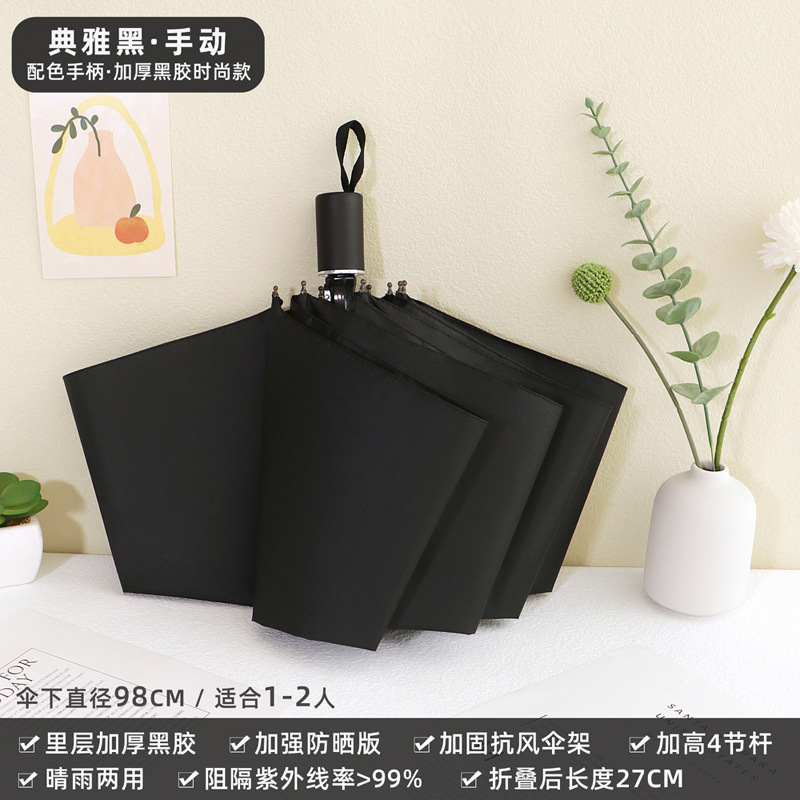 • Wutong 쌀-두꺼운 검은 접착제 패션 강화 수동 강화 태양 보호-햇빛과 비를위한 이중 사용