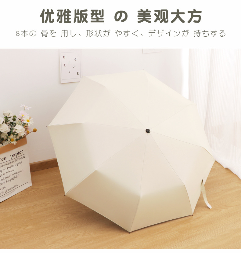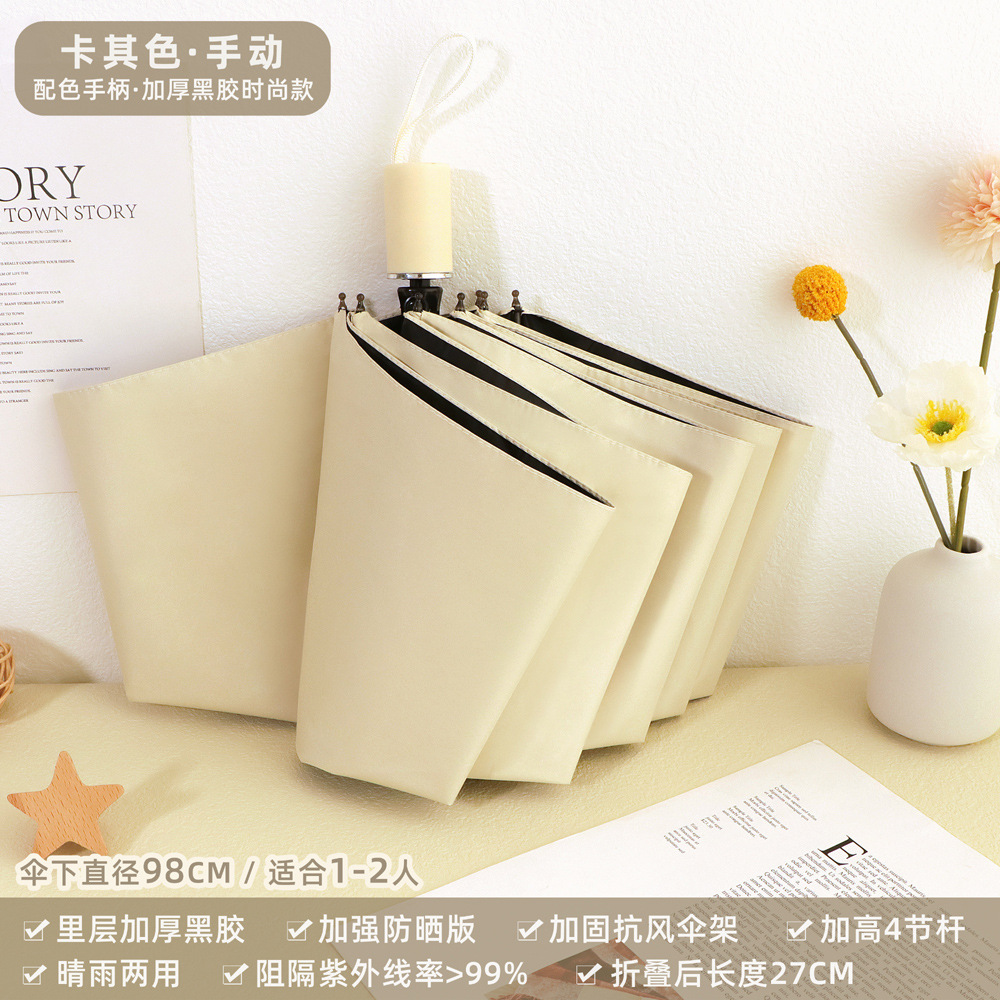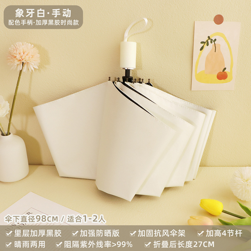 우산 솔리드 컬러 크림 바람 맑은 우산 UV 태양 우산 여성 태양 보호 UV 보호 블랙 접착제 태양 보호 우산 도매스토어 가기