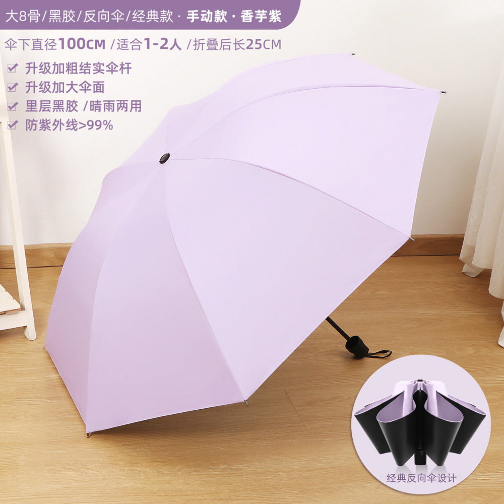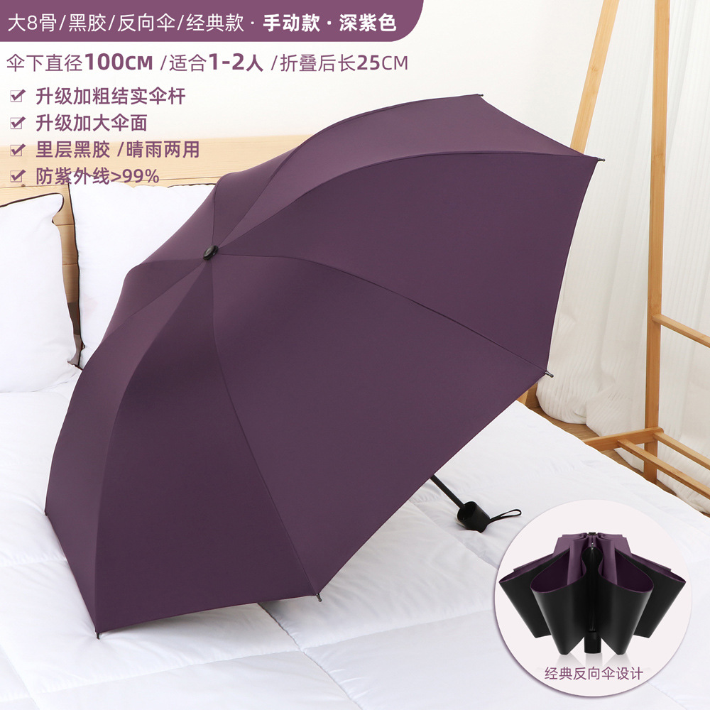 • 진한 보라색-대형 8본 역우산 비닐 upf40+ 수동-맑음 또는 비오는 날