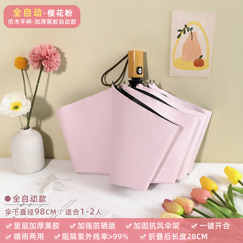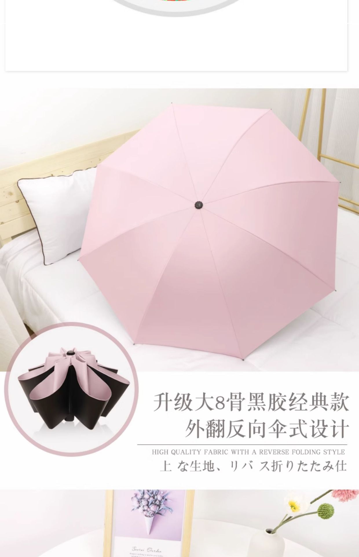 • 핑크 완전 자동 두꺼운 검은 고무 보강, 바람 저항 및 태양 보호-햇빛과 비를위한 이중 사용