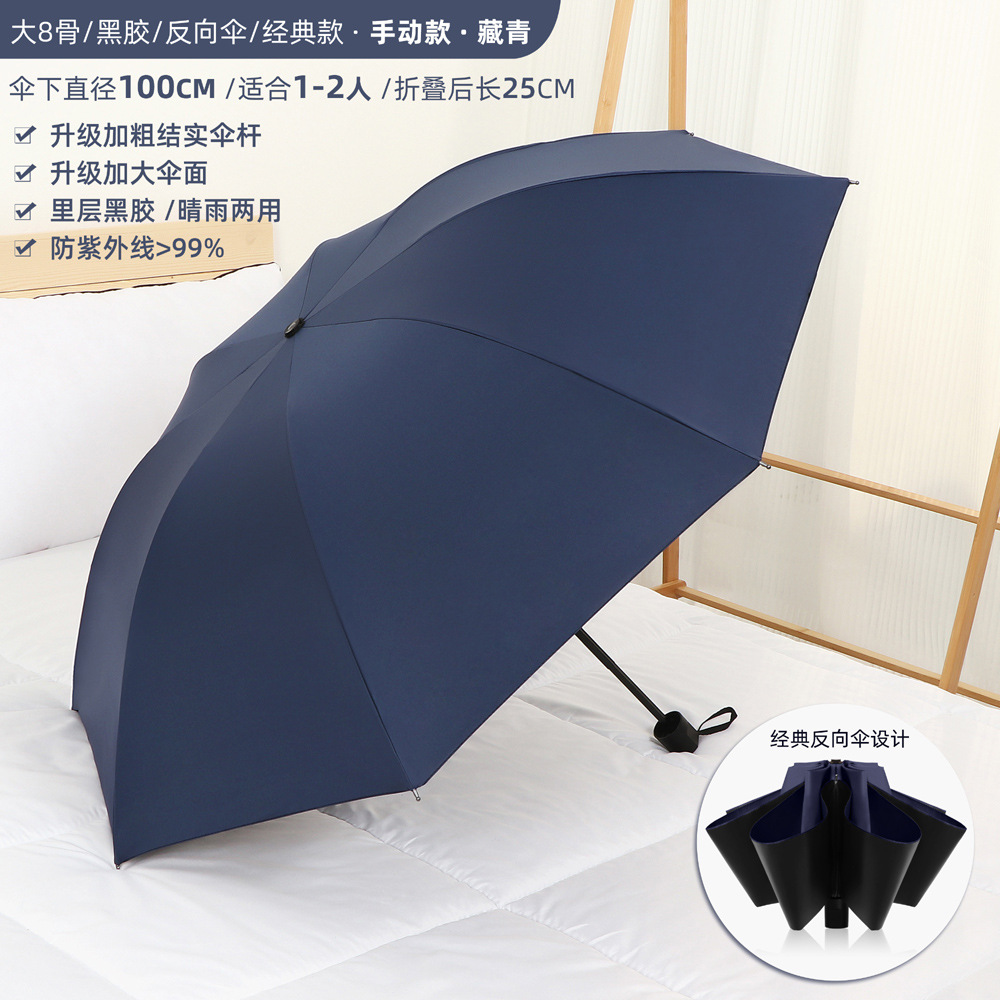• 네이비 블루-대형 8본 역우산 비닐 upf40+ 수동-맑음 또는 비오는 날