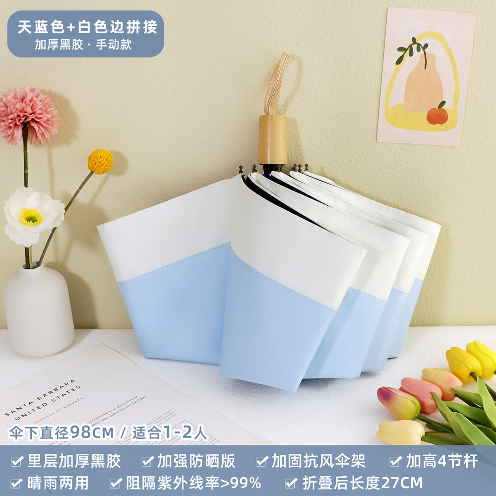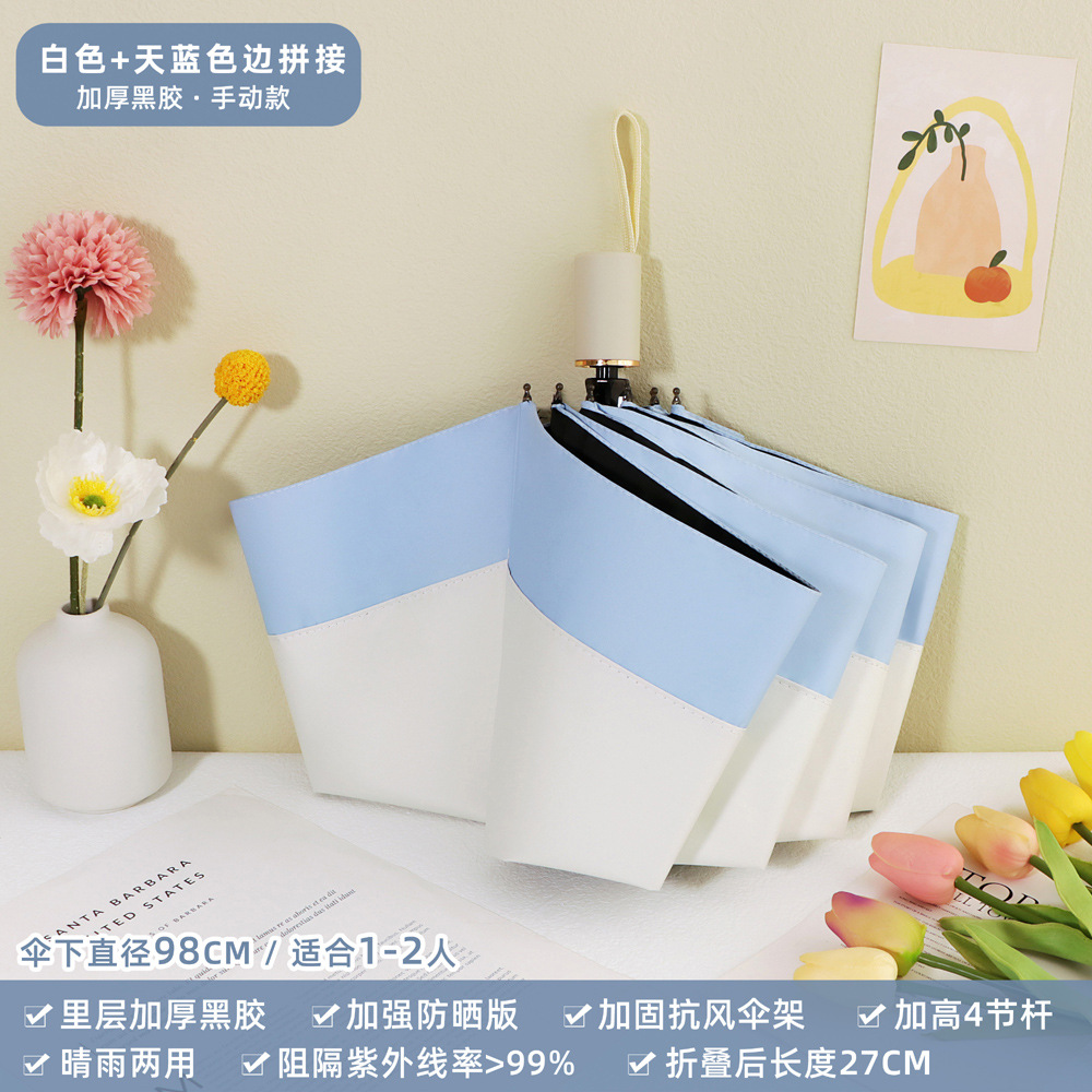 • 스카이 블루 화이트 에지 스플라이스 두꺼운 블랙 고무 강화 수동 강화 태양 보호-햇빛과 비를위한 이중 사용