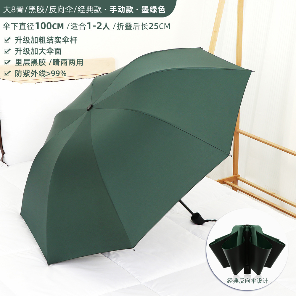 • 진한 녹색-대형 8본 역우산 비닐 upf40+ 수동-맑음 또는 비오는 날