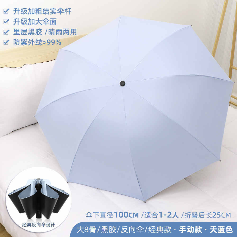 • 하늘색-대형 8본 역우산 비닐 upf40+ 수동-맑음 또는 비오는 날