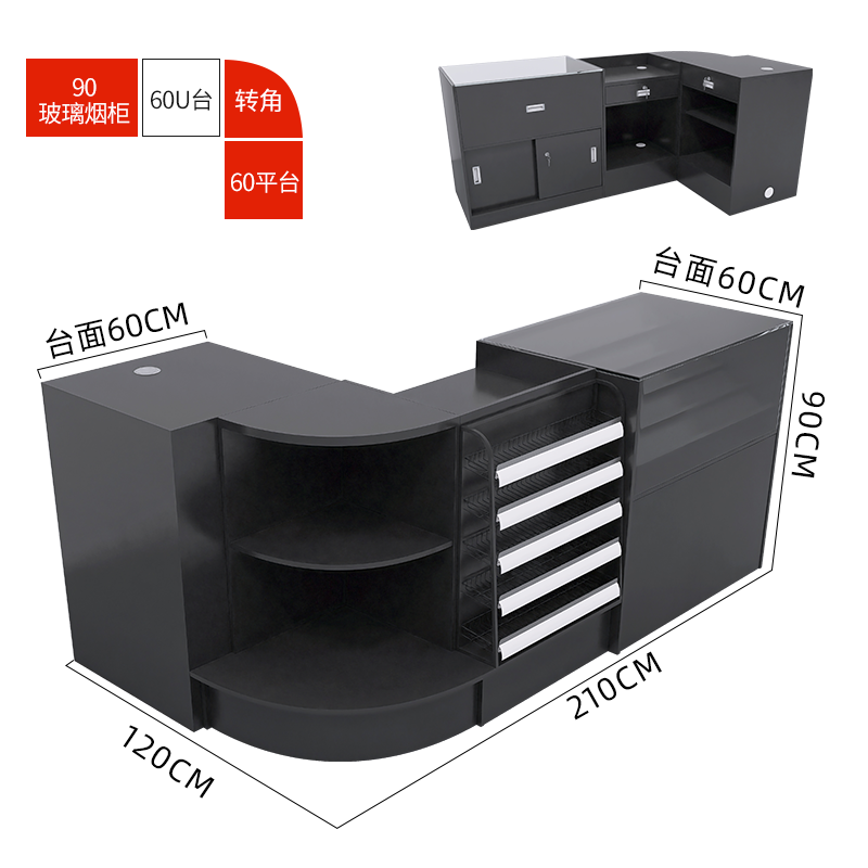 슈퍼마켓 계산원 연기 캐비닛 조합 작은 코너 바 유리 연기 카운터 간단한 편의점 계산원 테이블 카운터