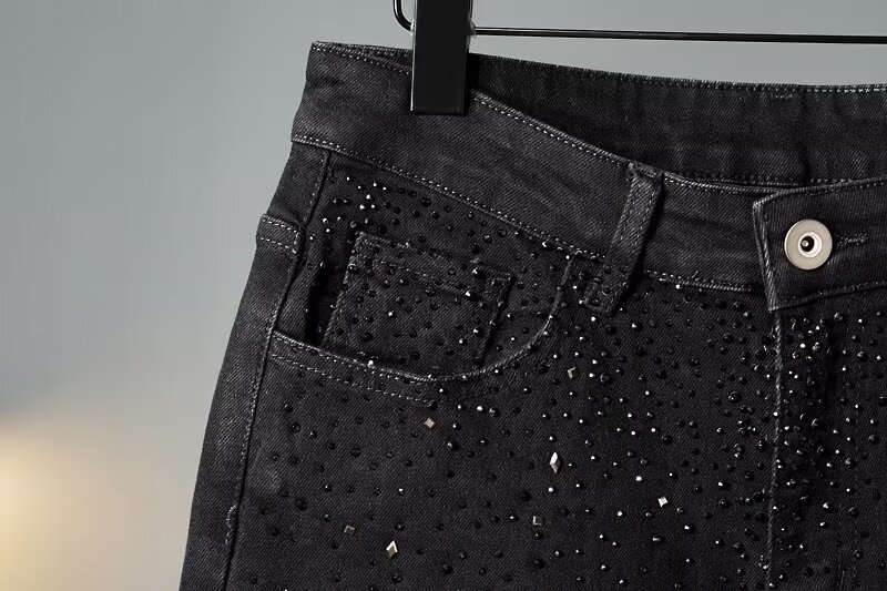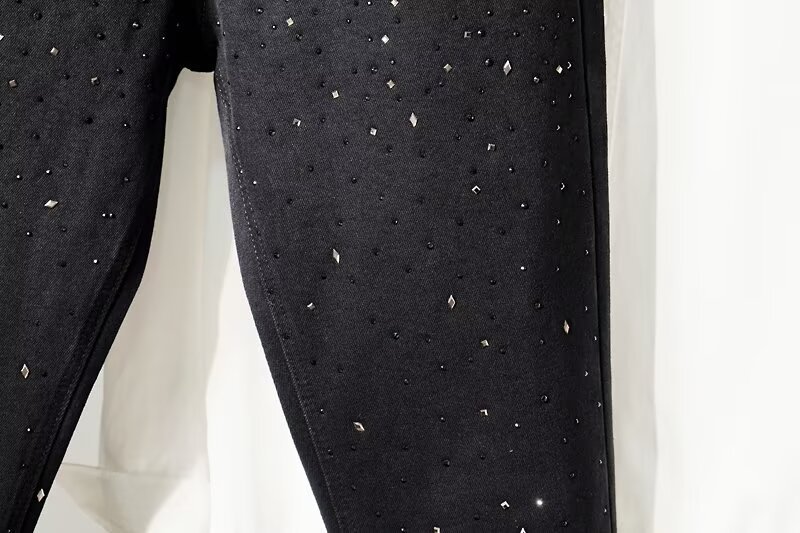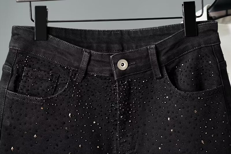 미국식 하이 스트리트 슬림 핏 청바지 인터넷-유명한 Gymnopus Rhinestone Black All-match Small Foot Men's Trendy Brand Starry Sky Pants스토어 가기
