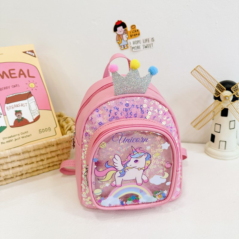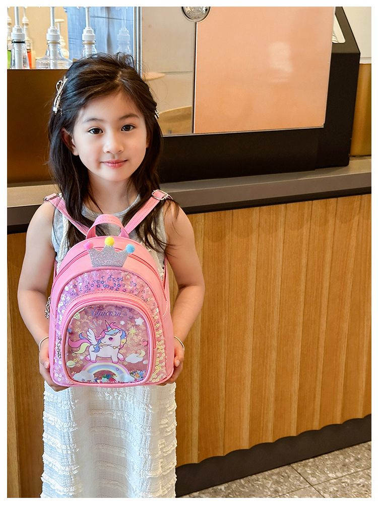 2024 새로운 어린이 PU 배낭 유치원 소녀의 귀여운 만화 인쇄 작은 Schoolbag Sequin 작은 배낭 유행스토어 가기