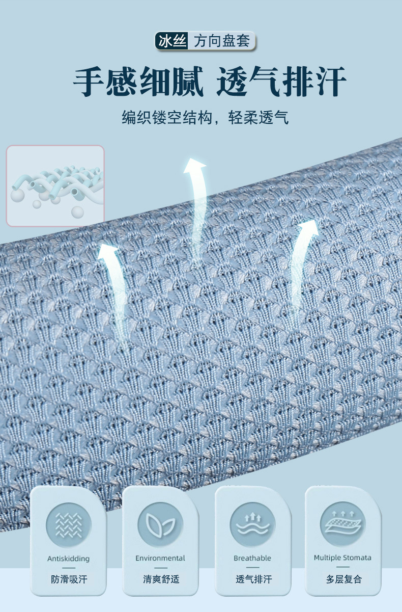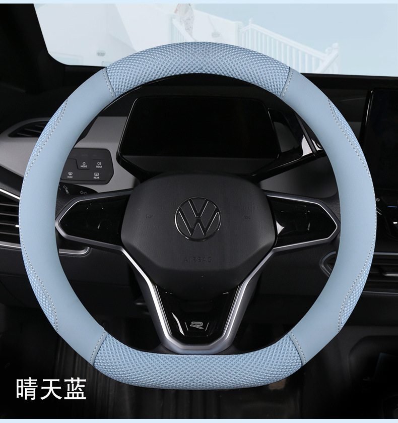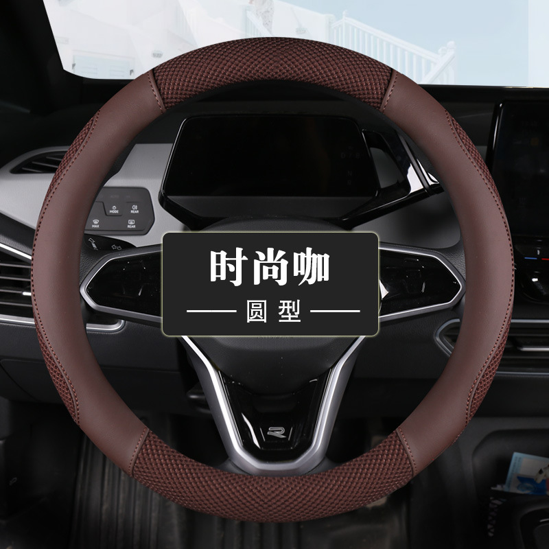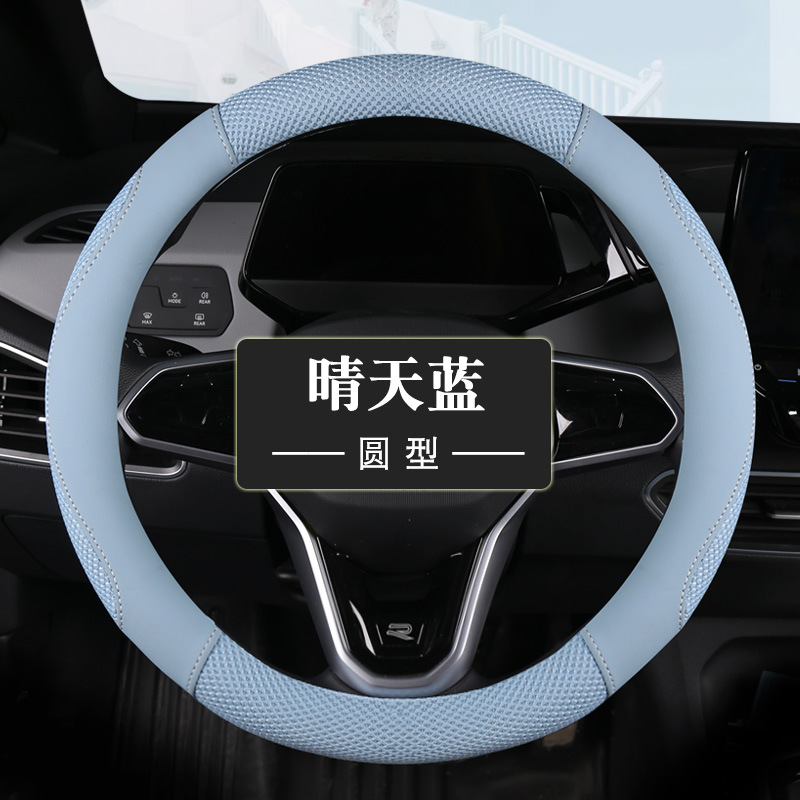 여름 가죽 주문 얼음 실크 통기성 스티어링 휠 커버 사계절 유니버설 자동차 용품 커버 D 타입