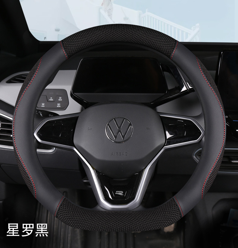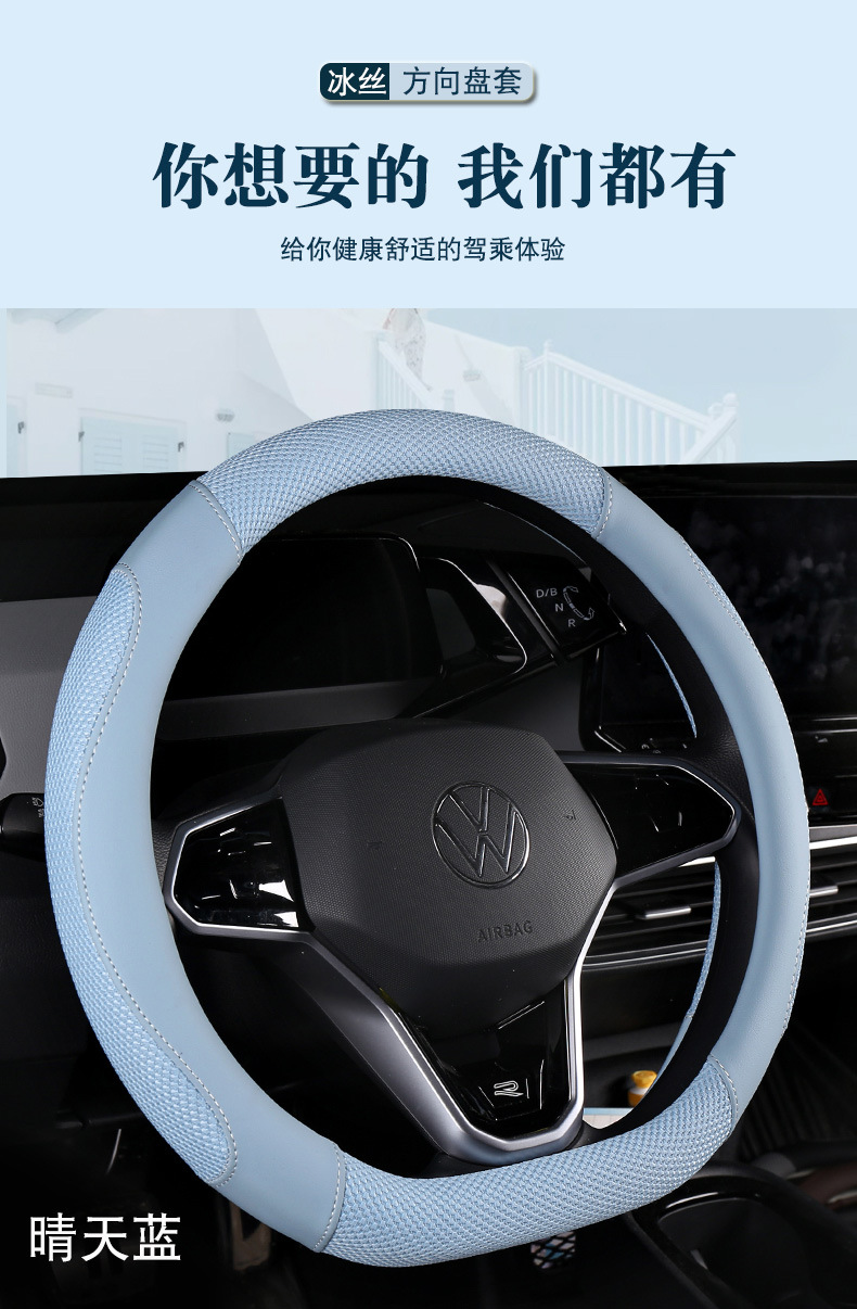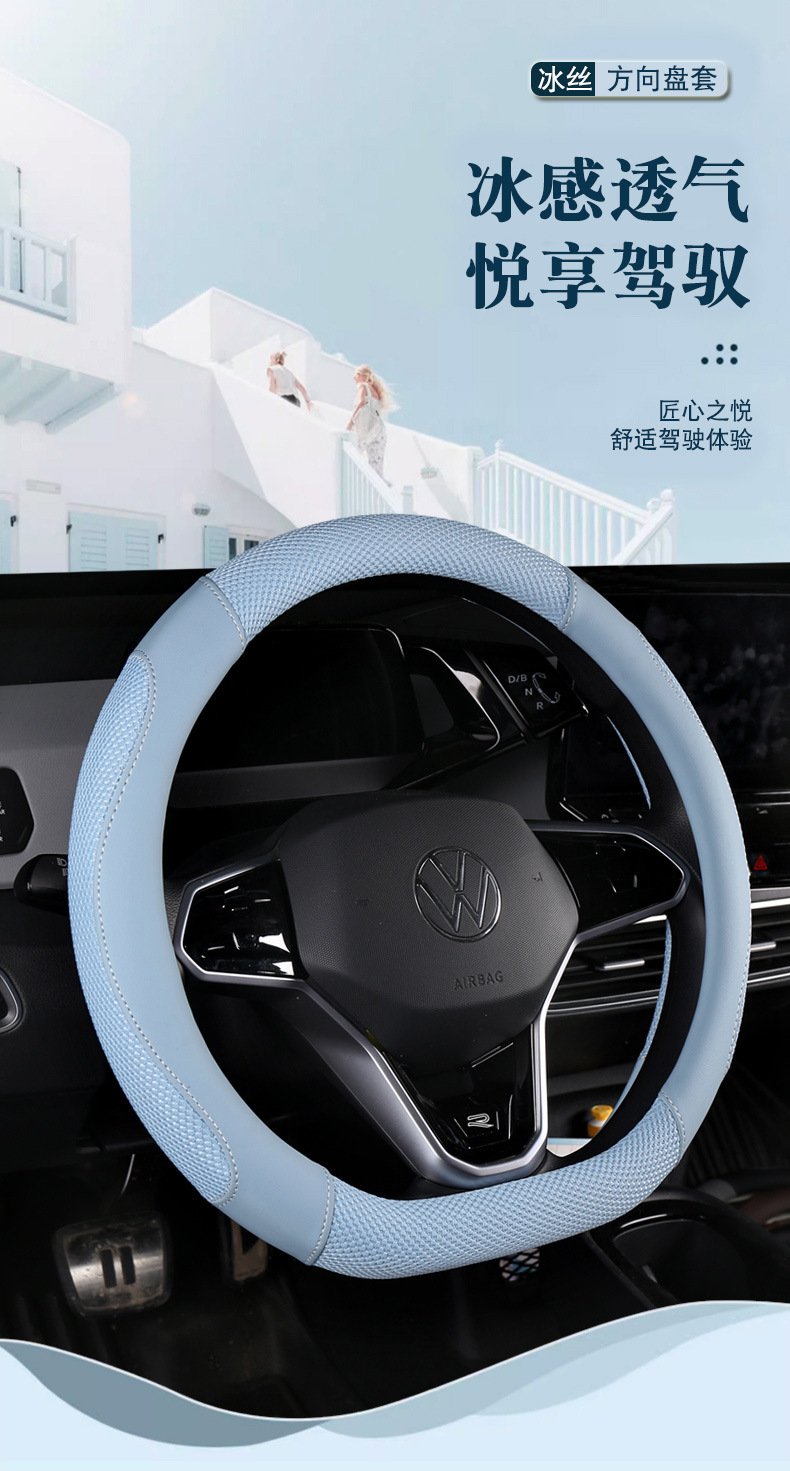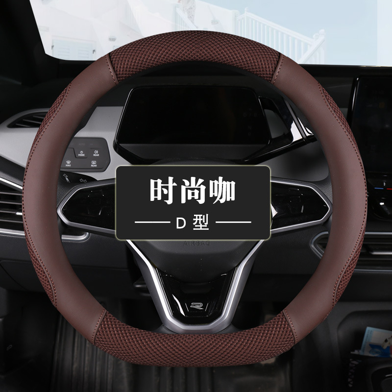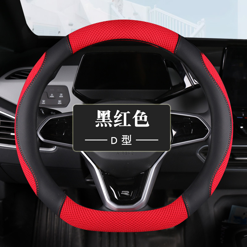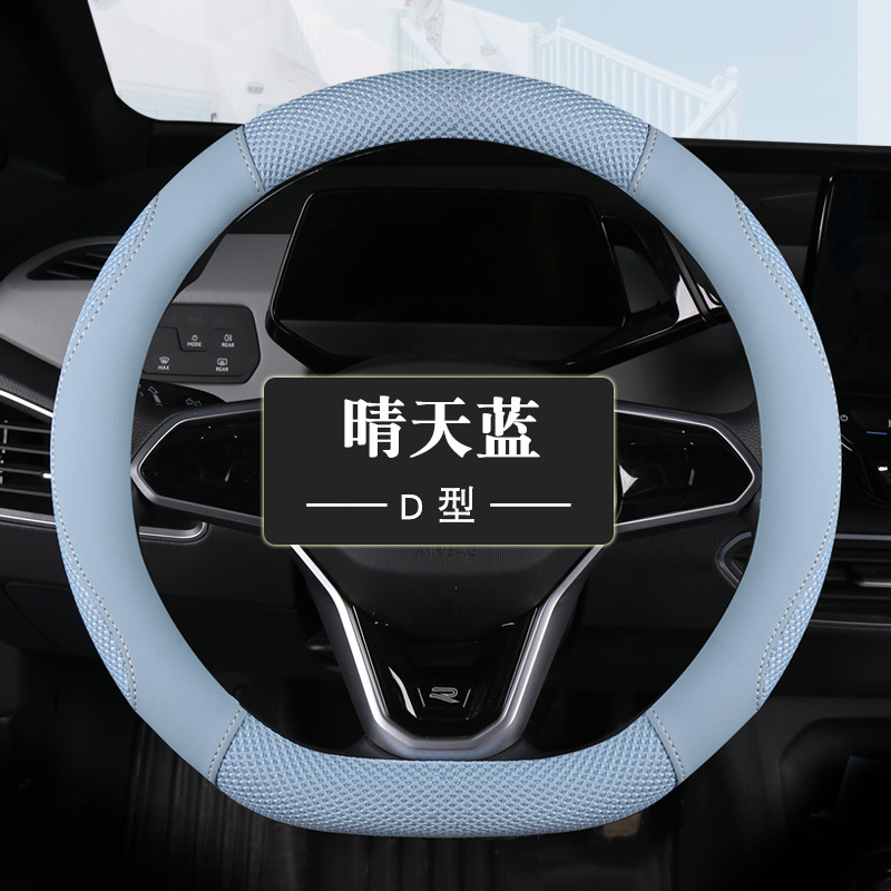 여름 가죽 주문 얼음 실크 통기성 스티어링 휠 커버 사계절 유니버설 자동차 용품 커버 D 타입스토어 가기