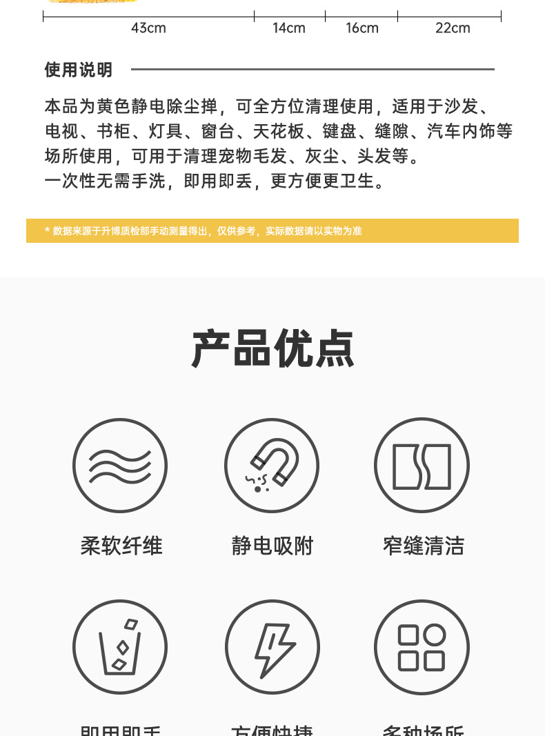 • 노란색 더스터 헤드 (10 개) 흰색 짧은 손잡이 1 개