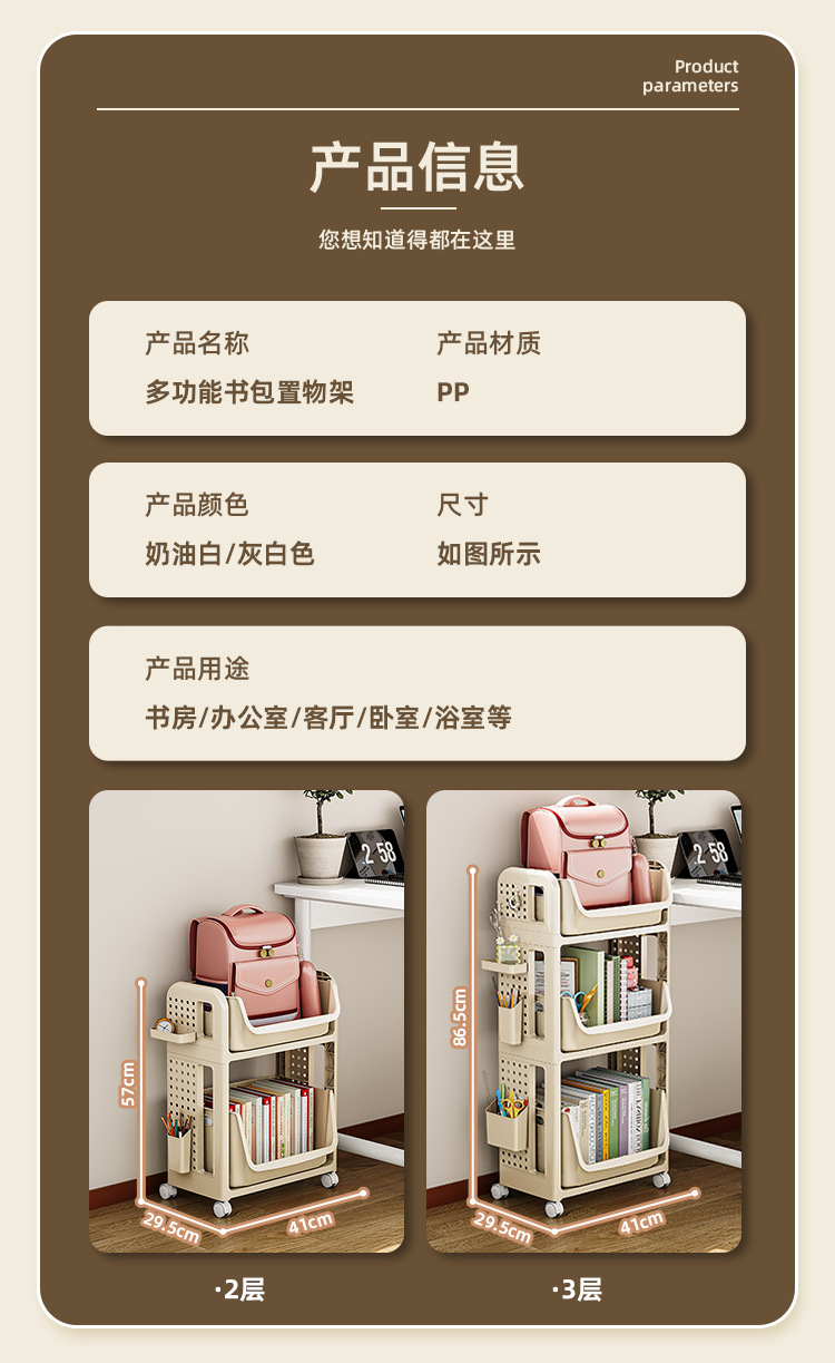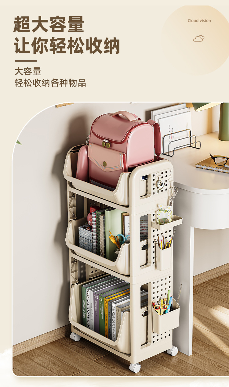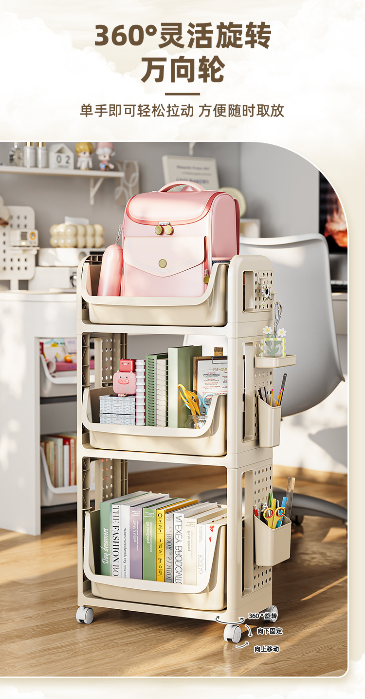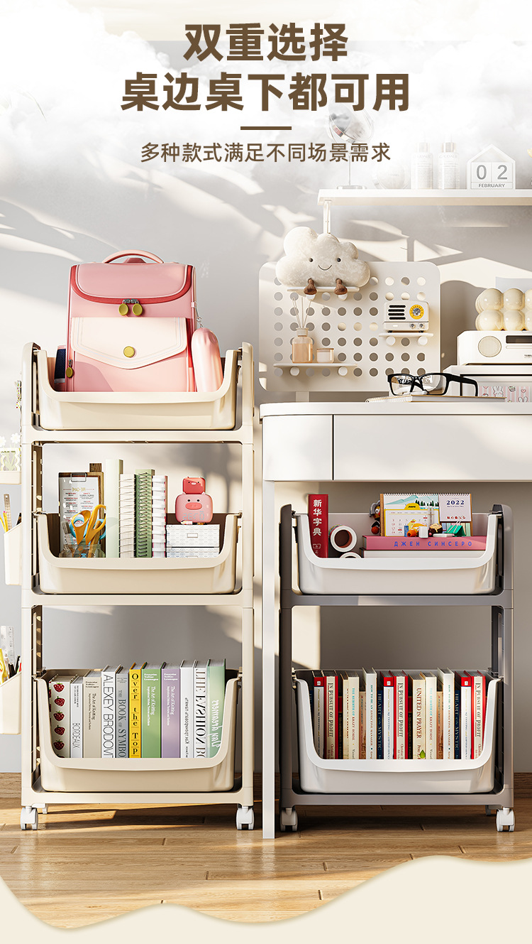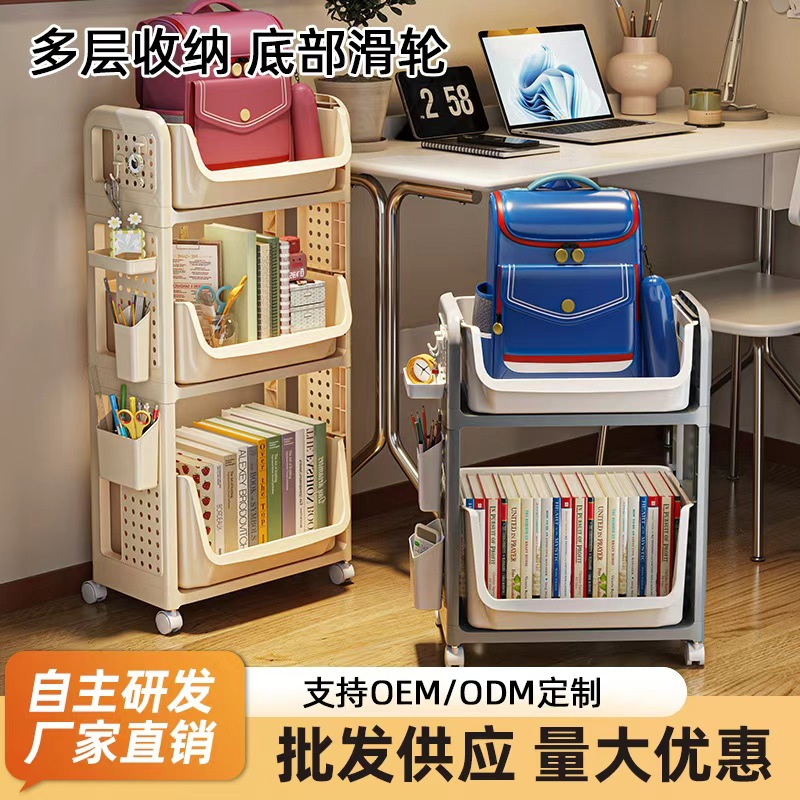 Schoolbag 스토리지 랙 움직일 수있는 책 저장 아티팩트 작은 카트 다층 배치 테이블 가정용 Schoolbag 보관 랙스토어 가기