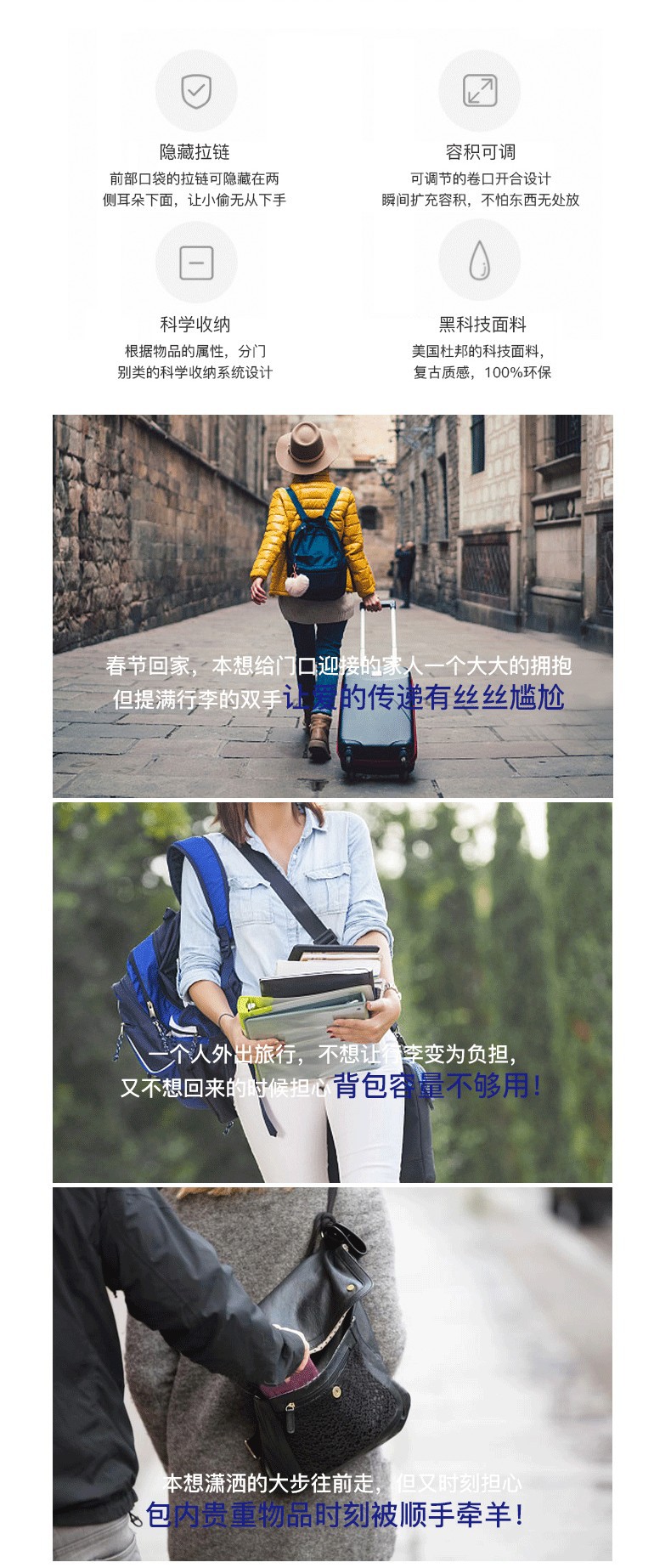 재고 2024 봄 새로운 유럽과 미국 스타일의 로프 버클 남성 여행 가방 단색 듀폰 종이 배낭
